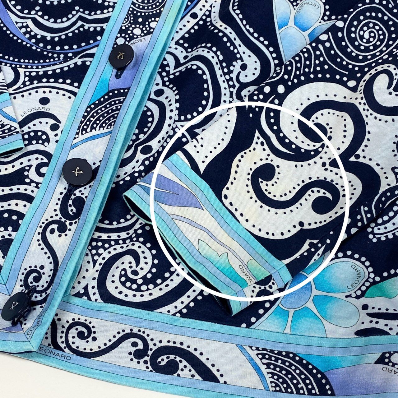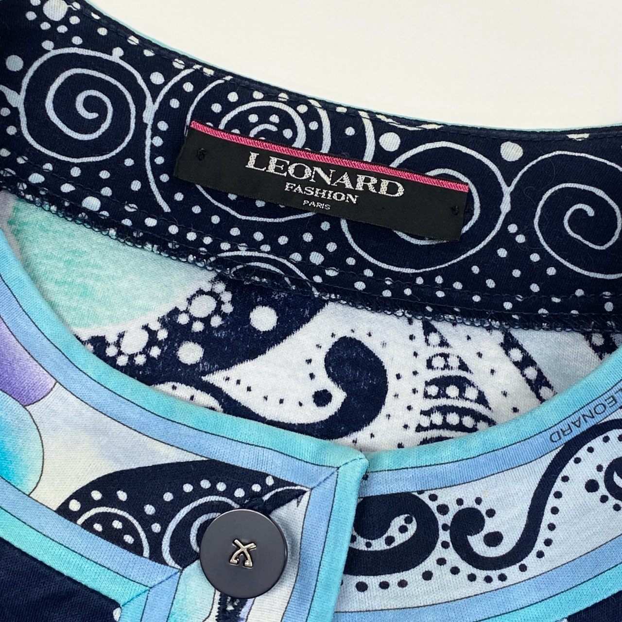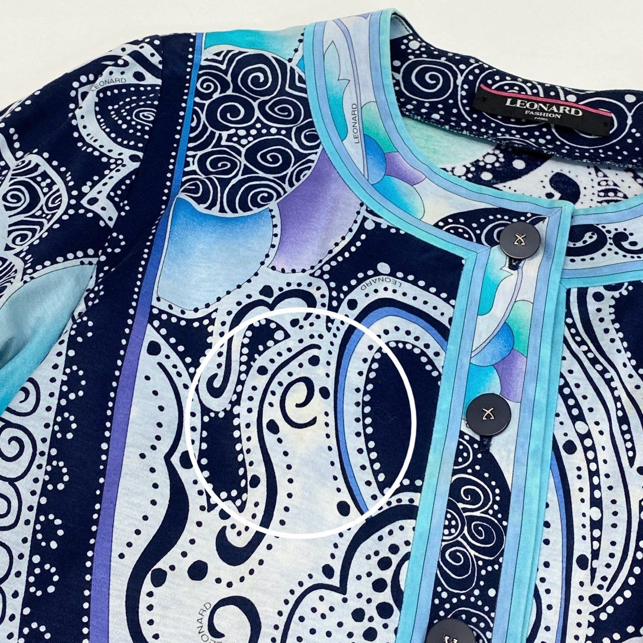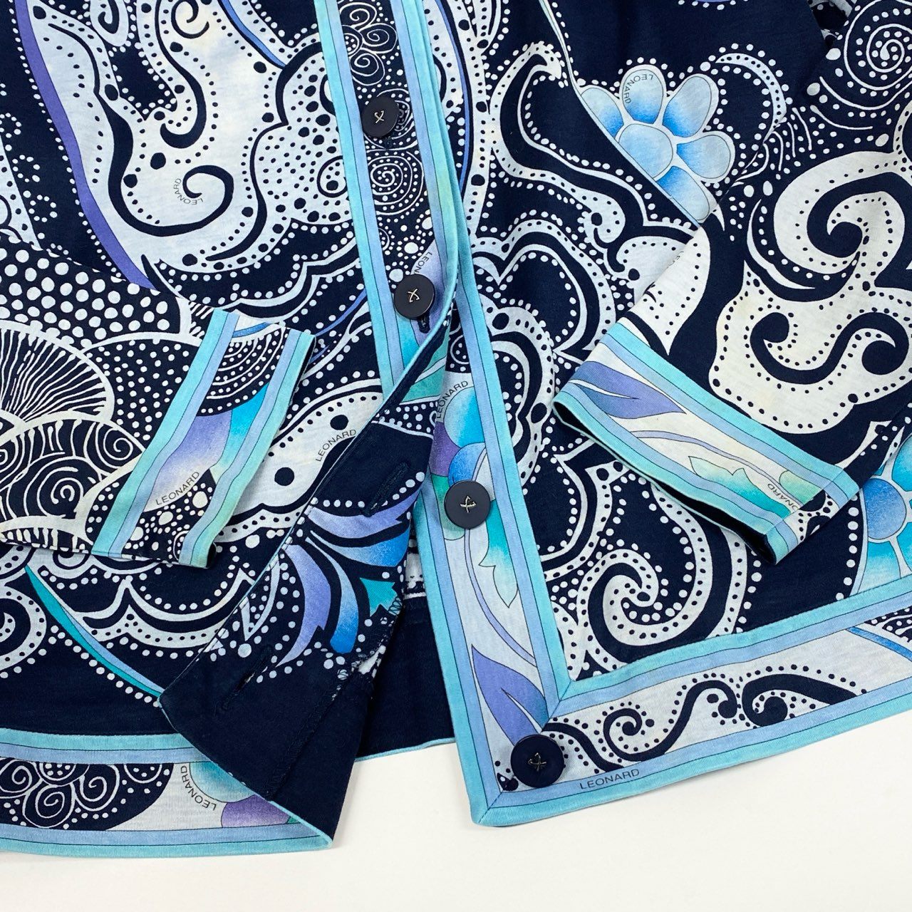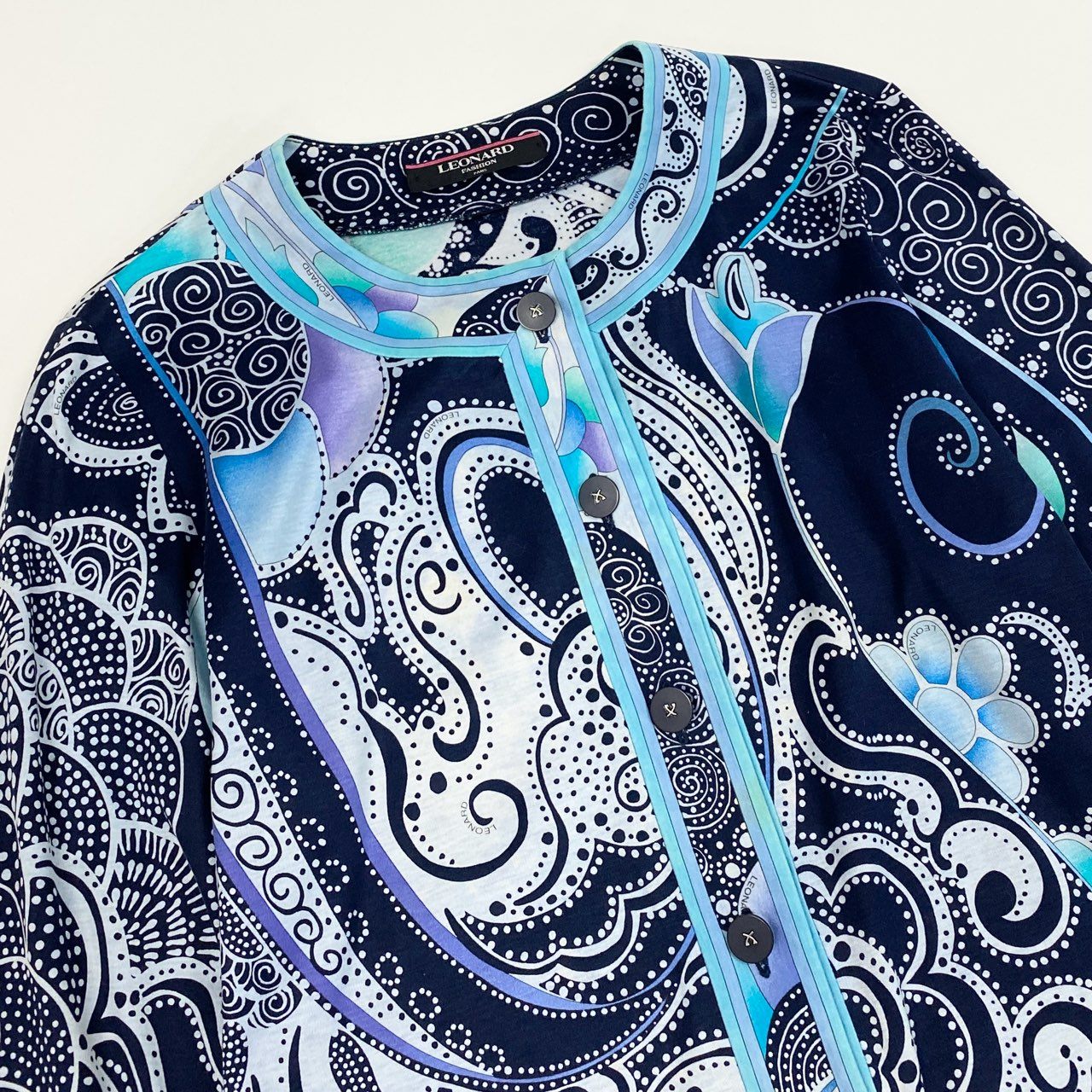 36a30 LEONARD レオナール カーディガン コットンカーディガン 総柄 トップス 0359183 Mサイズ ブルー系 コットン100% レディース 女性用o07t