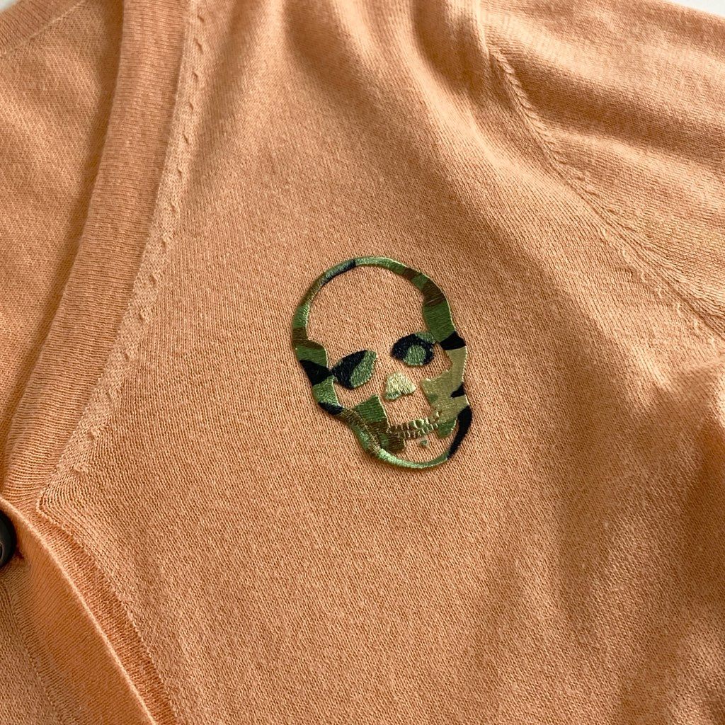 12d5 lucien pellat-finet ルシアンペラフィネ カシミヤブレンド ニットカーディガン スカル ワッペン ハイゲージ Mサイズ オレンジ
