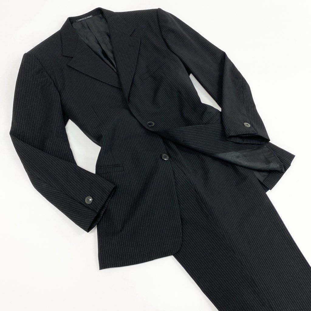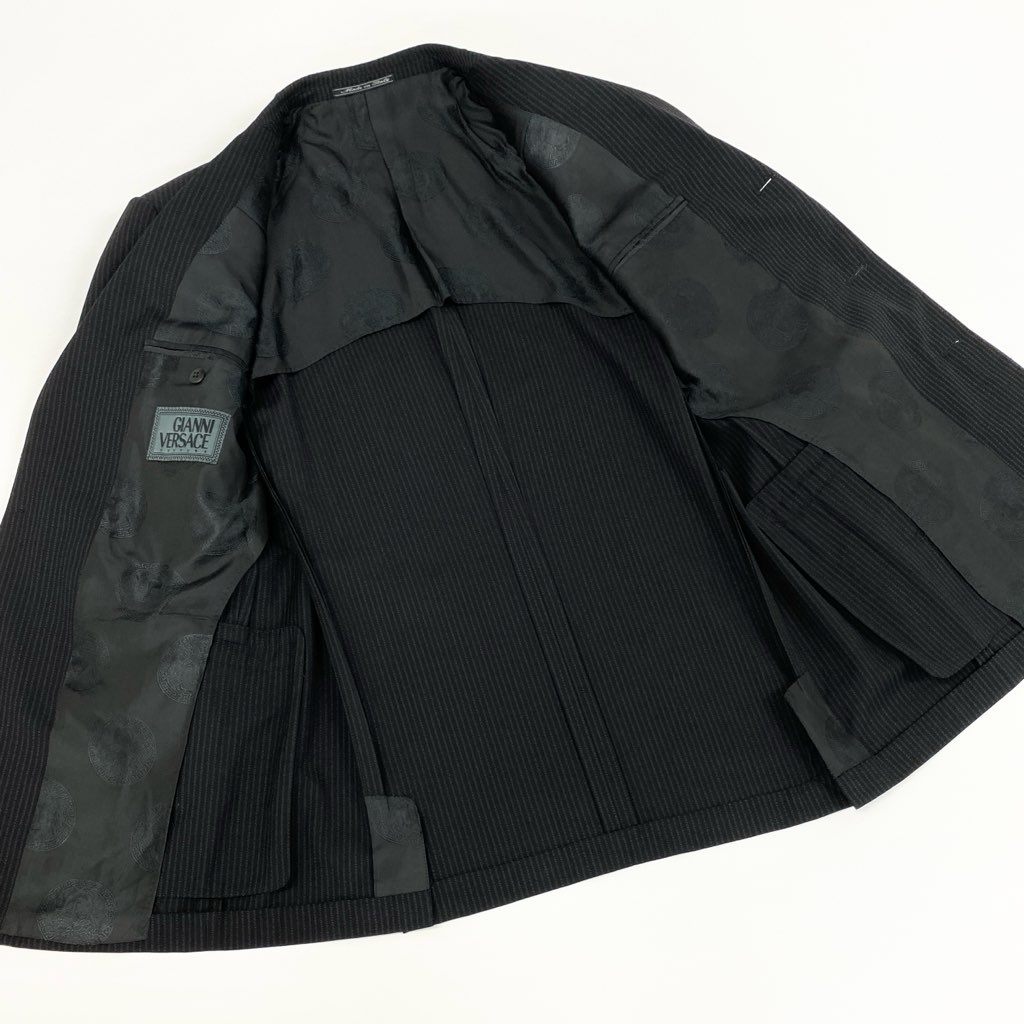 8f8 GIANNI VERSACE ジャンニ ヴェルサーチ セットアップスーツ テーラードジャケット パンツ ボトムス 裏地メデューサ ストライプ 背抜き ブラック