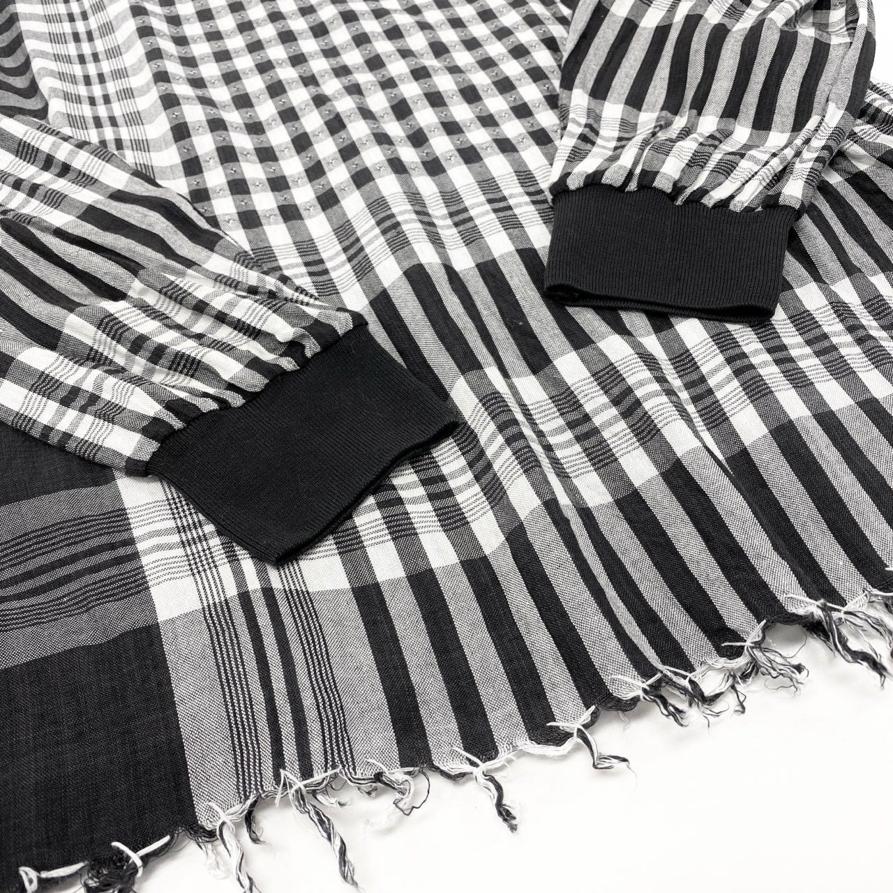 11k28《美品》 BLESS ブレス N°32 チュニックワンピース トップス チェック フリンジ L ブラック グレー コットン レディースu02t
