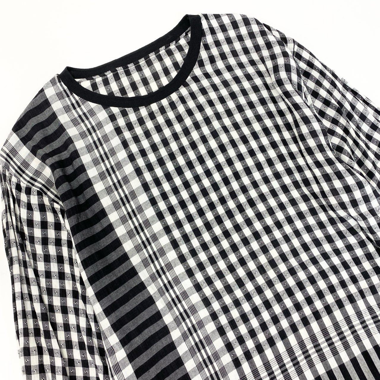 ブラック×ホワイトのミックスチェック柄が印象的な、ブレス N°32のチュニックワンピースです。コットン素材のさらりとした質感に加え、裾のフリンジディテールがこなれた雰囲気を演出します。ゆったりしたボディラインで体型を選ばず、レギンスや細身パンツとのコーデにも最適。モノトーンながら表情のあるパターンで、1枚でスタイルが決まるアイテムです。デイリーからカジュアル外出まで幅広く活躍します。