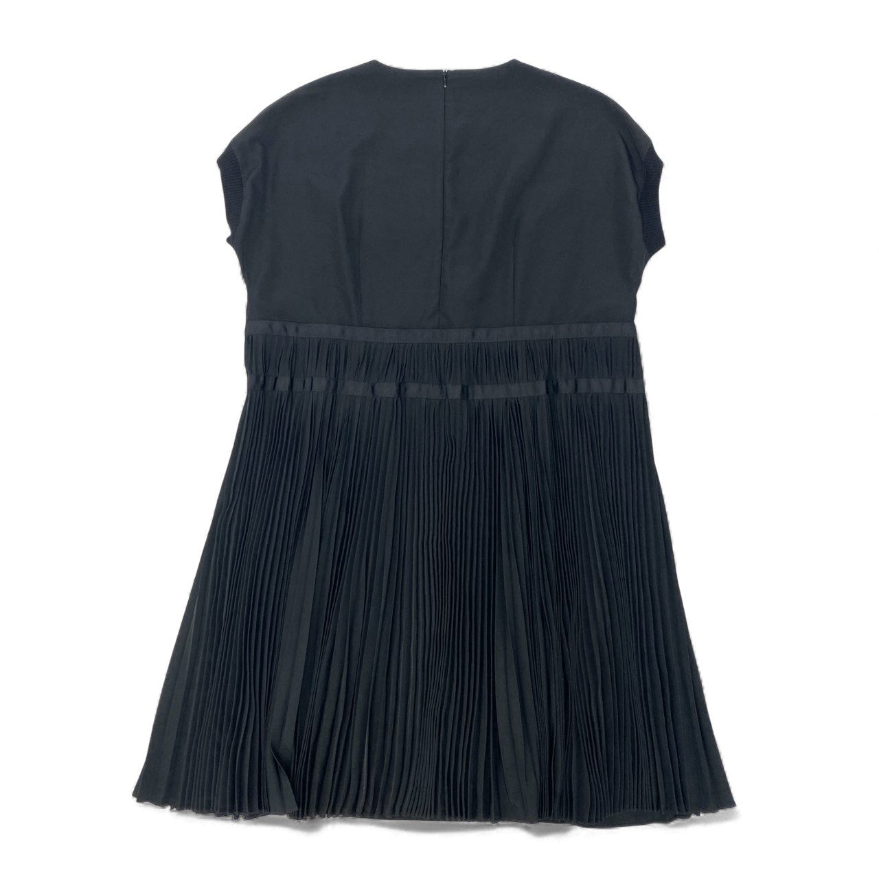 28k29 TOKUKO 1er VOL トクコプルミエヴォル フレンチスリーブ ニットワンピース プリーツ切替 身幅ゆったり○ フロント刺繡 レディース 女性用 9 ブラックu02t