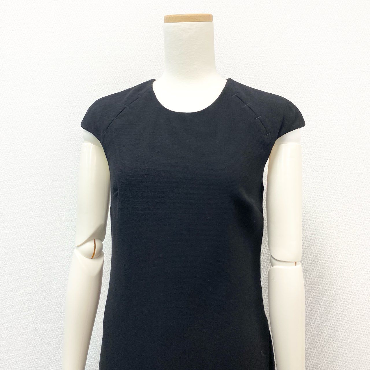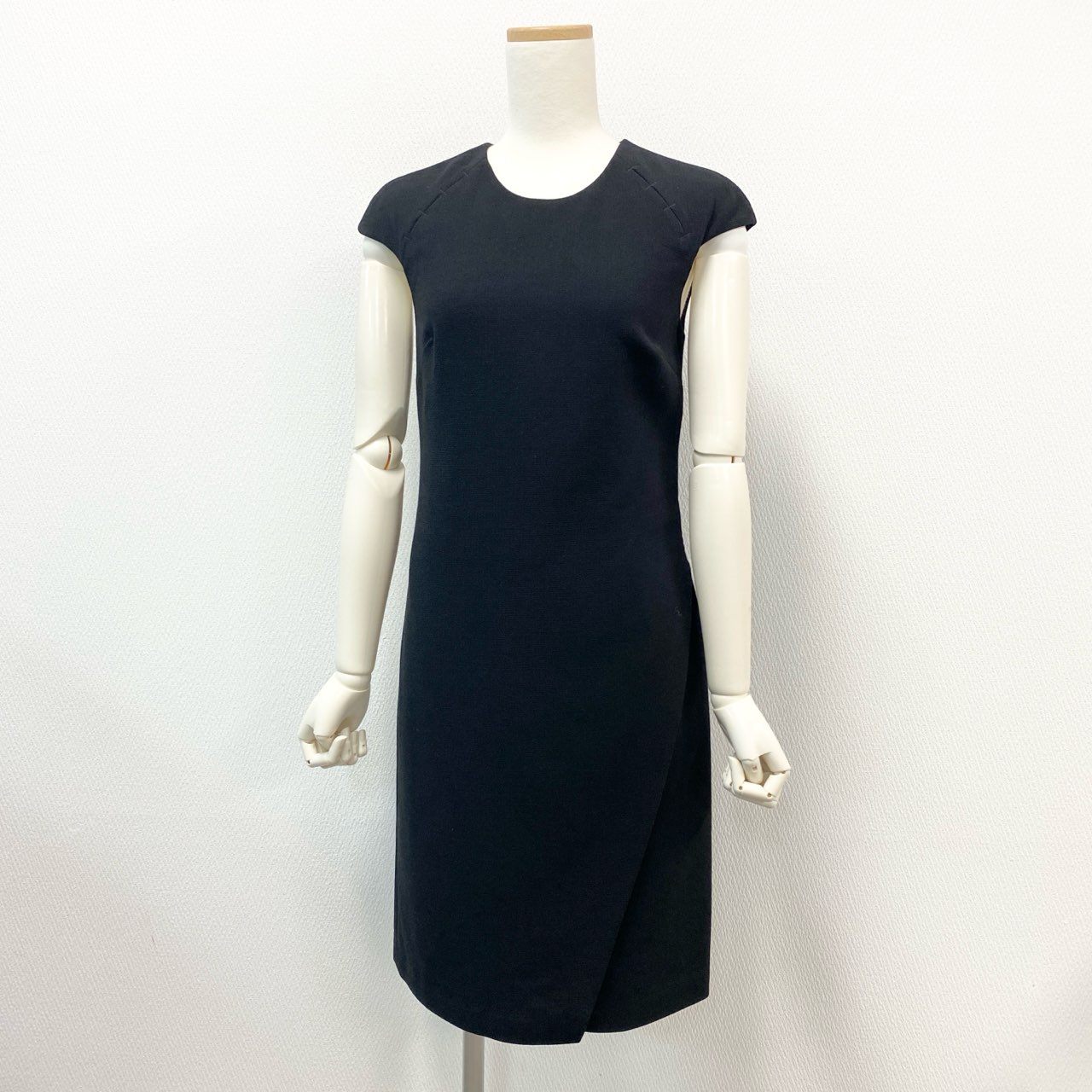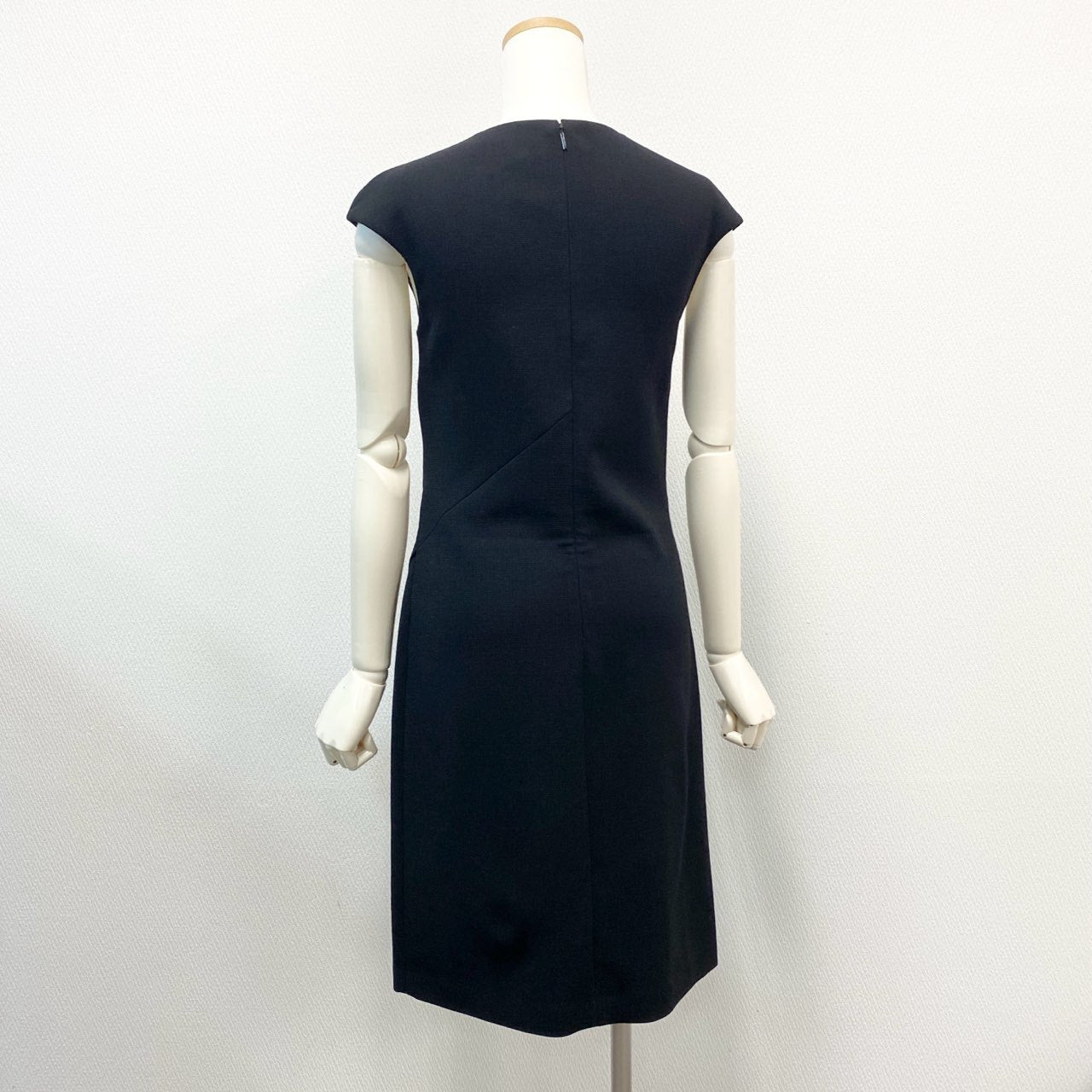 18j17《美品》 EMILIO PUCCI エミリオプッチ イタリア製 フレンチスリーブ 膝丈ワンピース フォーマル ストレッチ◎ ウールブレンド レディース 女性用 38 ブラックu02t