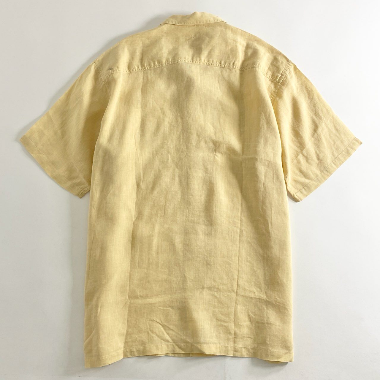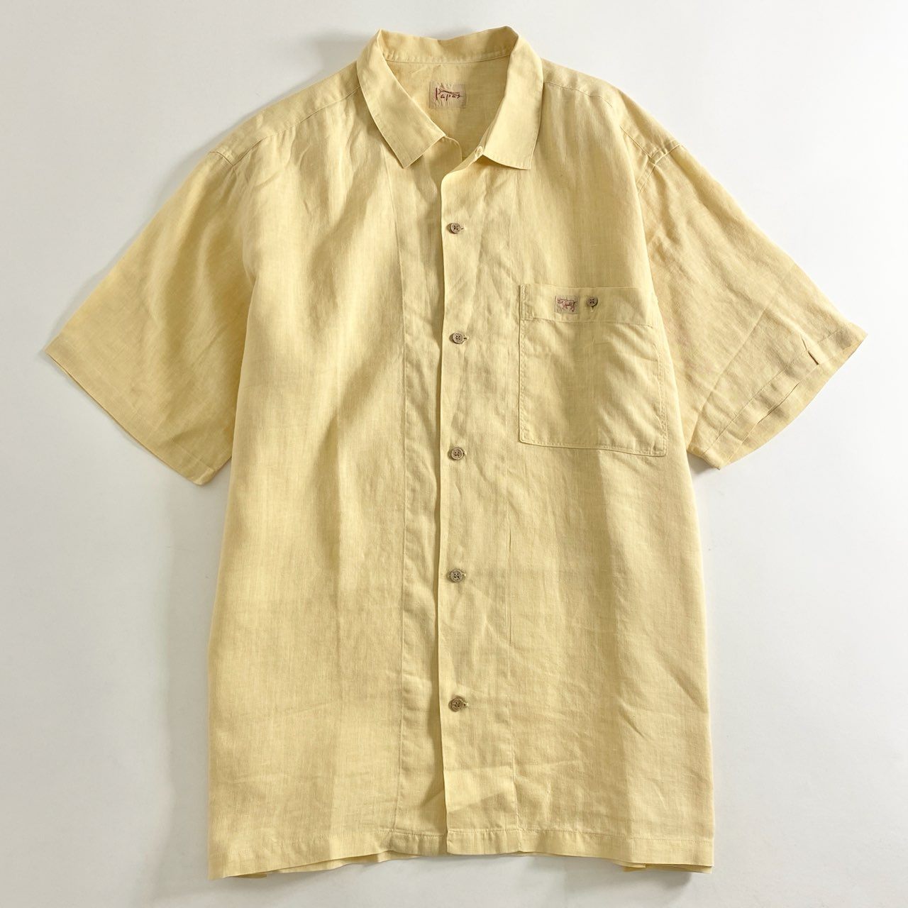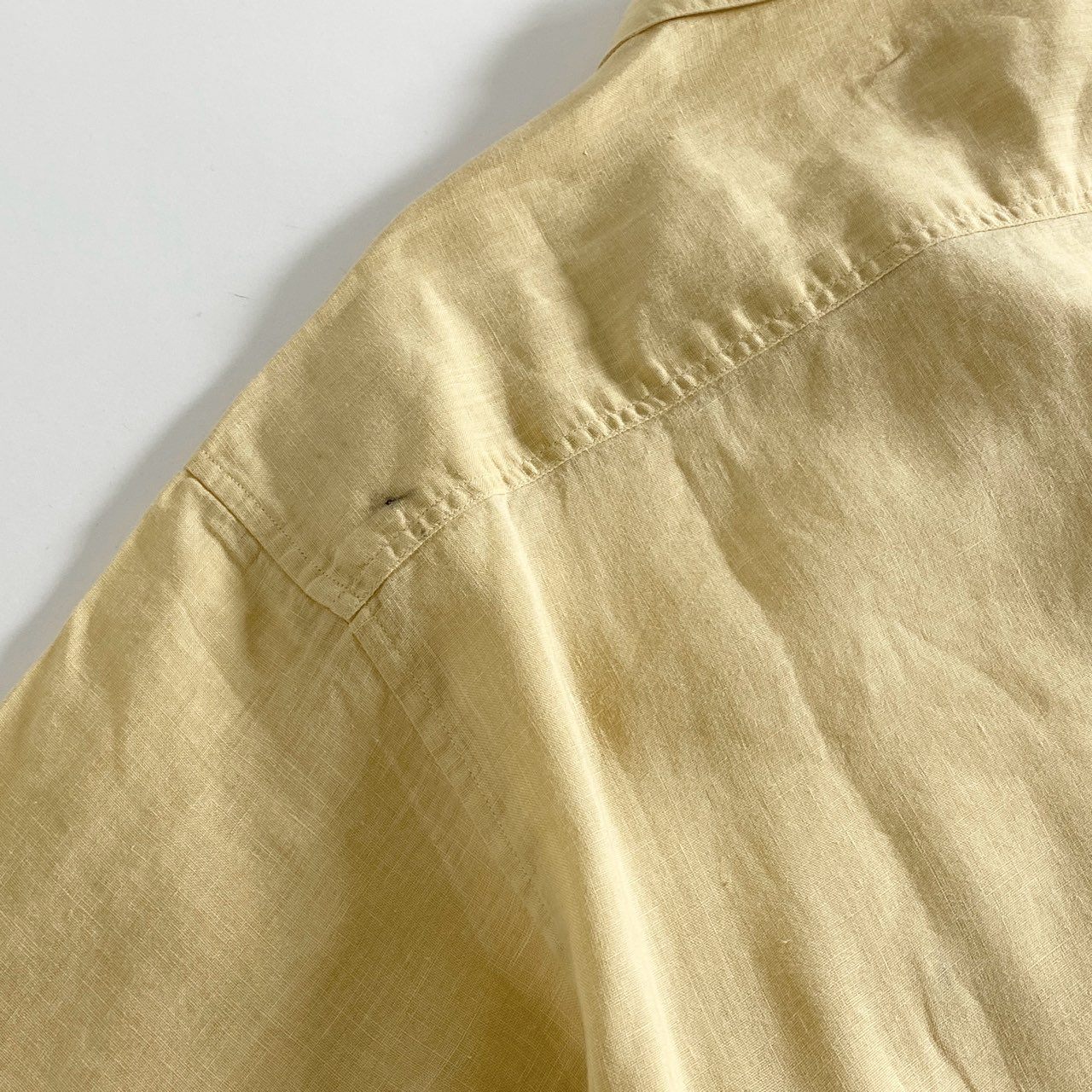 7b26 日本製 Papas パパス 半袖シャツ リネンシャツ リネン100% L イエロー 胸ポケット トップス メンズ 春夏