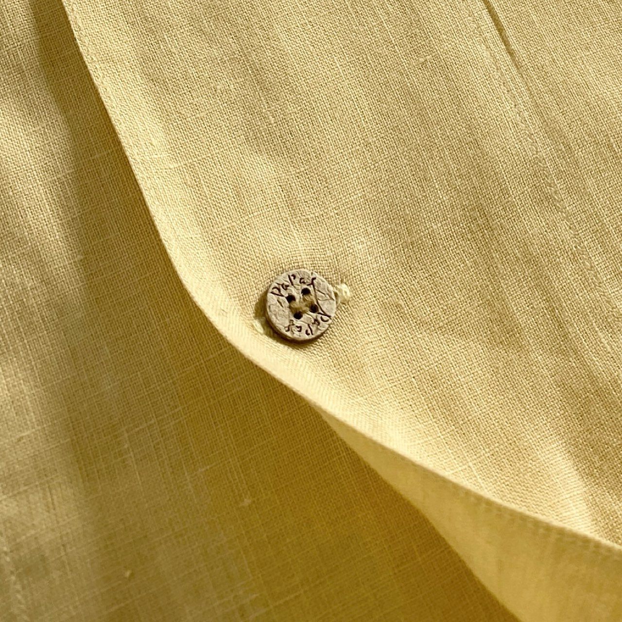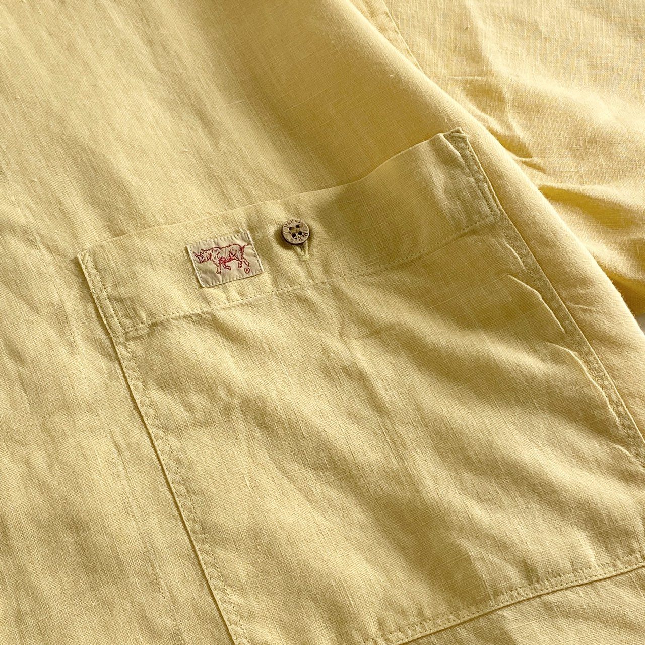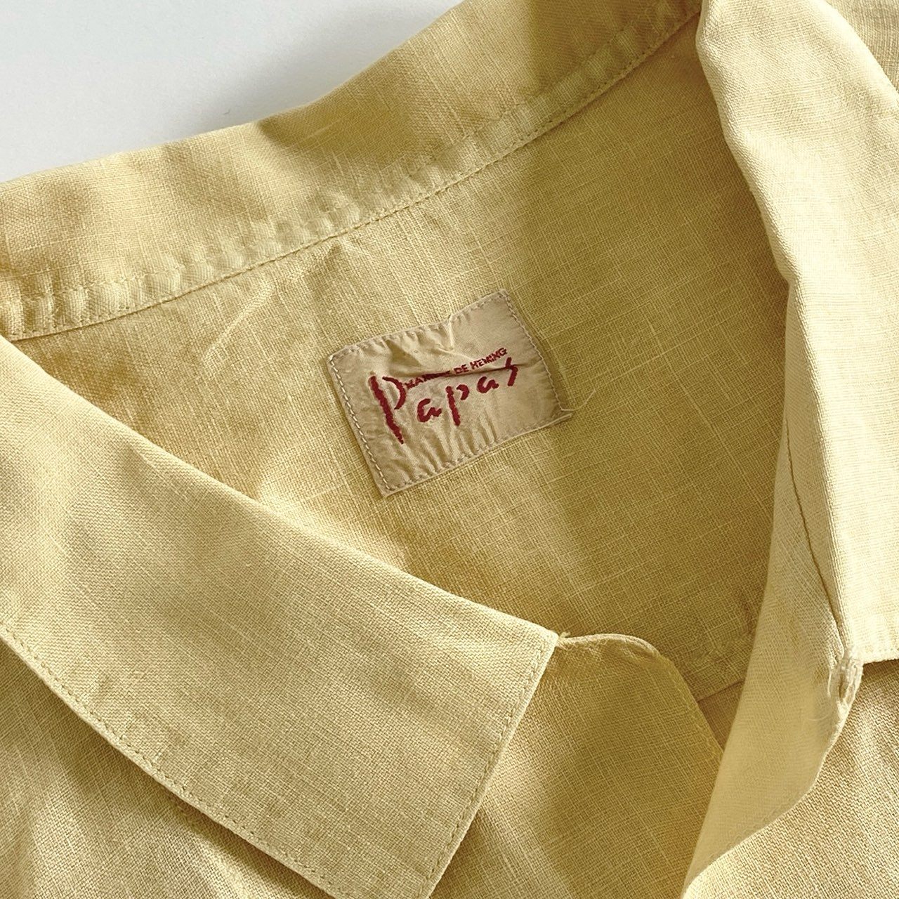 7b26 日本製 Papas パパス 半袖シャツ リネンシャツ リネン100% L イエロー 胸ポケット トップス メンズ 春夏