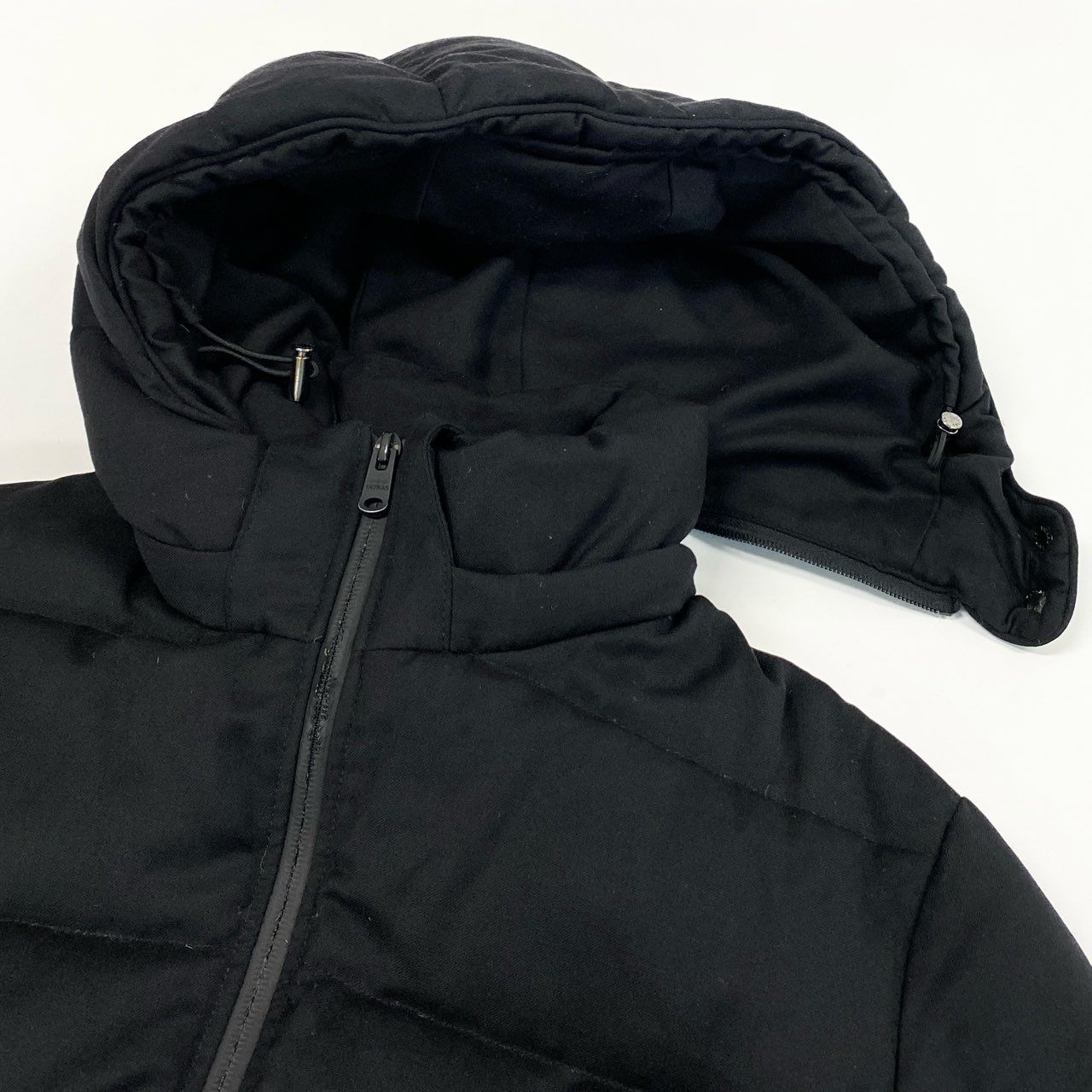 TATRASの人気モデル「AGORDO」ダウンジャケットです。カラーは深みのあるマットなブラックで、無地デザインに止水風ジップポケットが映える都会的な印象です。程よい光沢を抑えた上品なナイロン素材にボリューム感のあるフード(着脱可能)仕様で、防寒性とスタイル性を両立。ビジネスシーンからカジュアルまで幅広く活躍する一着です。