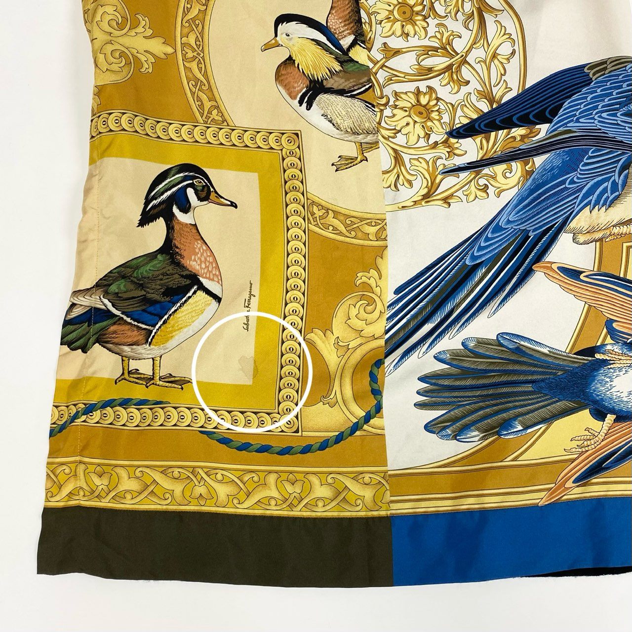 サルヴァトーレ フェラガモのエレガントなノースリーブワンピース。ゴールドを基調としたバロック調のフレームと、カラフルな鳥のモチーフが描かれたアートピースのようなデザインです。ブルー、マスタードイエロー、アイボリーのバランスが華やかで上品。カシミヤ×シルクの光沢ある素材感が高級感を際立たせ、肌に吸い付くような軽やかな着心地を実現しています。特別なディナーやリゾートシーンにも映える、ラグジュアリーな一着です。