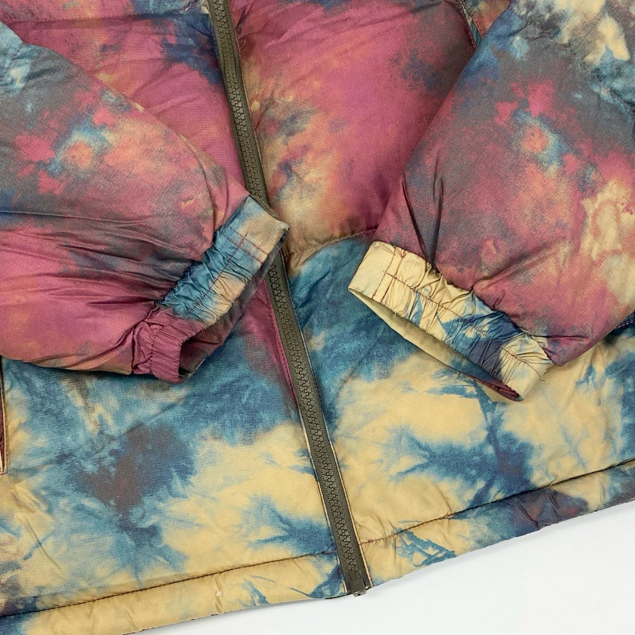 THE NORTH FACE(ザ・ノース・フェイス)の「Novelty Nuptse Jacket(ND92235)」は、マルチカラーのタイダイ風デザインが目を惹く人気モデル。深みのあるカーキグリーンの切り替えがアクセントとなり、アウトドアテイストとファッション性を両立しています。光沢を抑えたナイロン素材が上品な質感を演出し、中綿のダウンが抜群の保温力を発揮。ストリートやキャンプシーンなど、幅広い冬コーデで存在感を放つ一着です。