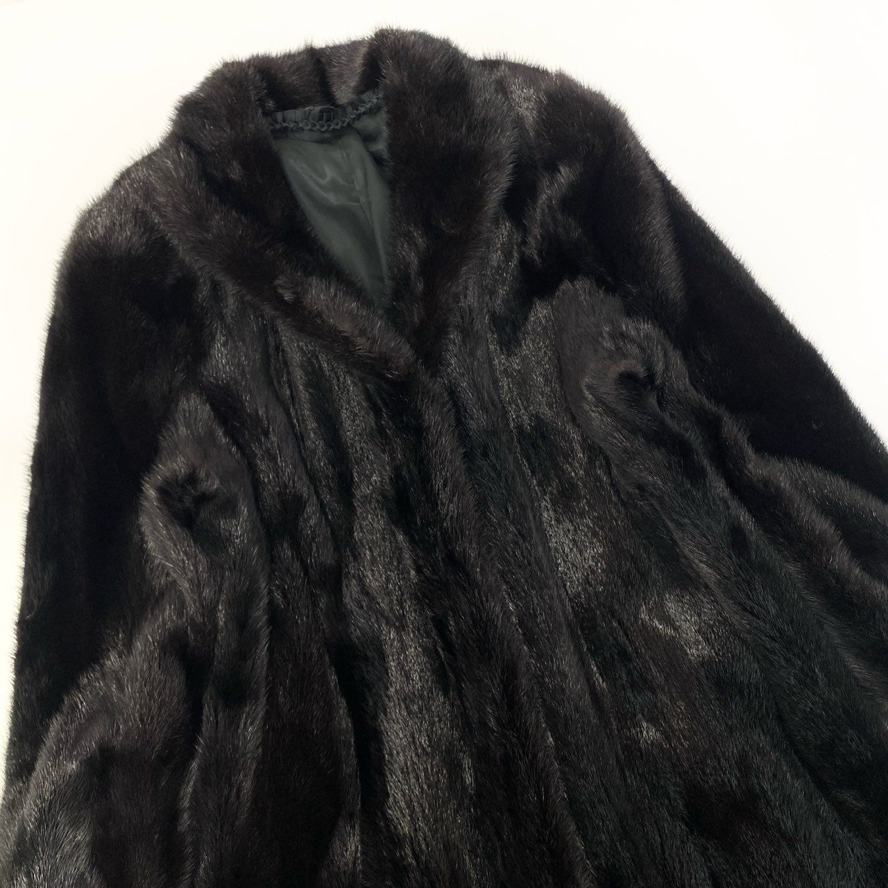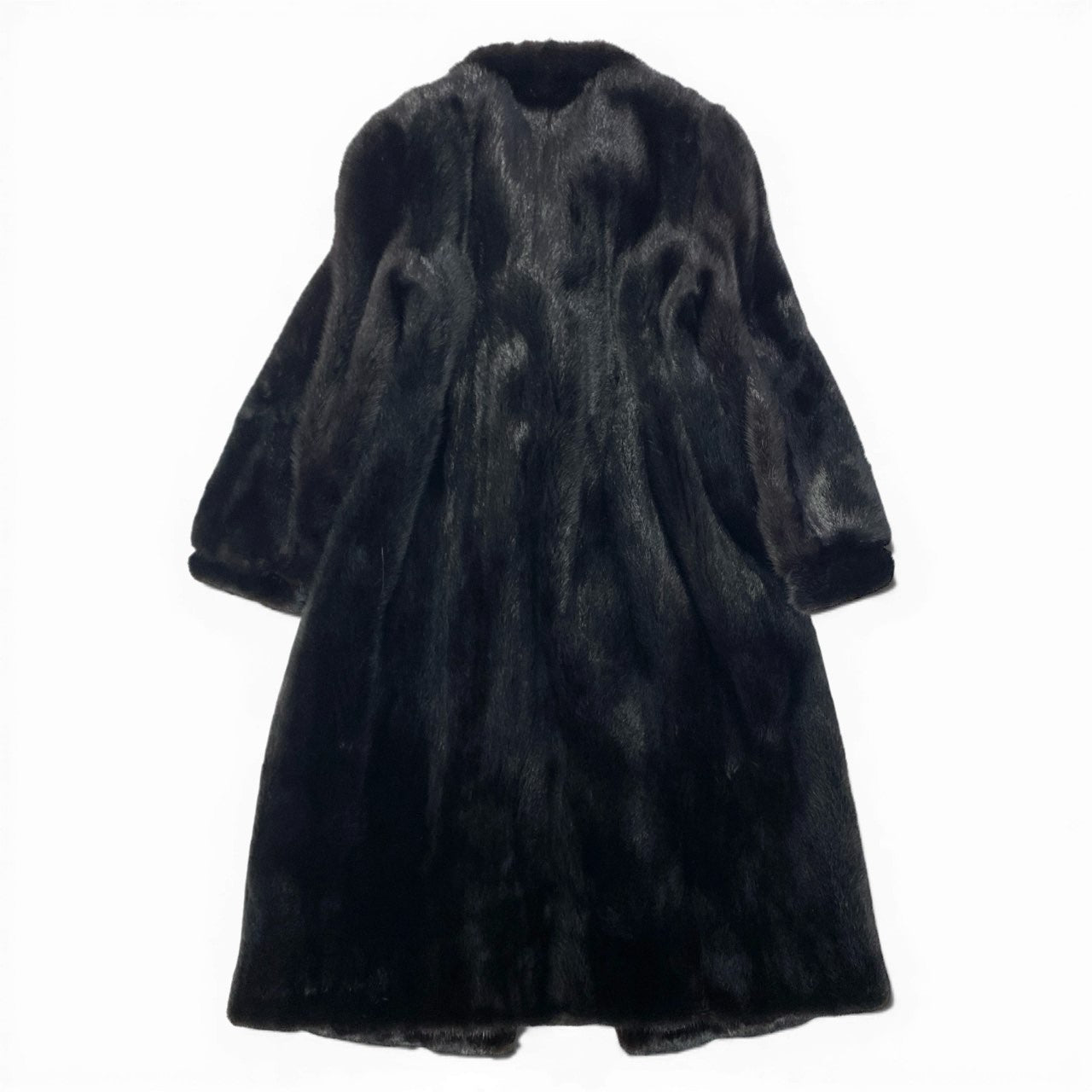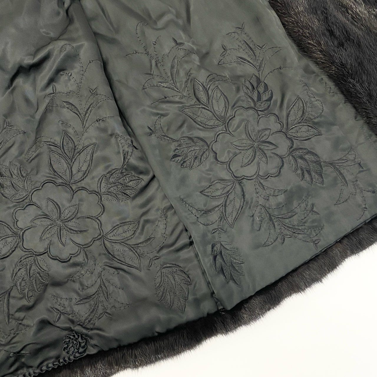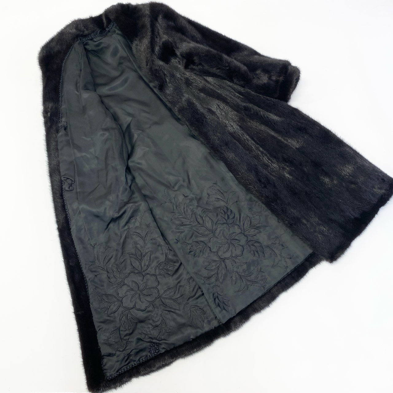 83a14 ダークミンク ミンクコート 超ロングコート 着丈107cm 毛皮コート ブラック系 ミンクファー 裏地花柄刺繍t18r
