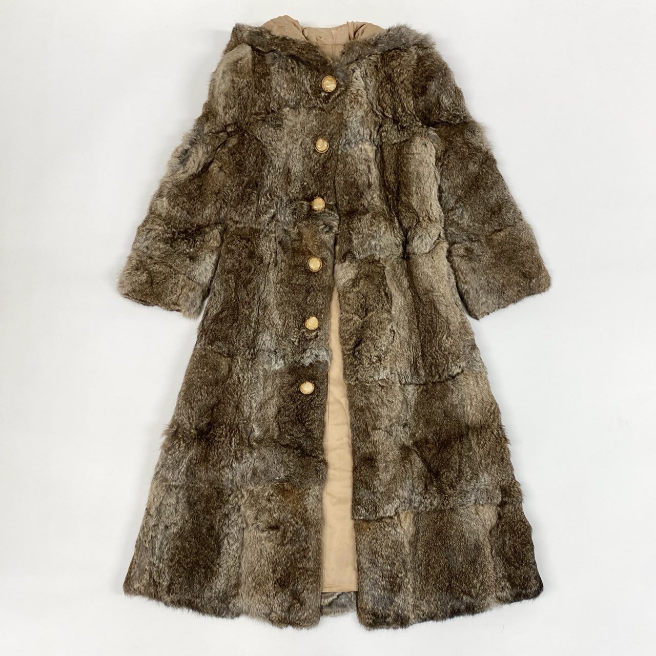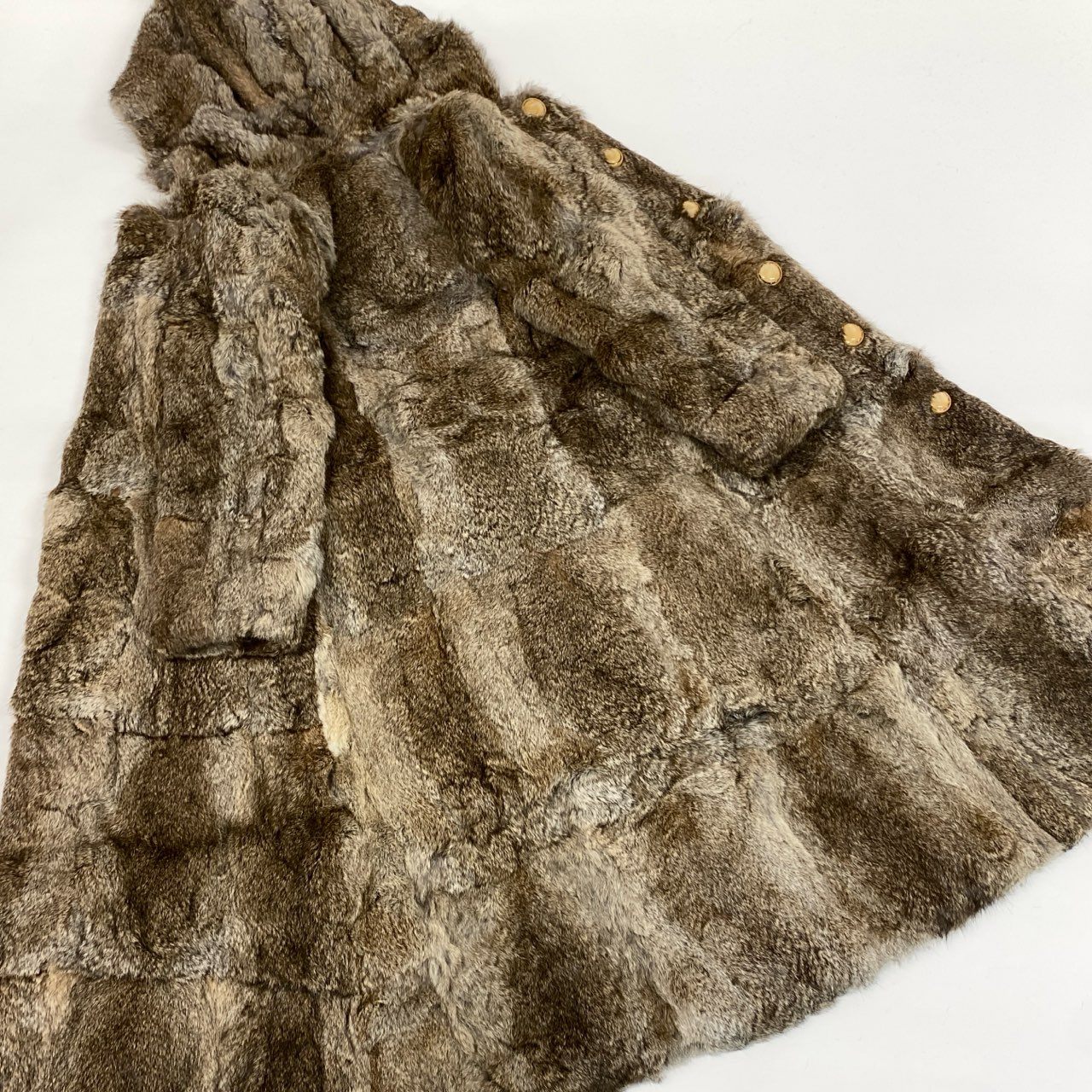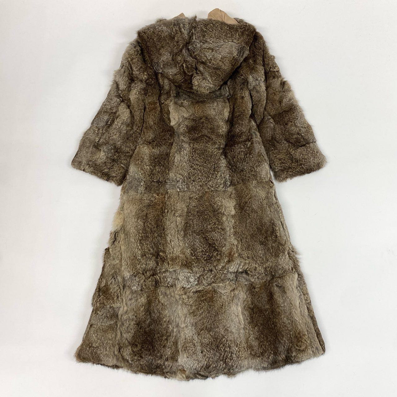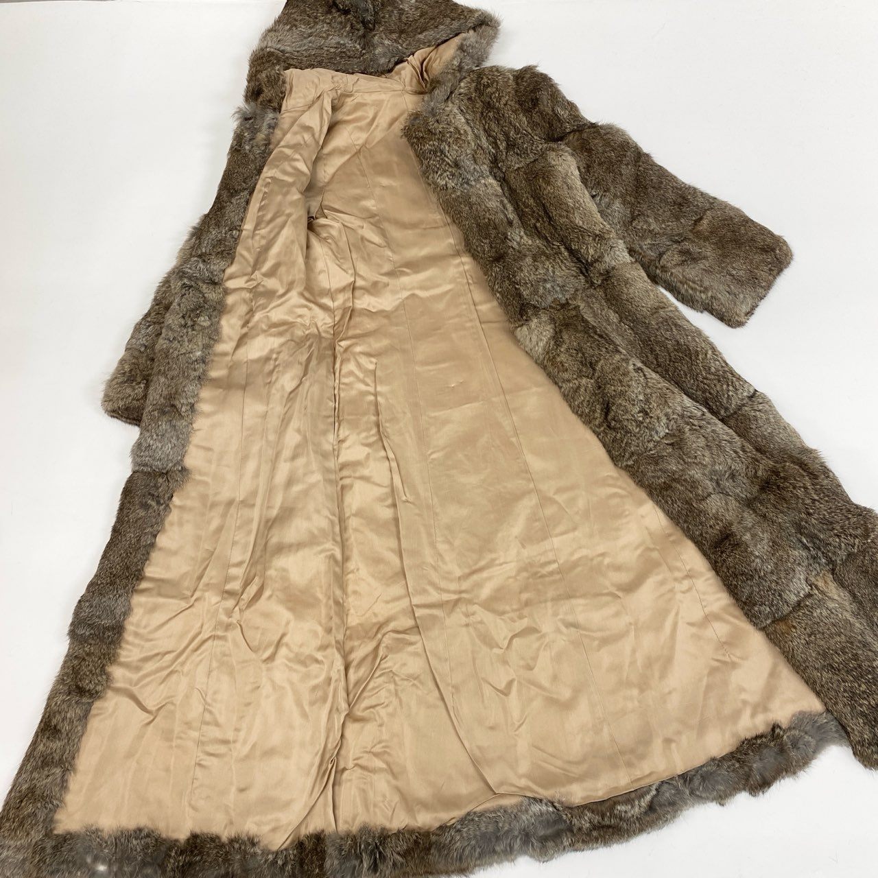 68j16 ラビットファー 毛皮コート ファーコート 装飾ボタン 110㎝ 超ロングコート ベージュ系 リアルファー レディースu02t