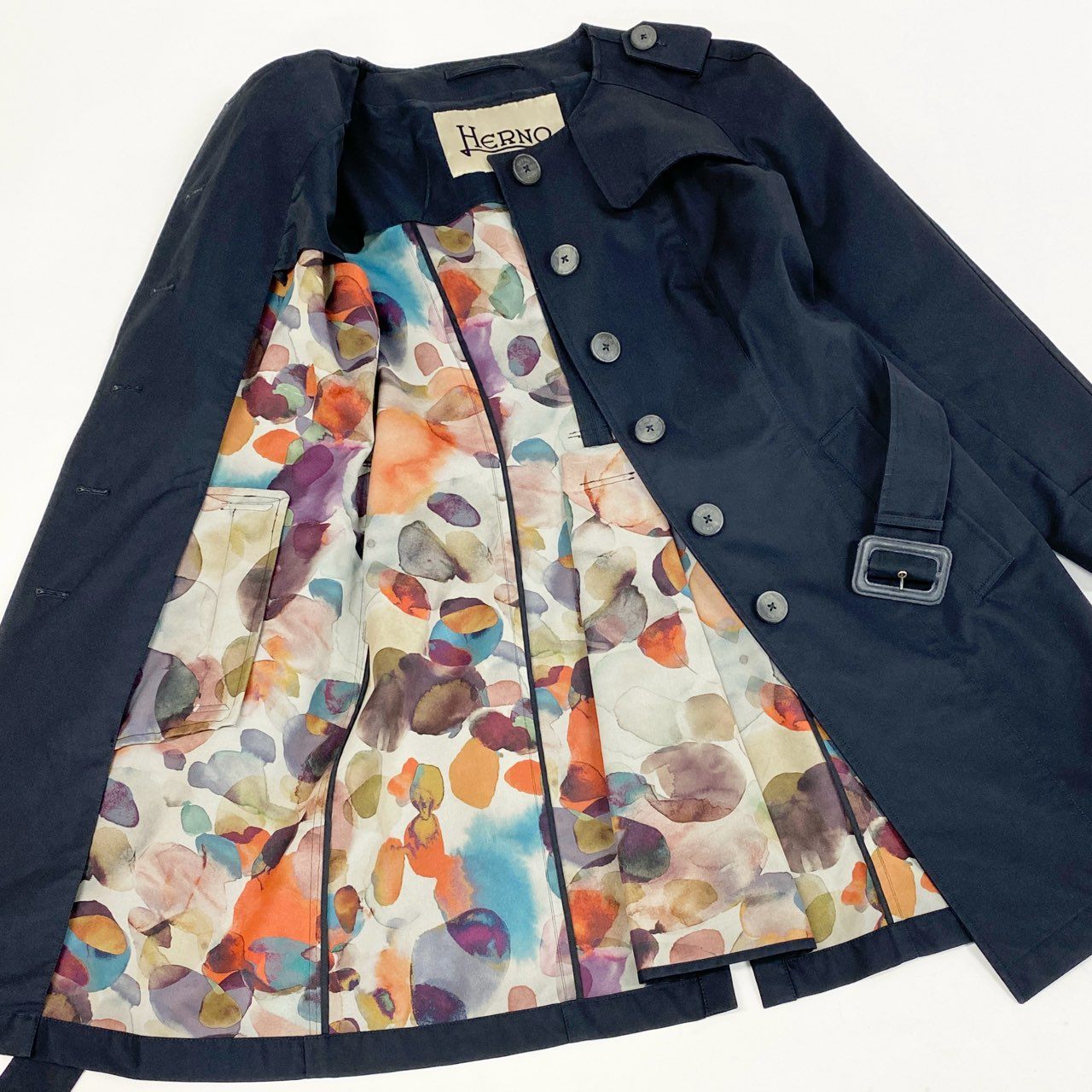 37a26 HERNO ヘルノ ノーカラー トレンチコート アウター イタリア製 IM0018D 46 ネイビー コットン レディースo07t