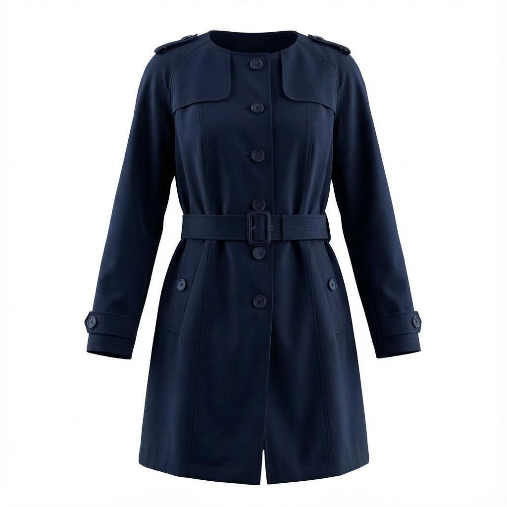 ヘルノらしい洗練されたシルエットが魅力のノーカラートレンチコートです。カラーは落ち着いたミッドナイトネイビーで、無地デザインのためオン・オフ問わず幅広く活躍します。素材はマットな質感のコットンをベースに、裏地には総柄デザインを採用し、さりげない遊び心も感じられます。ウエストベルト付きでシルエット調整ができ、通勤やきれいめカジュアル、季節の変わり目の羽織としておすすめの一着です。