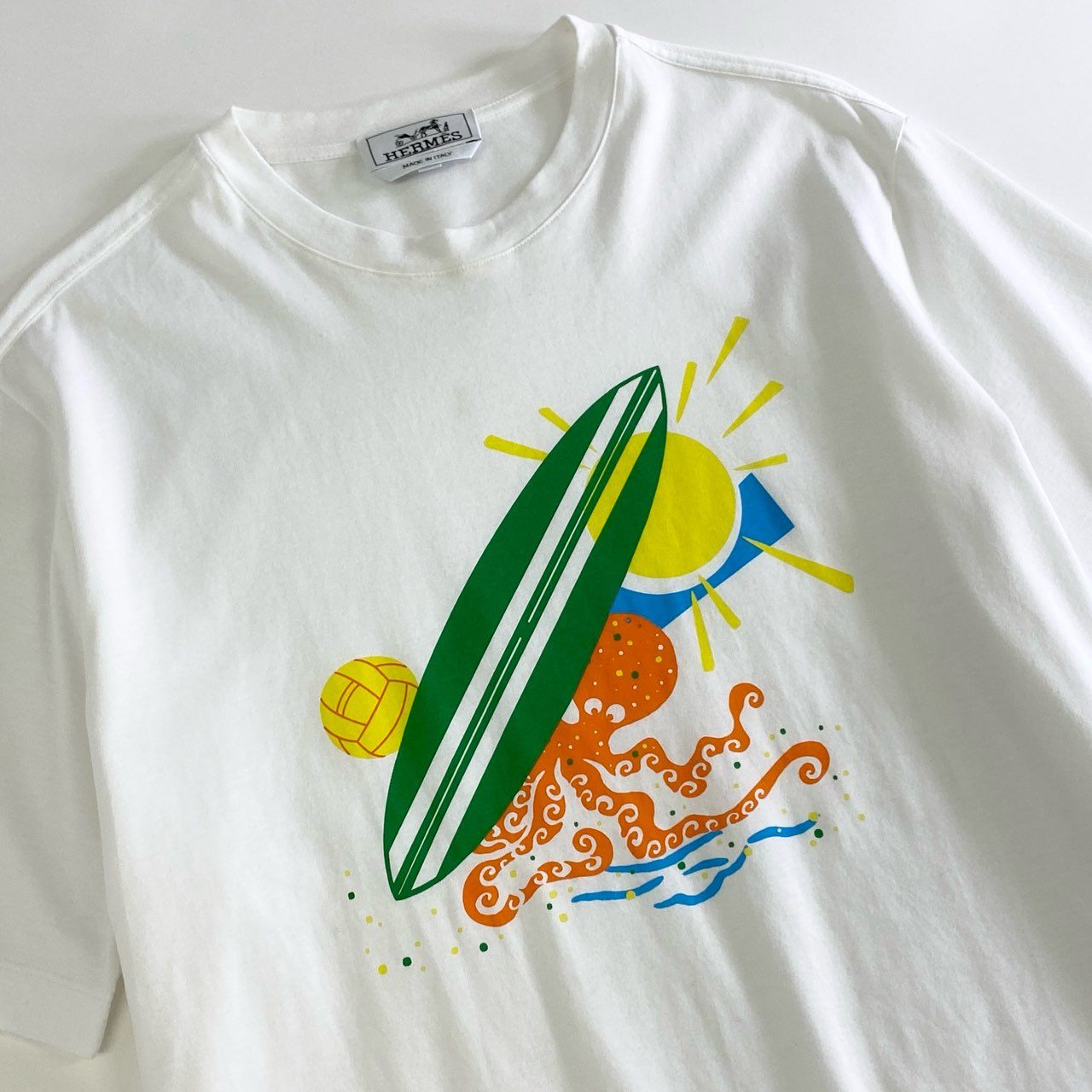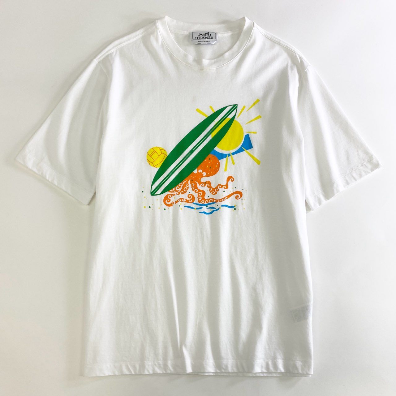 1k4 HERMES エルメス イタリア製 Poulp Watch プリント クルーネックTシャツ 半袖 カットソー S ホワイト コットン