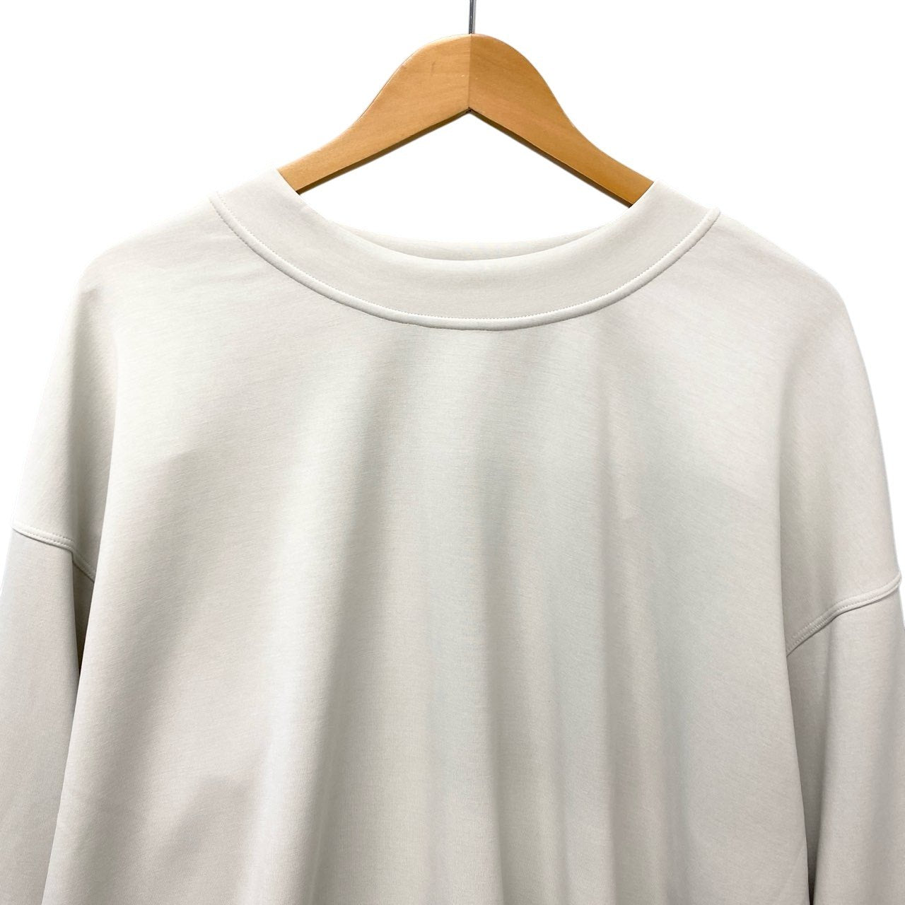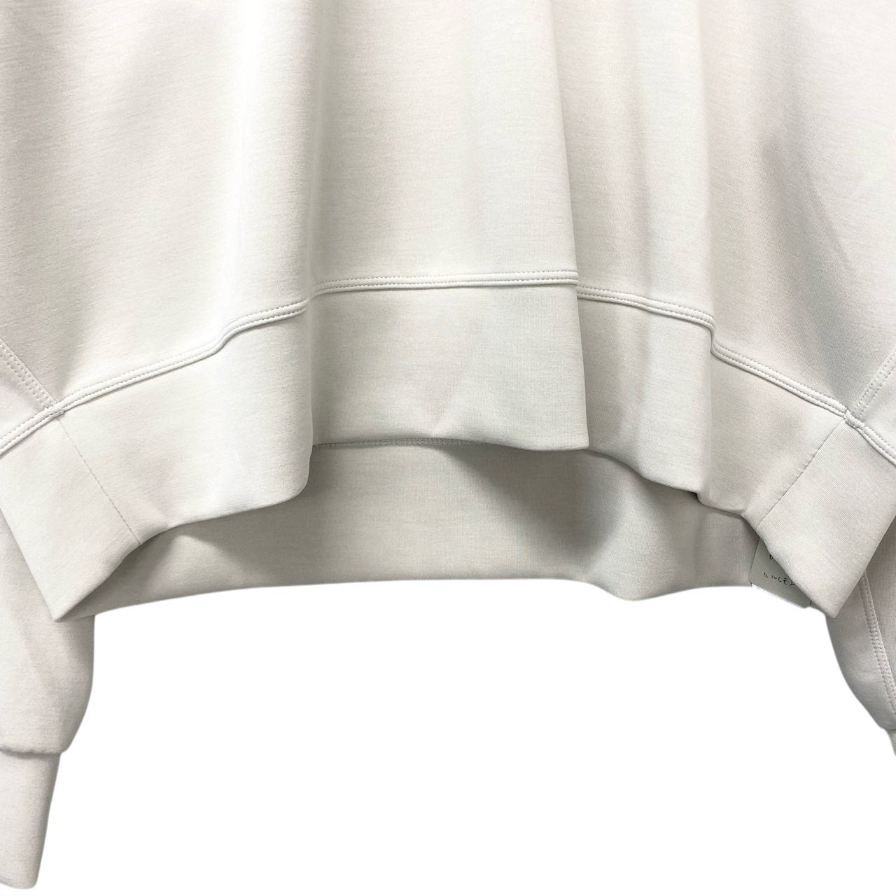 lululemonのロングスリーブプルオーバーは、アイボリーホワイト系の柔らかなカラーが魅力のシンプルデザイン。マットで滑らかなスウェット素材風の生地感で、トレーニングからデイリーまで幅広く活躍します。ゆったりとしたシルエットとショート丈のバランスがトレンド感を演出。ヨガやワークアウトはもちろん、タウンユースのスポーツミックススタイルにもおすすめの一着です。