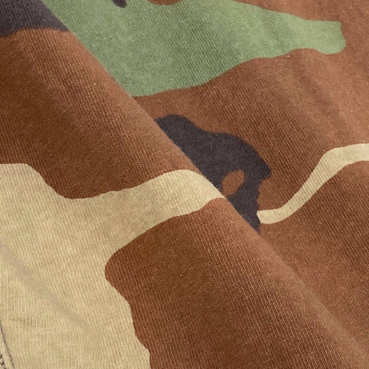 JUNYA WATANABE MANのイージーパンツ。カーキ・ブラウン・ベージュを基調としたカモフラージュ柄が特徴的で、存在感のあるデザインです。マットなコットン素材で軽快に着用でき、ウエストはゴム仕様でリラックス感のある履き心地。ストリートスタイルからアウトドアまで幅広く活躍し、シンプルなトップスと合わせるだけでコーディネートが決まる一本です。