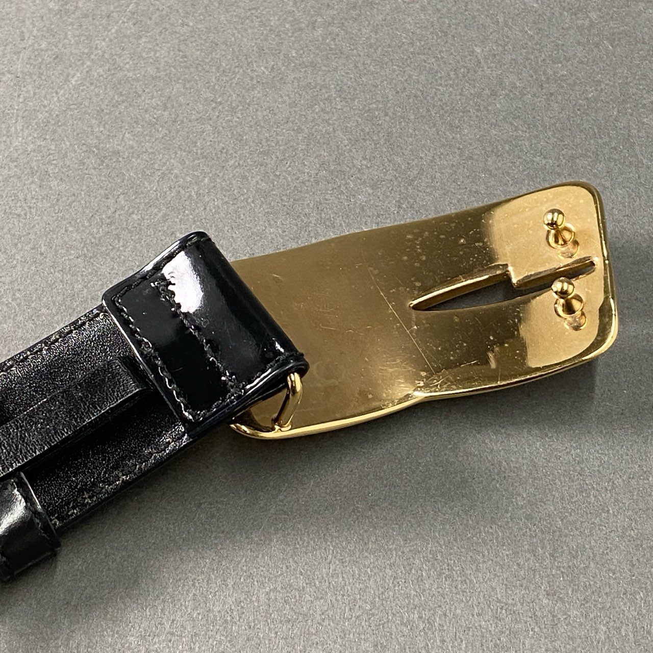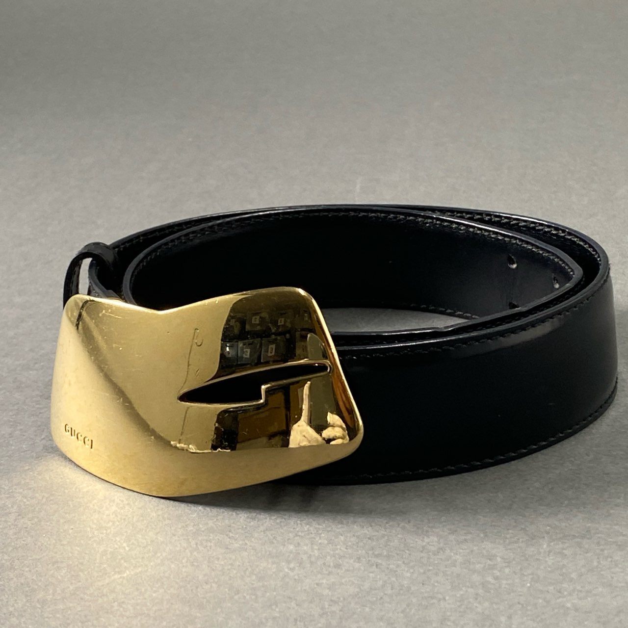 30f23 GUCCI グッチ ゴールドバックル レザーベルト ブラック イタリア製 Leather Belt