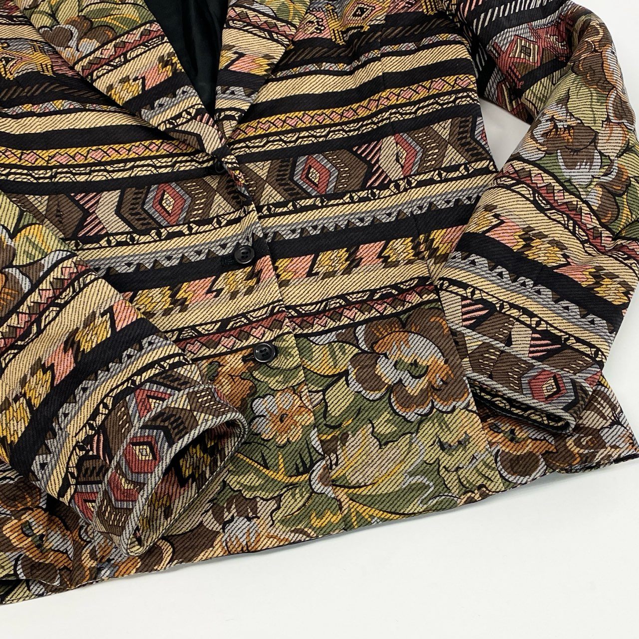 LEONARDならではの美しいフローラルとエスニックモチーフを組み合わせた、存在感抜群のジャカードテーラードジャケットです。オリーブ・ブラウン・ブラックの落ち着いた色合いに、織りで表現された多色柄が映え、クラシックかつ華やかな印象を演出。厚みのあるしっかりとした生地で仕立てられ、シルエットが崩れにくく上品に着こなせます。普段のコーデを格上げする一着で、お出かけはもちろん、フォーマル寄りのシーンにも活躍します。