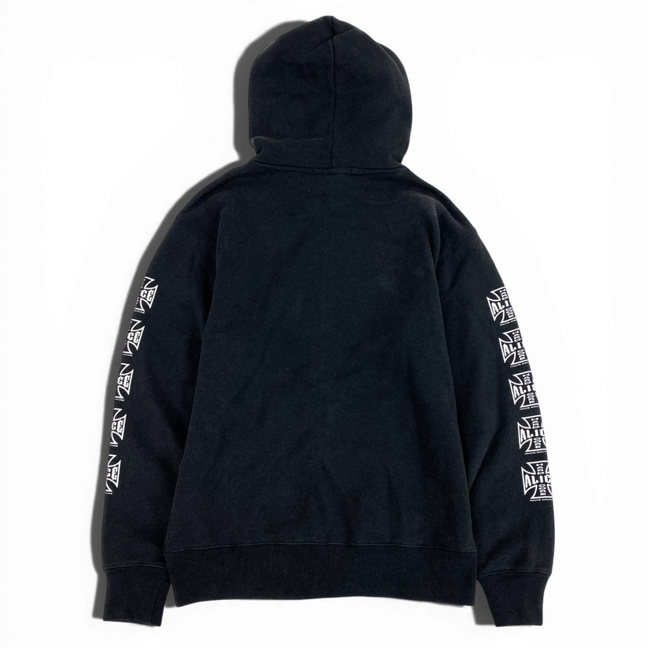 24L22 ALICE HOLLYWOOD アリス ハリウッド DESTROYED CHOPPER FULL ZIP HOODIE ジップアップ フーディー パーカー Mサイズ ブラック コットン100% メンズo07t