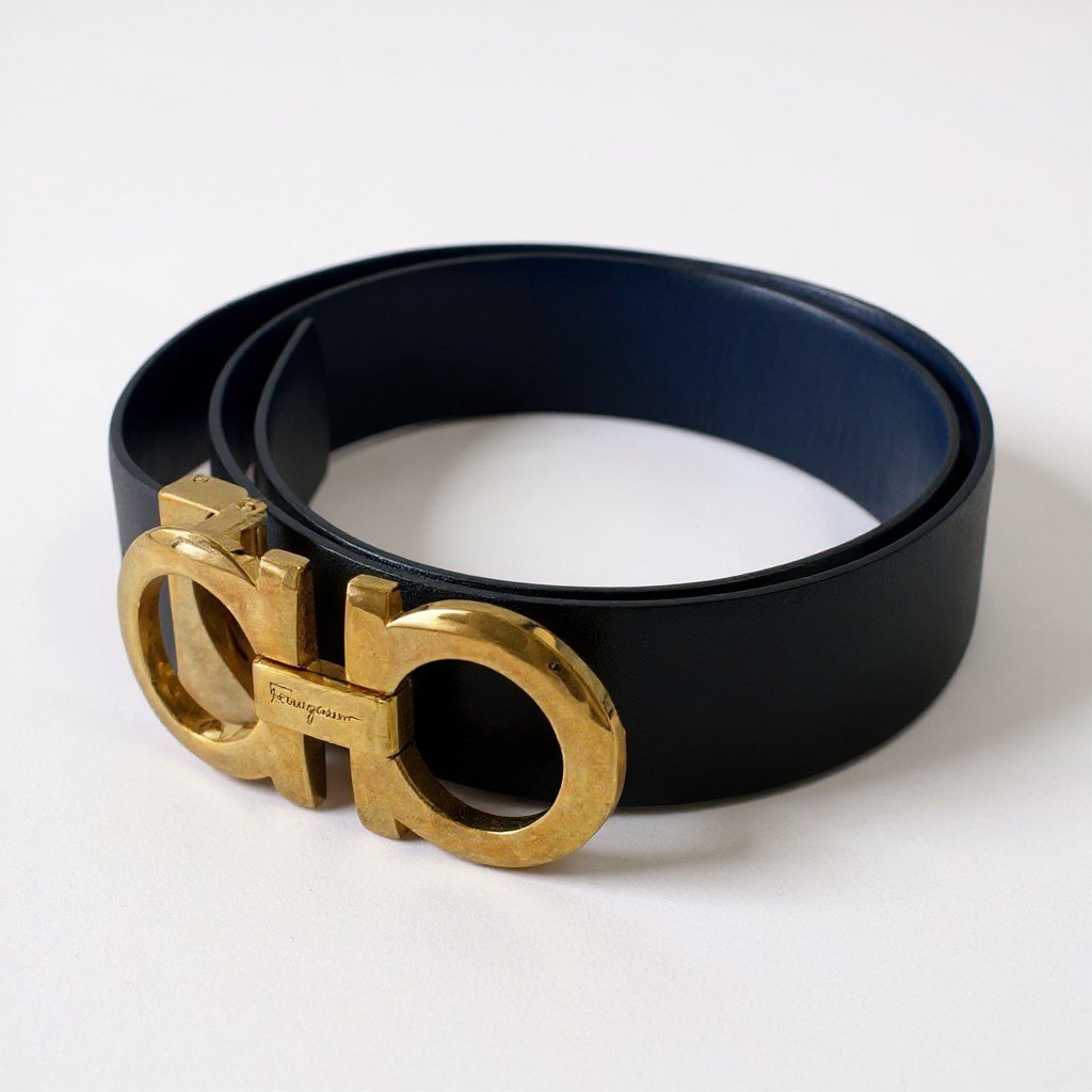 a6【美品】Salvatore Ferragamo サルヴァトーレフェラガモ ガンチーニバックル ベルト リバーシブルベルト イタリア製 ブラック ネイビー レザー 本革 レディースk02i