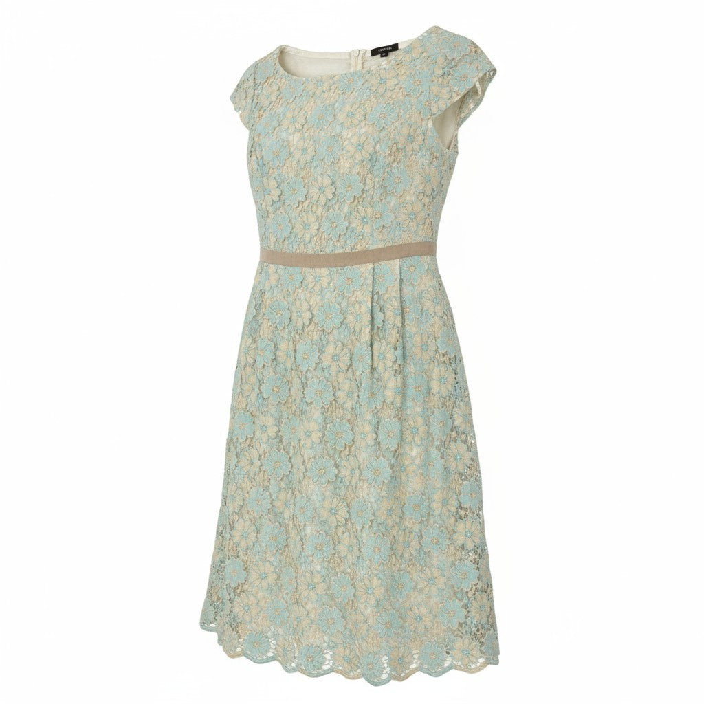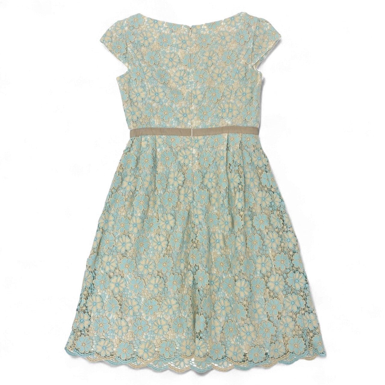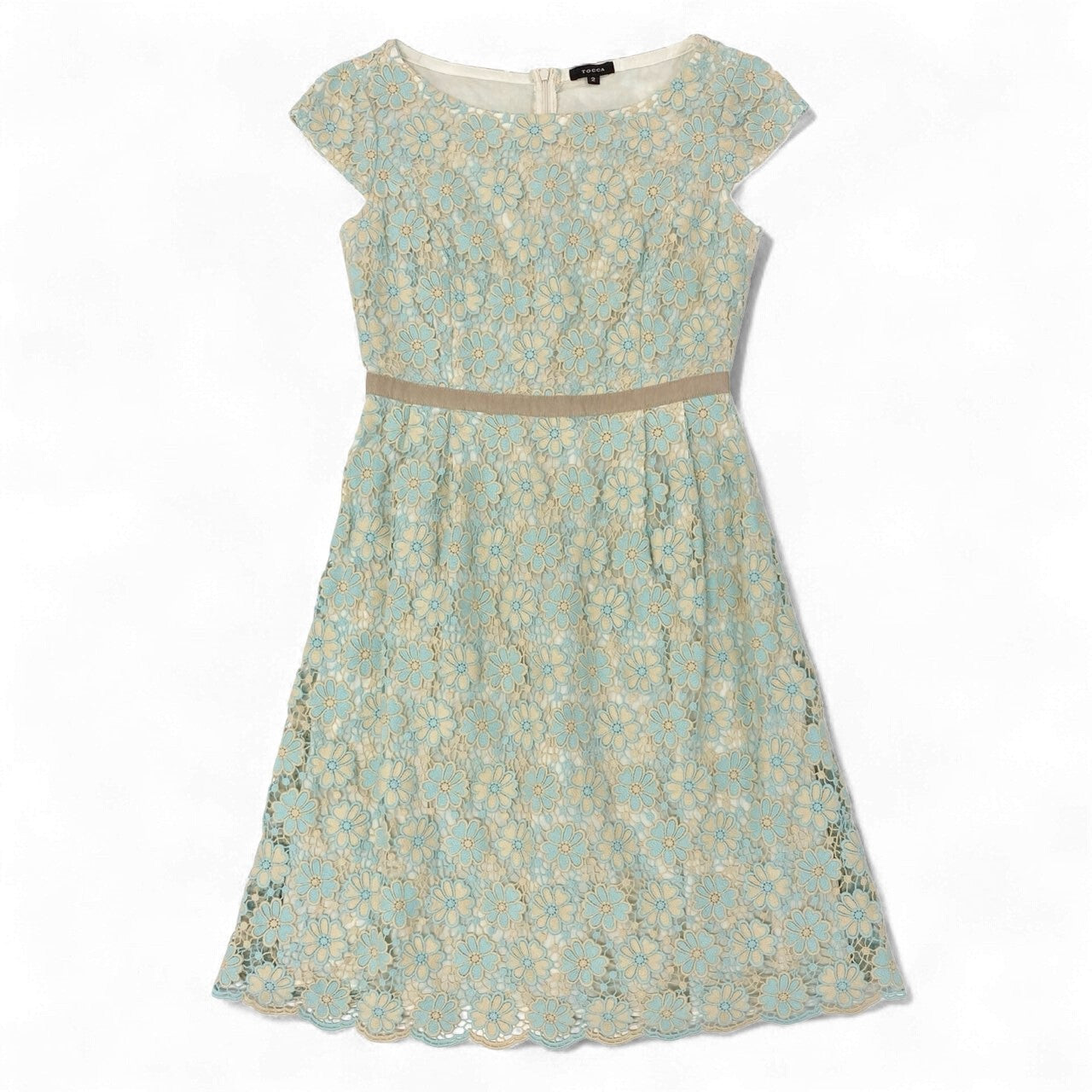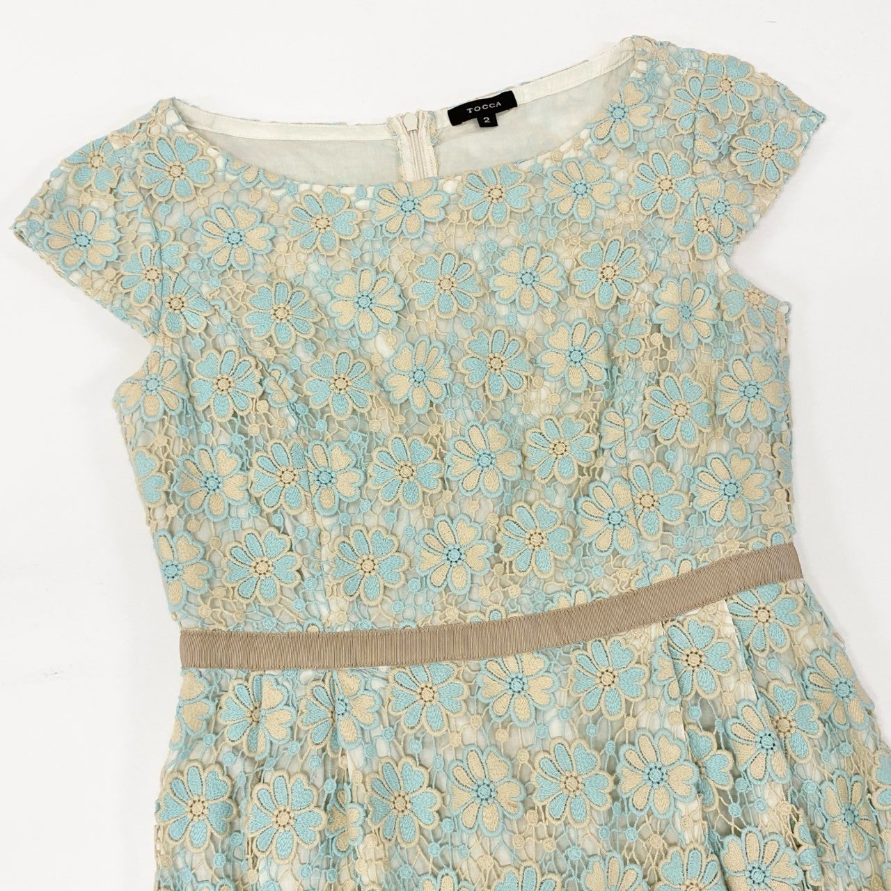 28k5 TOCCA トッカ フルエンブロイダリーワンピース 半袖ワンピース 花柄刺繍 レディース 女性用 2 ベージュ系 ライトブルー コットン100%o07t