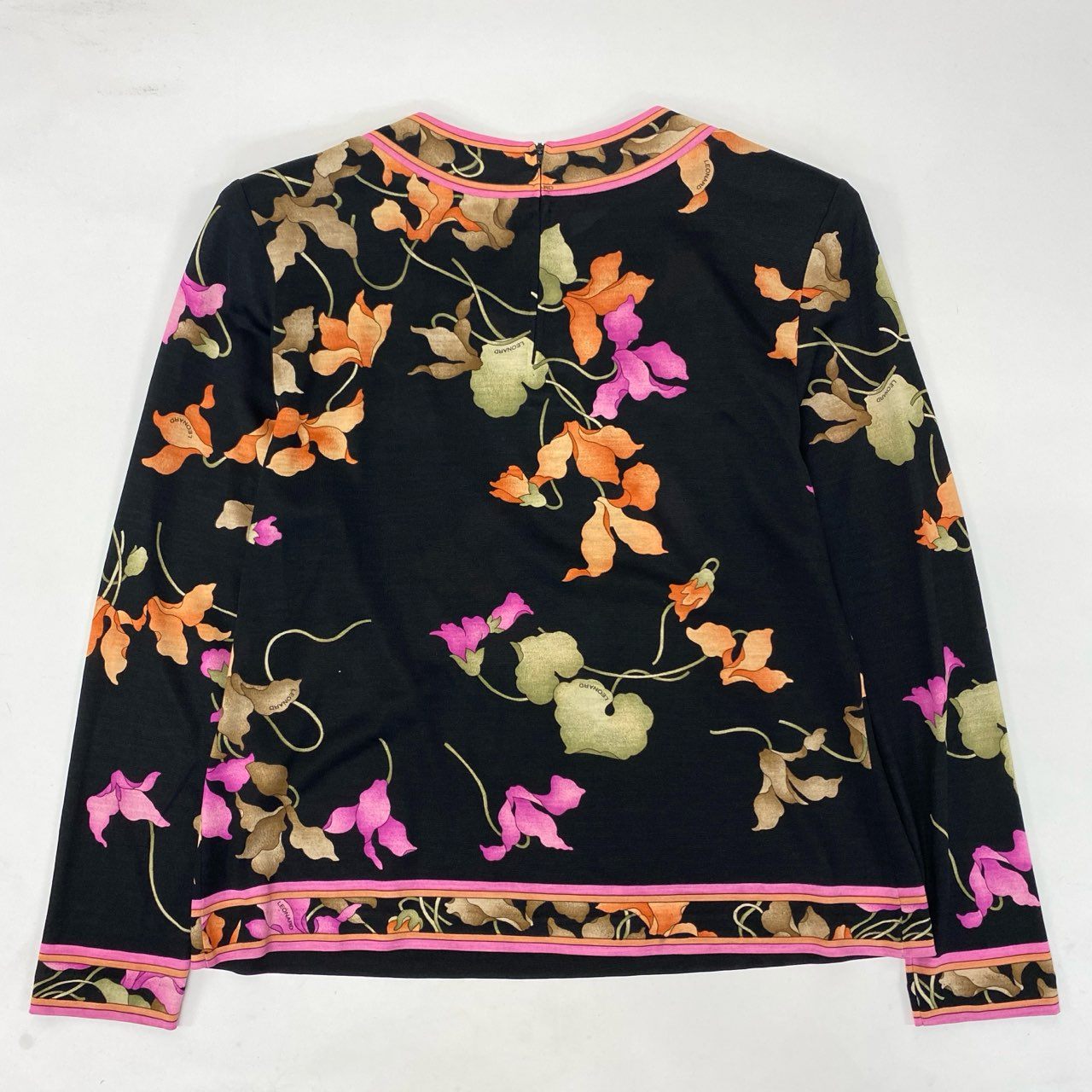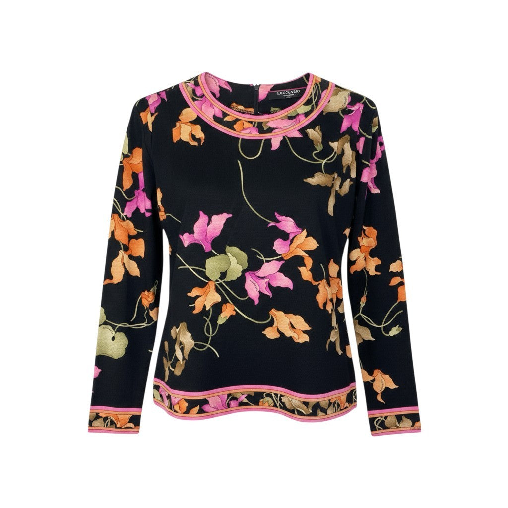 19k10 LEONARD レオナール 長袖カットソー クルーネック 花柄 トップス 0389144 Mサイズ ブラック レディースu02t