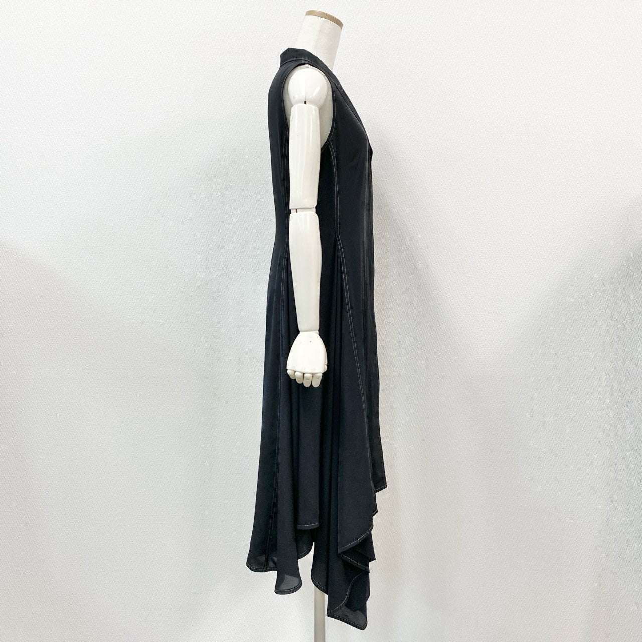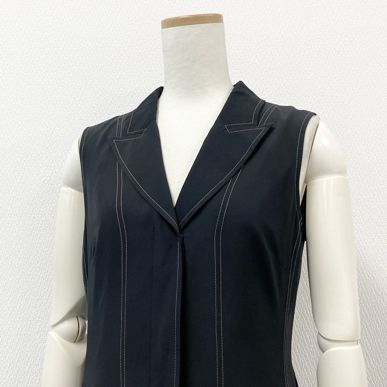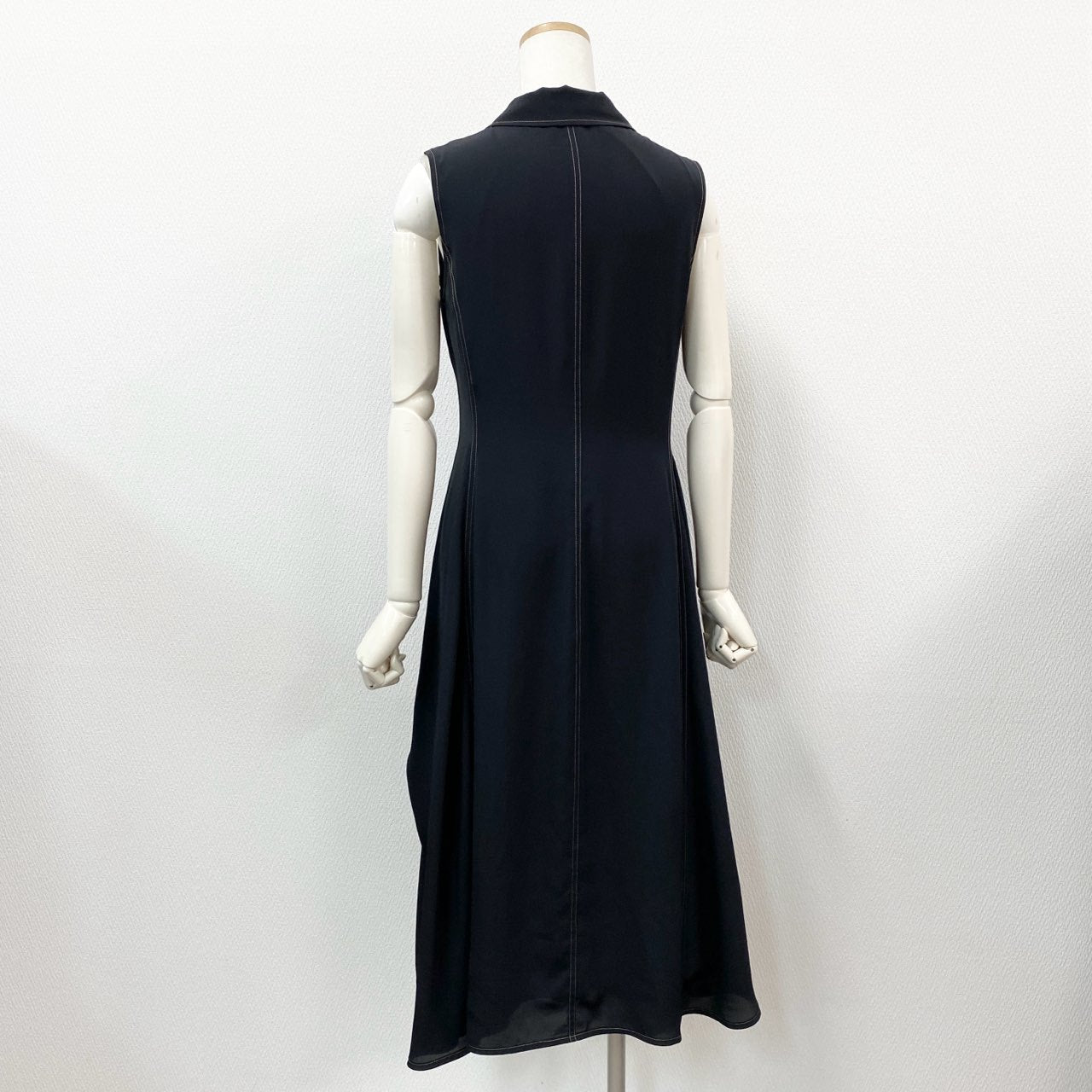44l13 ADEAM アディアム フロントボタン 襟付き ワンピース ノースリーブワンピース ステッチデザイン 38398 サイズ2 ブラック レディース 日本製