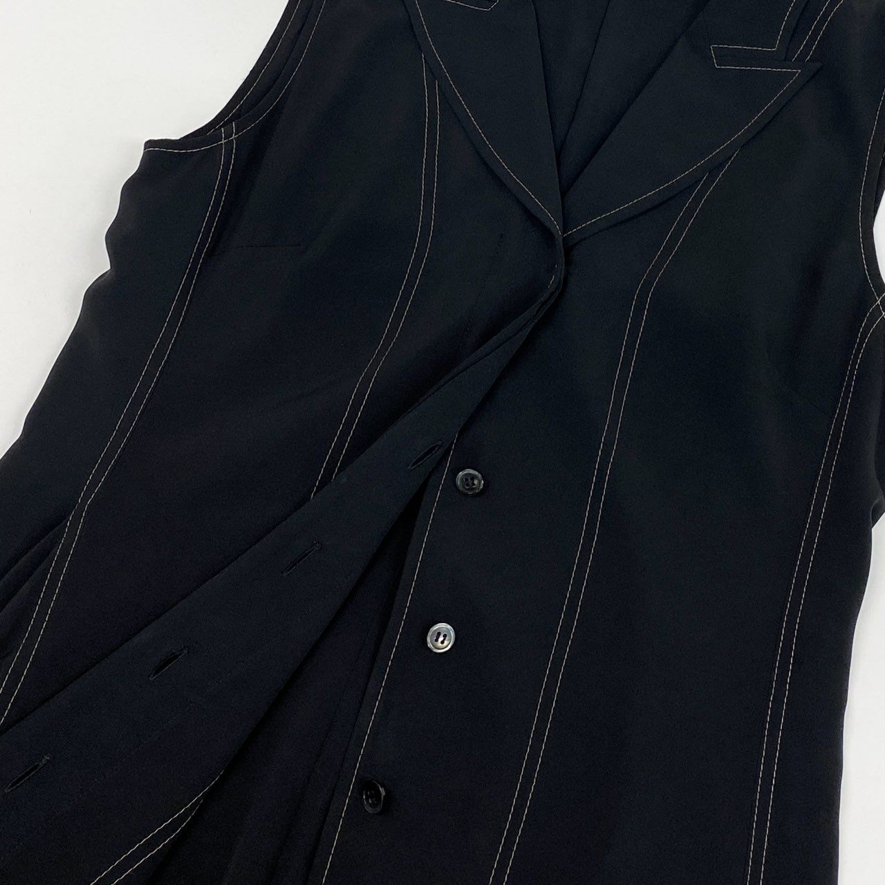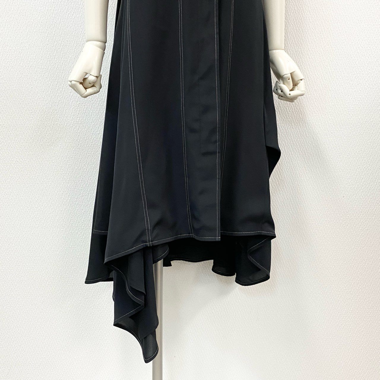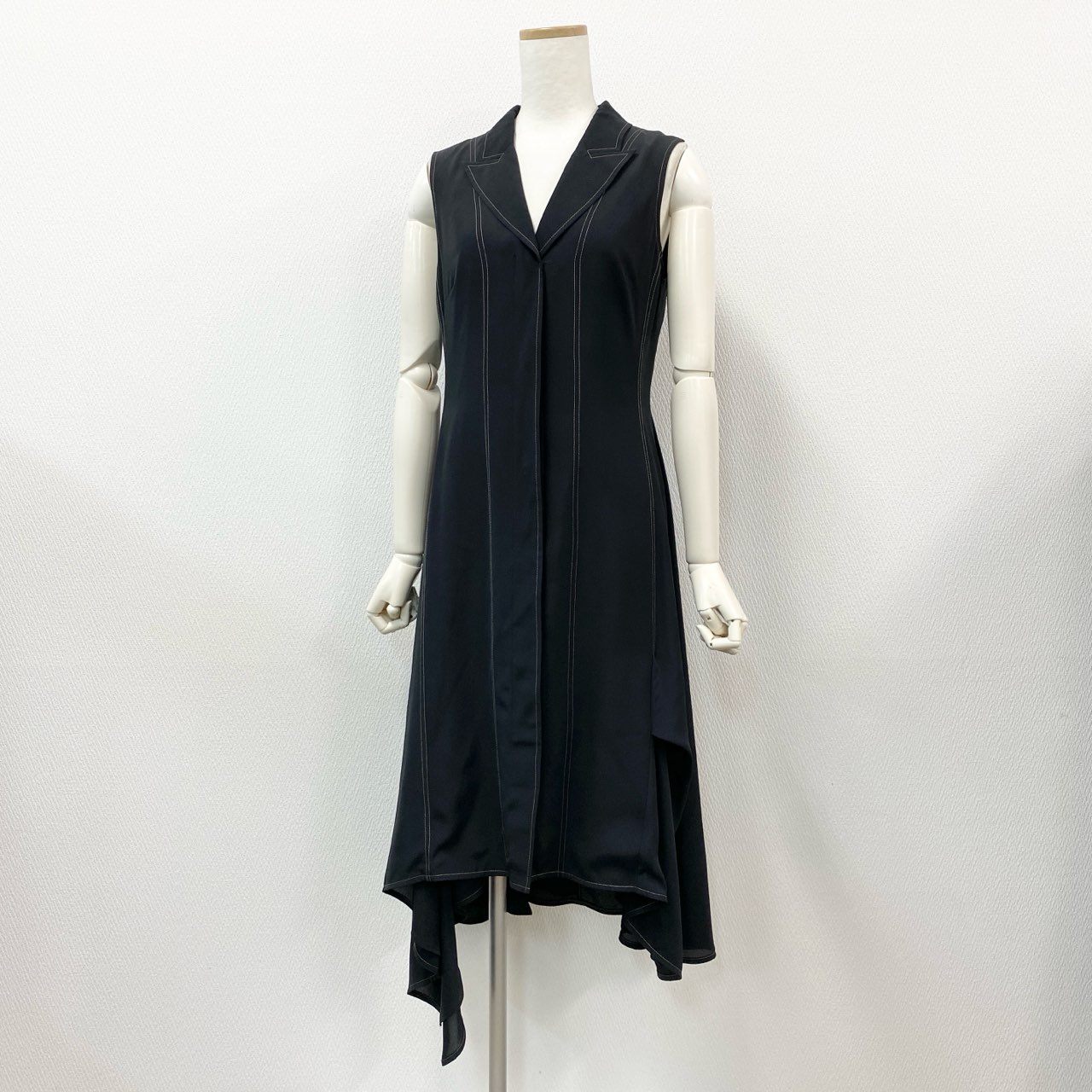 44l13 ADEAM アディアム フロントボタン 襟付き ワンピース ノースリーブワンピース ステッチデザイン 38398 サイズ2 ブラック レディース 日本製