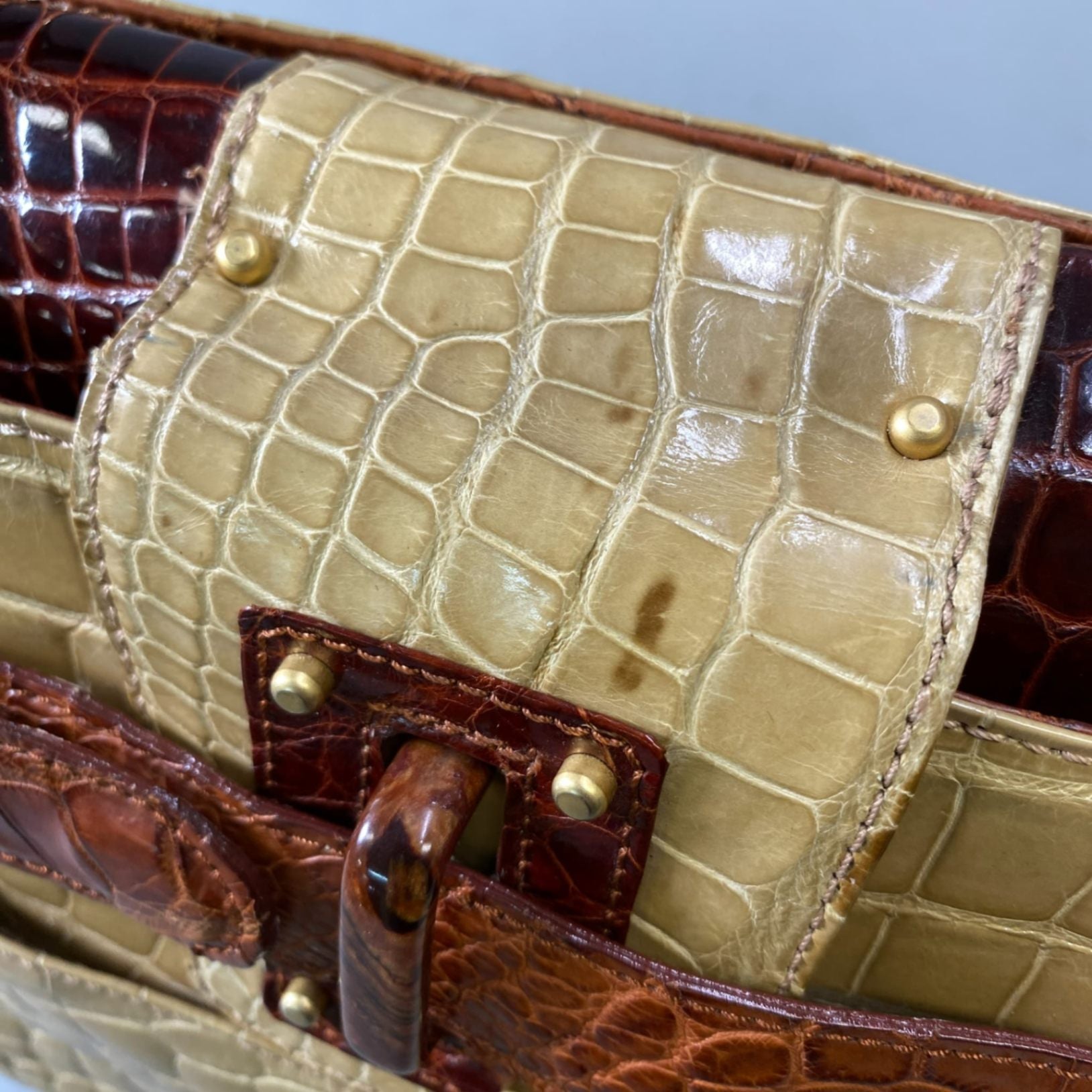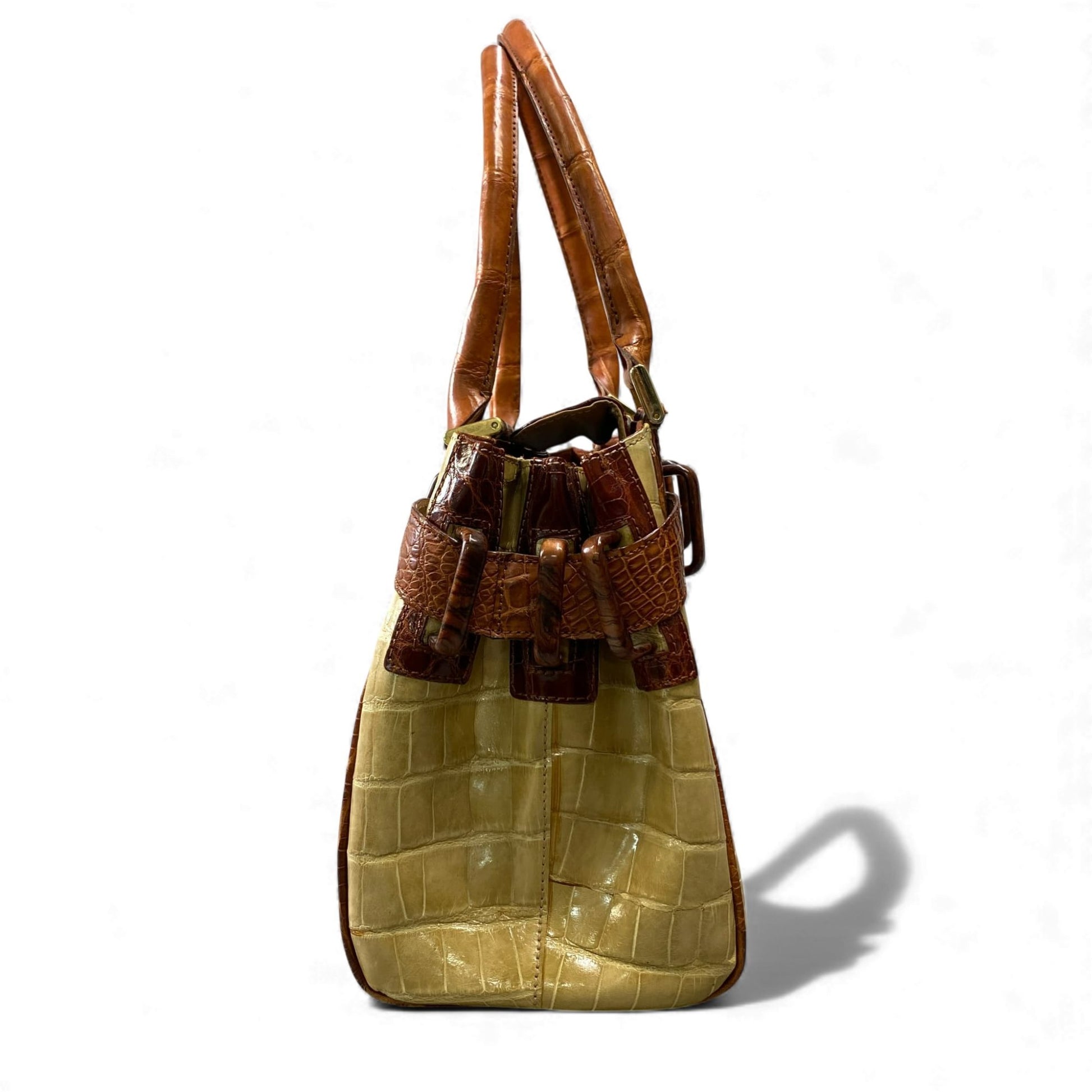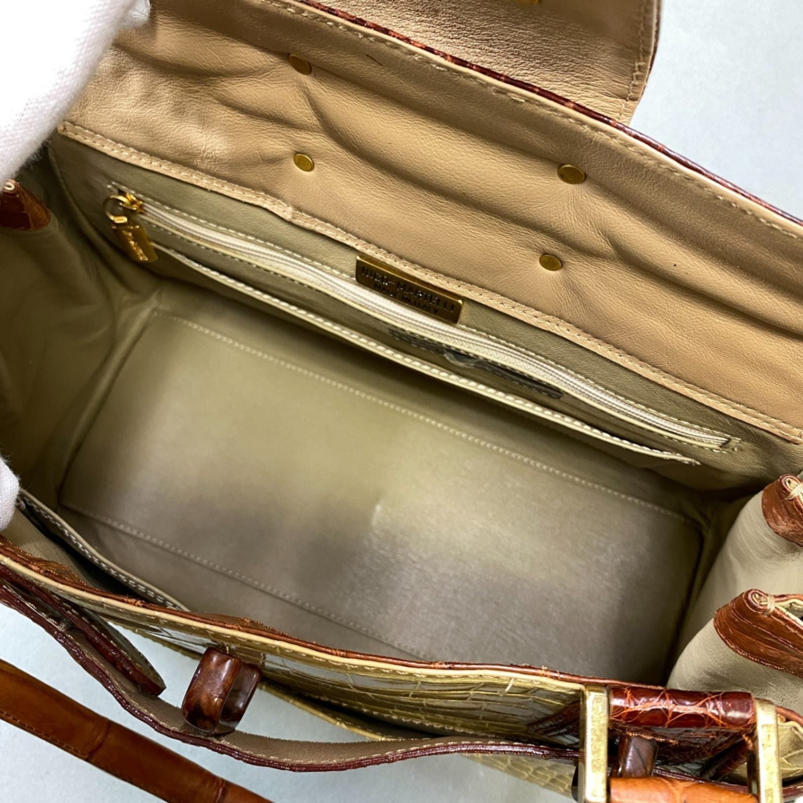 AL10 NICO MARTELLI ニコマルテリ シャイニングクロコ クロコバッグ トートバッグ ハンドバッグ ベージュ ブラウン レディースk02i