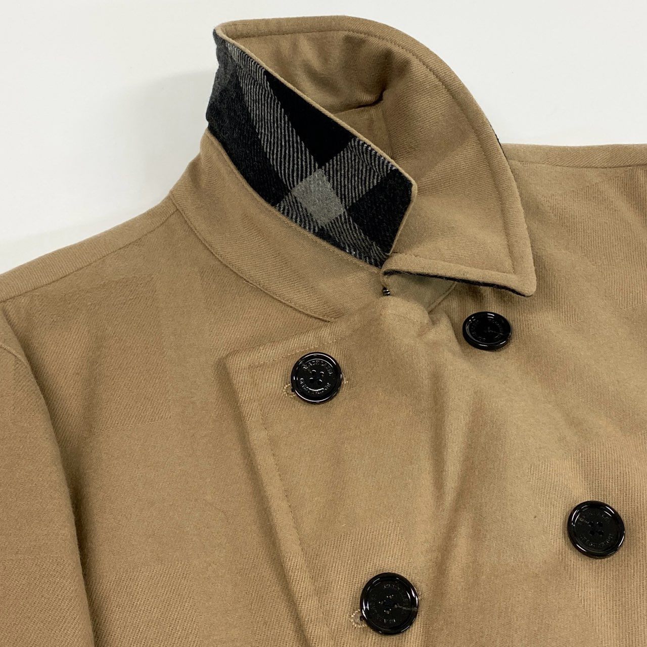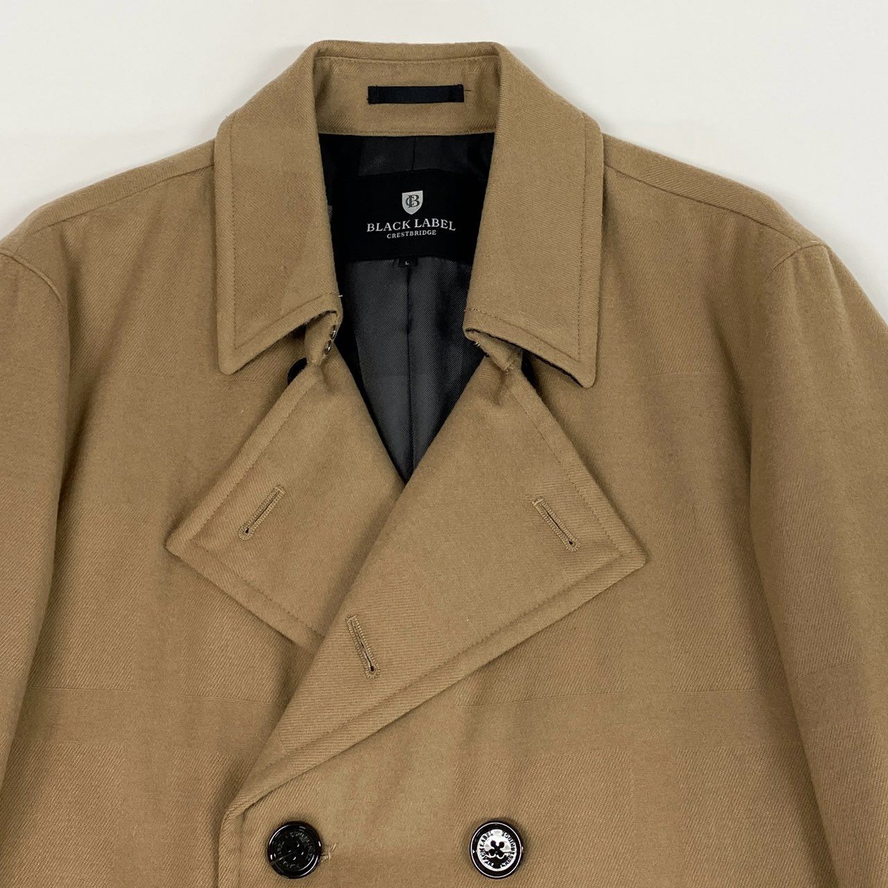 ブラックレーベル・クレストブリッジのダブルブレスト・ピーコート。上質なウール素材を使用し、マットな質感のベージュカラーが上品で落ち着いた印象を与えます。内側にはブランドを象徴するチェック柄の裏地を採用し、細部にまでこだわった仕立て。クラシックなピーコートデザインにモダンなシルエットを融合した一着です。オンオフ問わず着用でき、冬の定番アウターとして長く愛用できます。