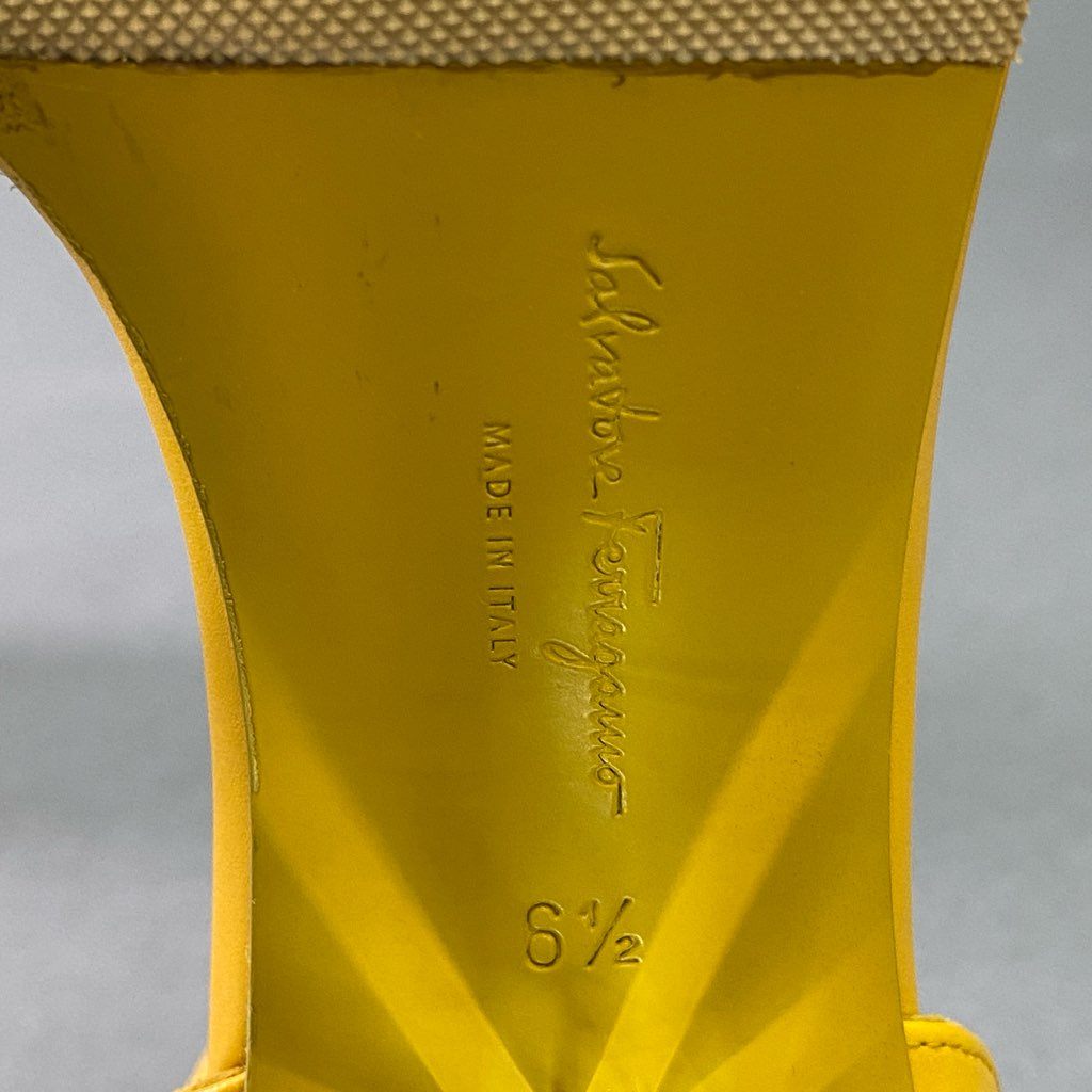 1e10 《美品》 Salvatore Ferragamo サルヴァトーレ フェラガモ ミラーヒール アンクルストラップ サンダル 6 1/2 イエロー レザー シューズ 箱付き 夏