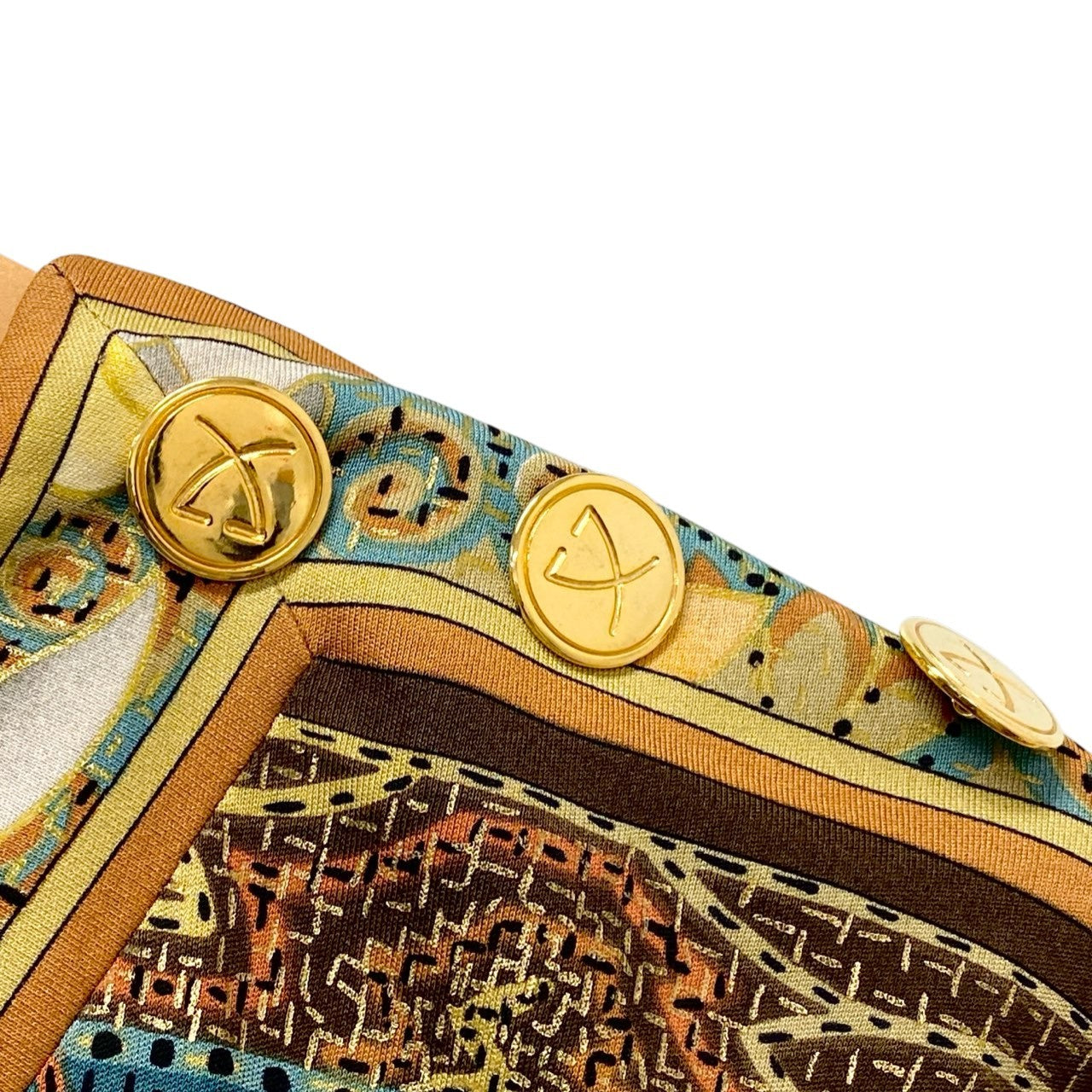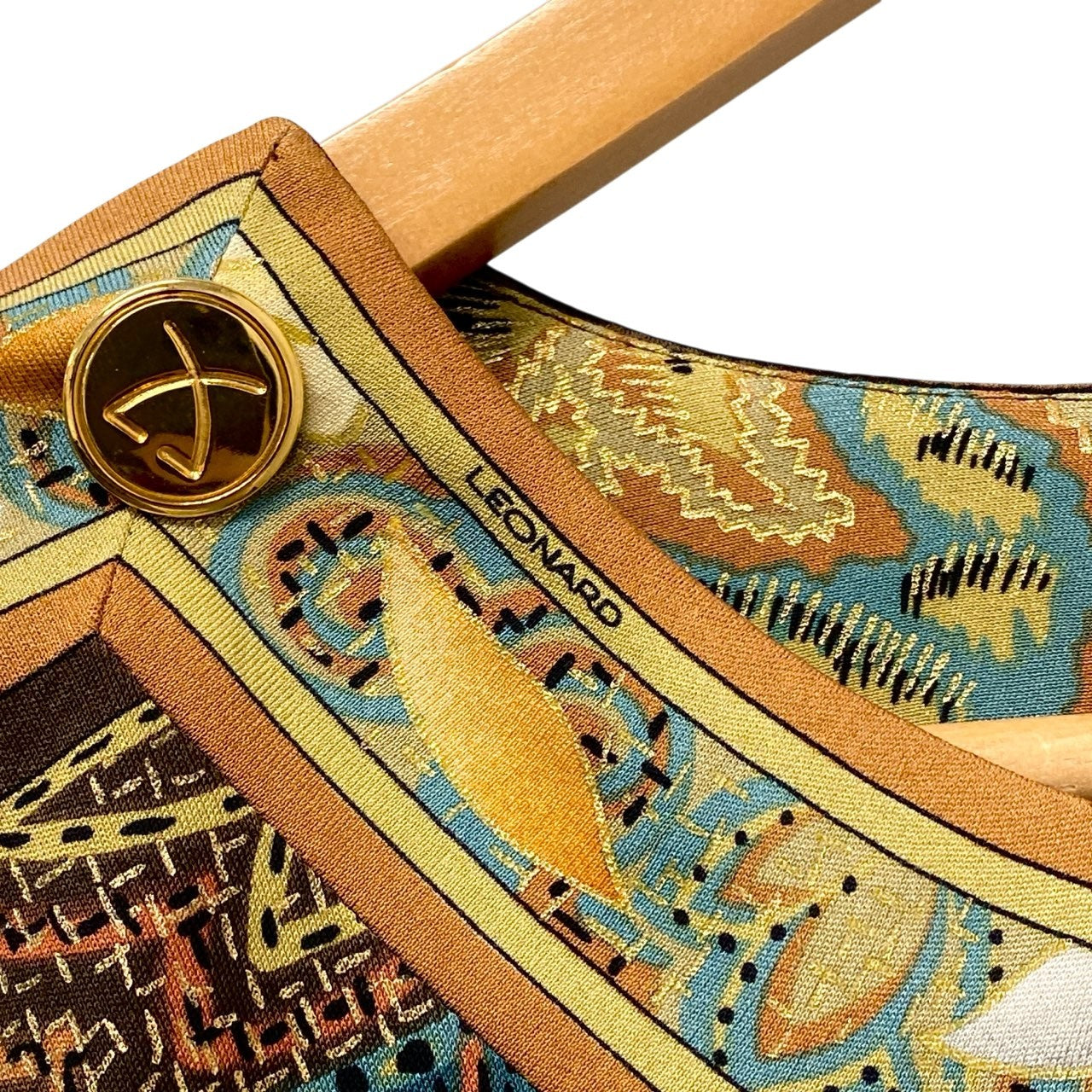 77b26 LEONARD レオナール ロングスリーブカットソー 美しいプリント 金ボタン ラメ マルチカラー シルク100% レディース 女性用u02t