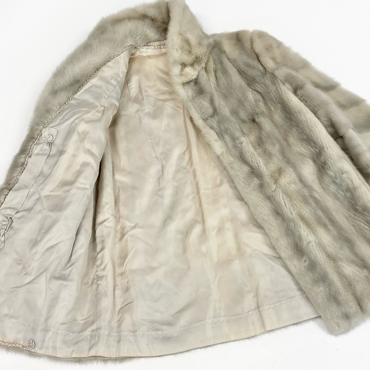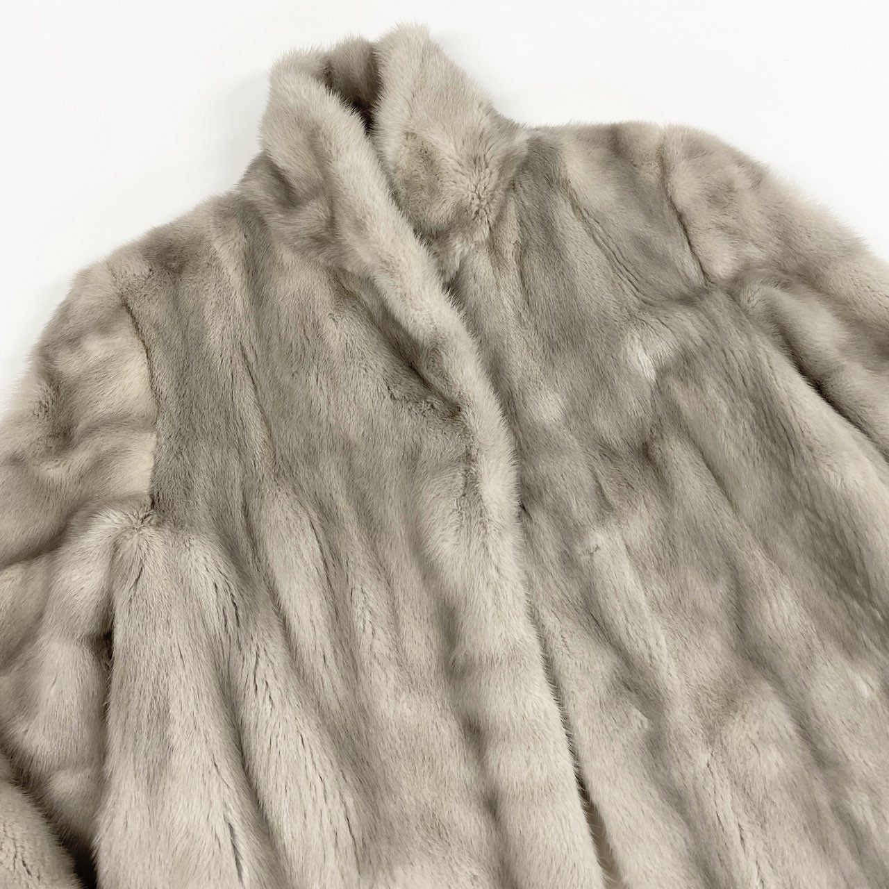 77L8 SAGA MINK サガミンク 銀サガ サファイアミンク 横段スリーブ ファーコート サイズ13号 シルバーグレー 最高級本毛皮 MINK FUR ポケット有t18r