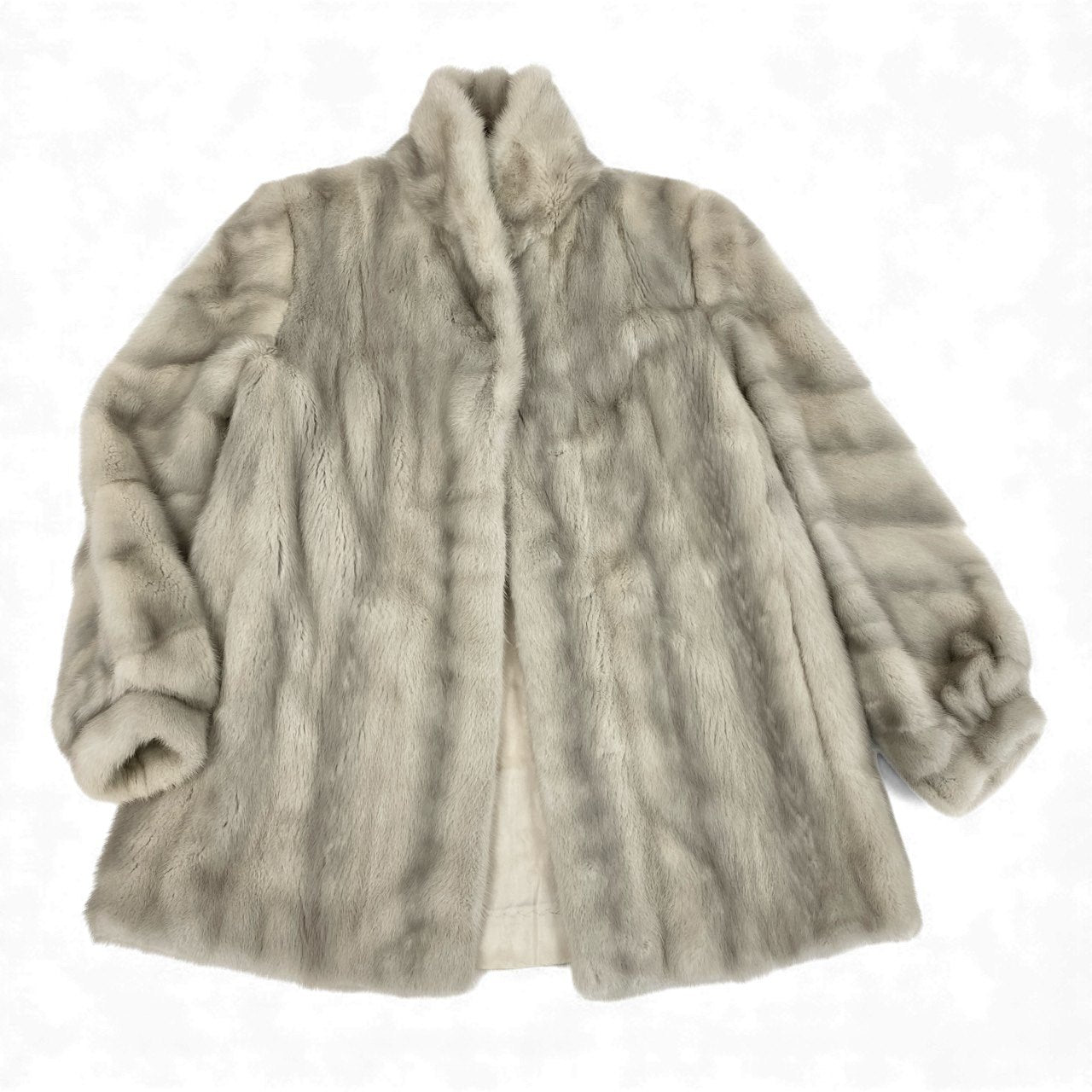 柔らかい輝きを放つシルバーグレーのサファイアミンク(銀サガ)を贅沢に使用した、SAGA MINK の高級ファーコートです。なめらかで密度のある毛並みが上質で、淡いグレーの美しい陰影がエレガントな存在感を演出。横段スリーブ仕様により、腕まわりに自然な立体感が生まれ、クラシックかつモダンな印象に仕上がっています。74cmのセミロング丈はフォーマルスタイルとの相性も抜群で、冬のお出かけや特別なシーンにぴったりのラグジュアリーな一着です。