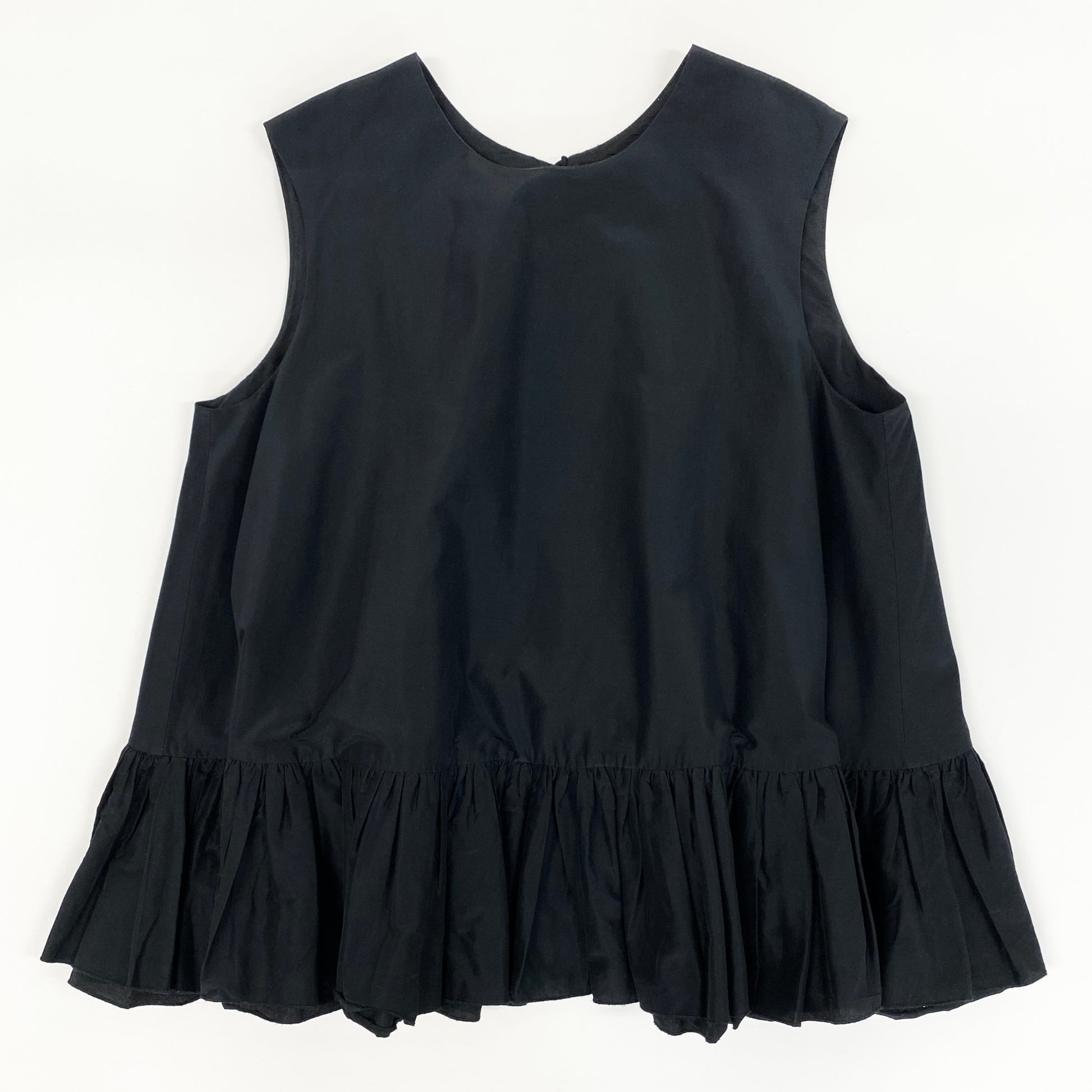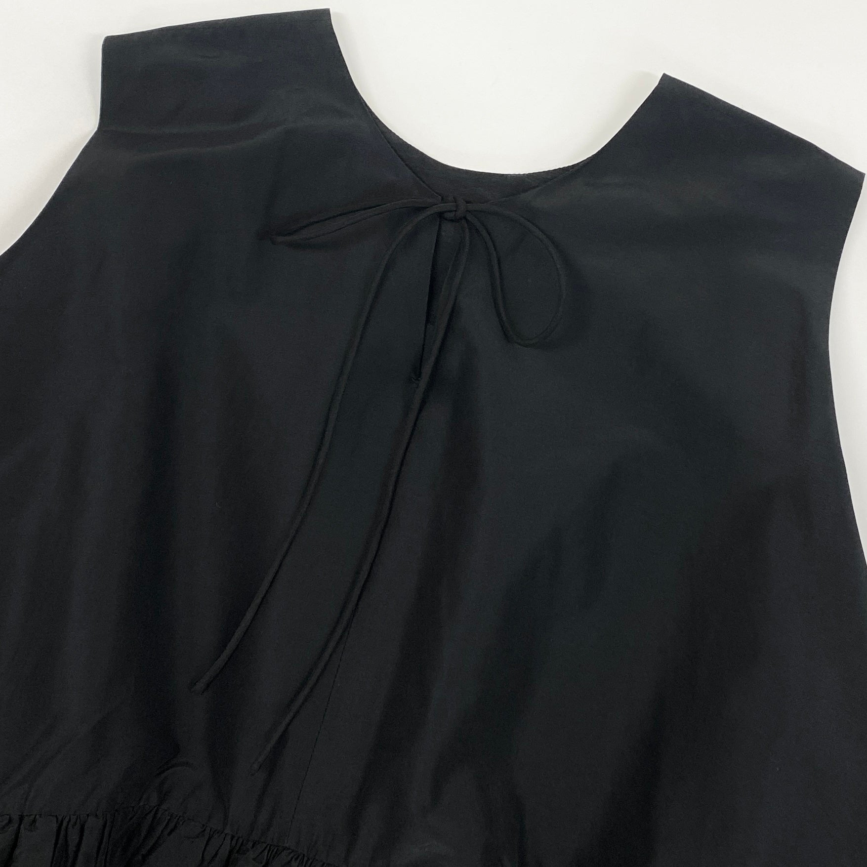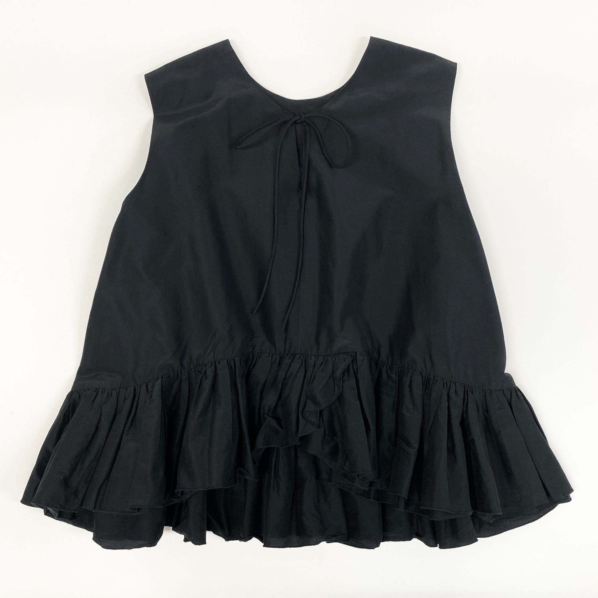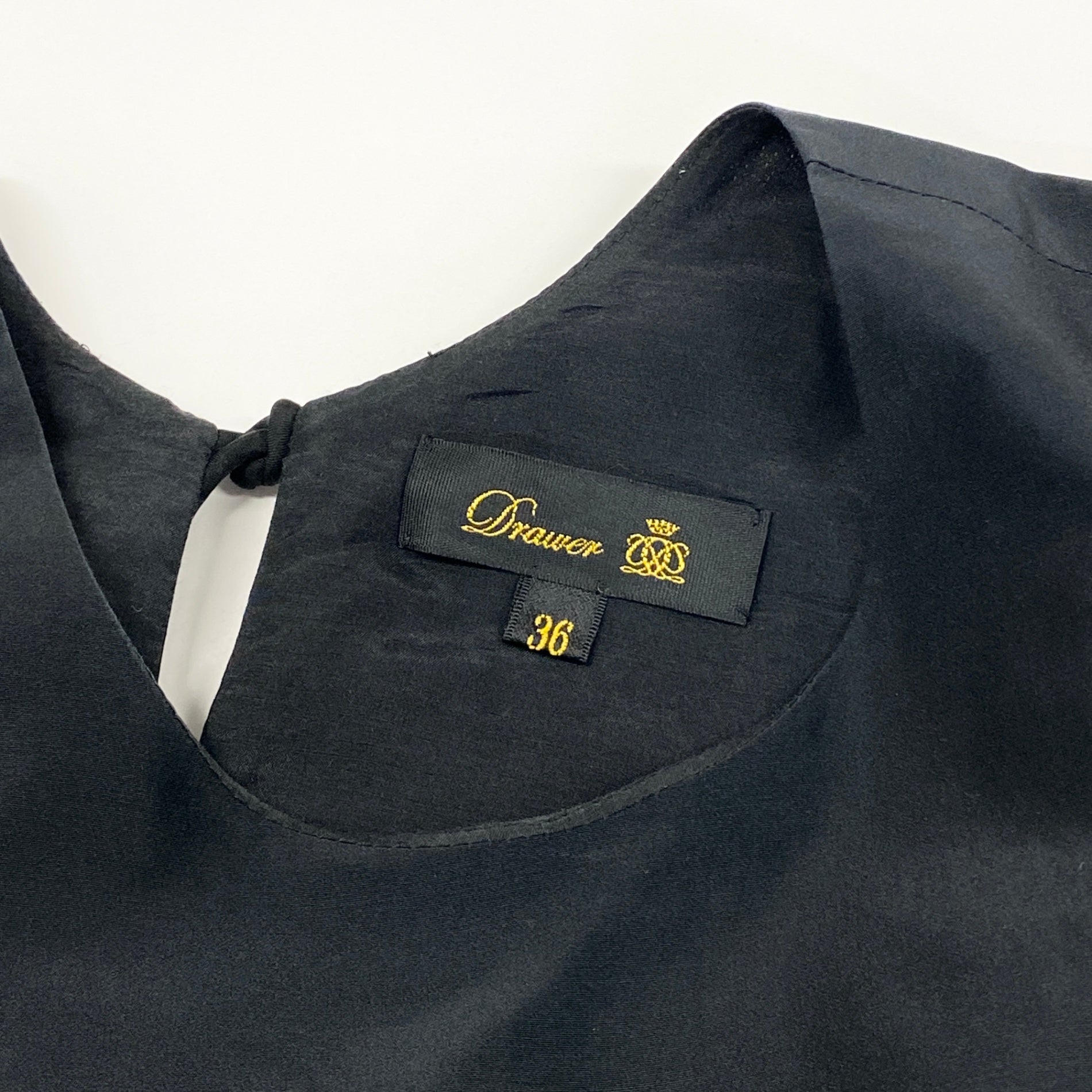 54g10 《美品》定価¥68.200 Drawer ドゥロワー タフタバックリボン ノースリーブブラウス 36 ブラック シルク混 ペプラム チュニック 日本製