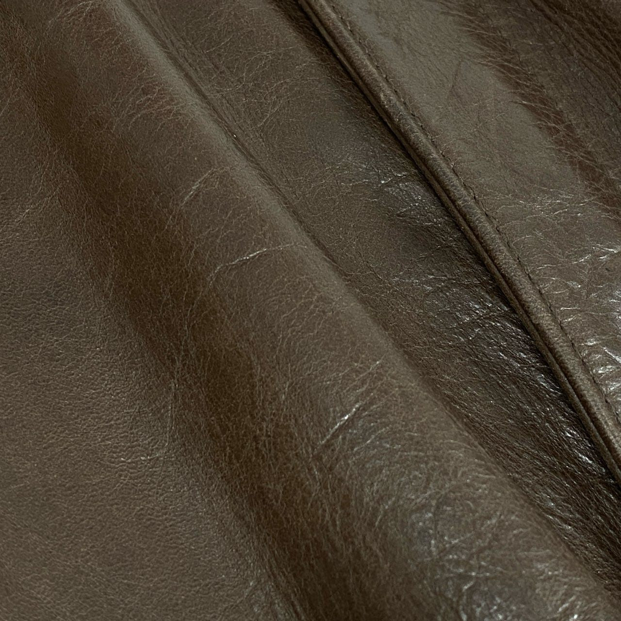 アヴィレックス(AVIREX)の人気モデル「6141063」レザーフライトジャケット。渋みのあるモカブラウンレザーに、胸元と両袖へ配置されたフライングスカル/U.S.ARMYパッチがミリタリーテイストを際立たせます。マットな艶を帯びた厚手レザーが重厚感を放ち、リブ仕様の裾と袖口が防風性を高める設計。ヴィンテージ感のある仕上げで、バイクシーンからタウンユースまで幅広く活躍する本格派フライトジャケットです。