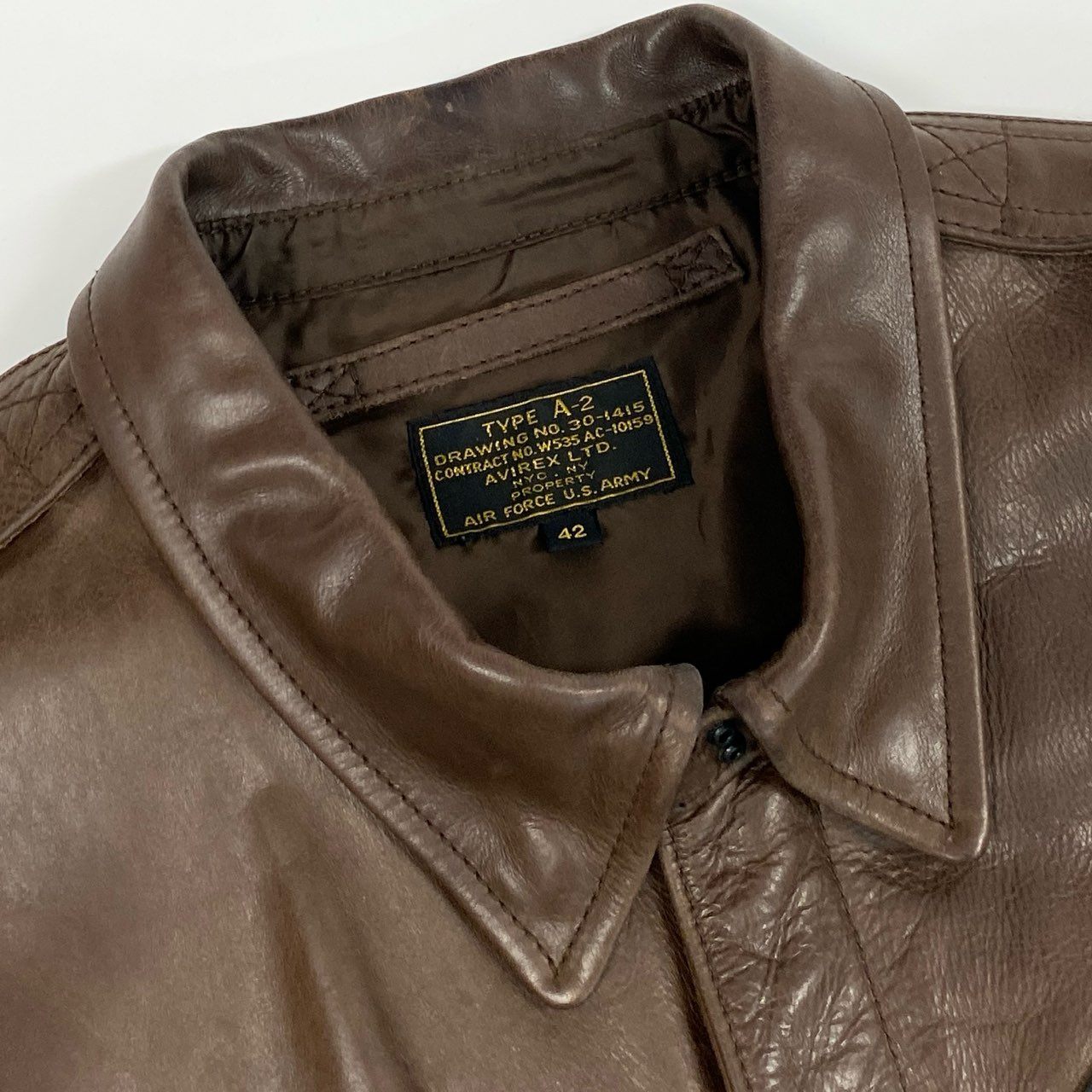 16j20 AVIREX アヴィレックス A-2 FLYING SKULL フライングスカル レザージャケット 6141063 42 ブラウン フライトジャケット U.S.ARMY 30-1415t18r