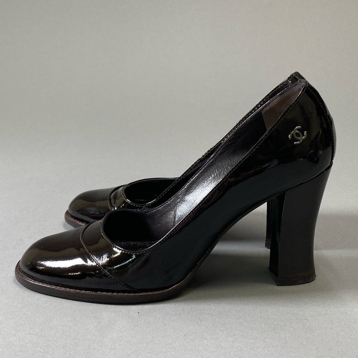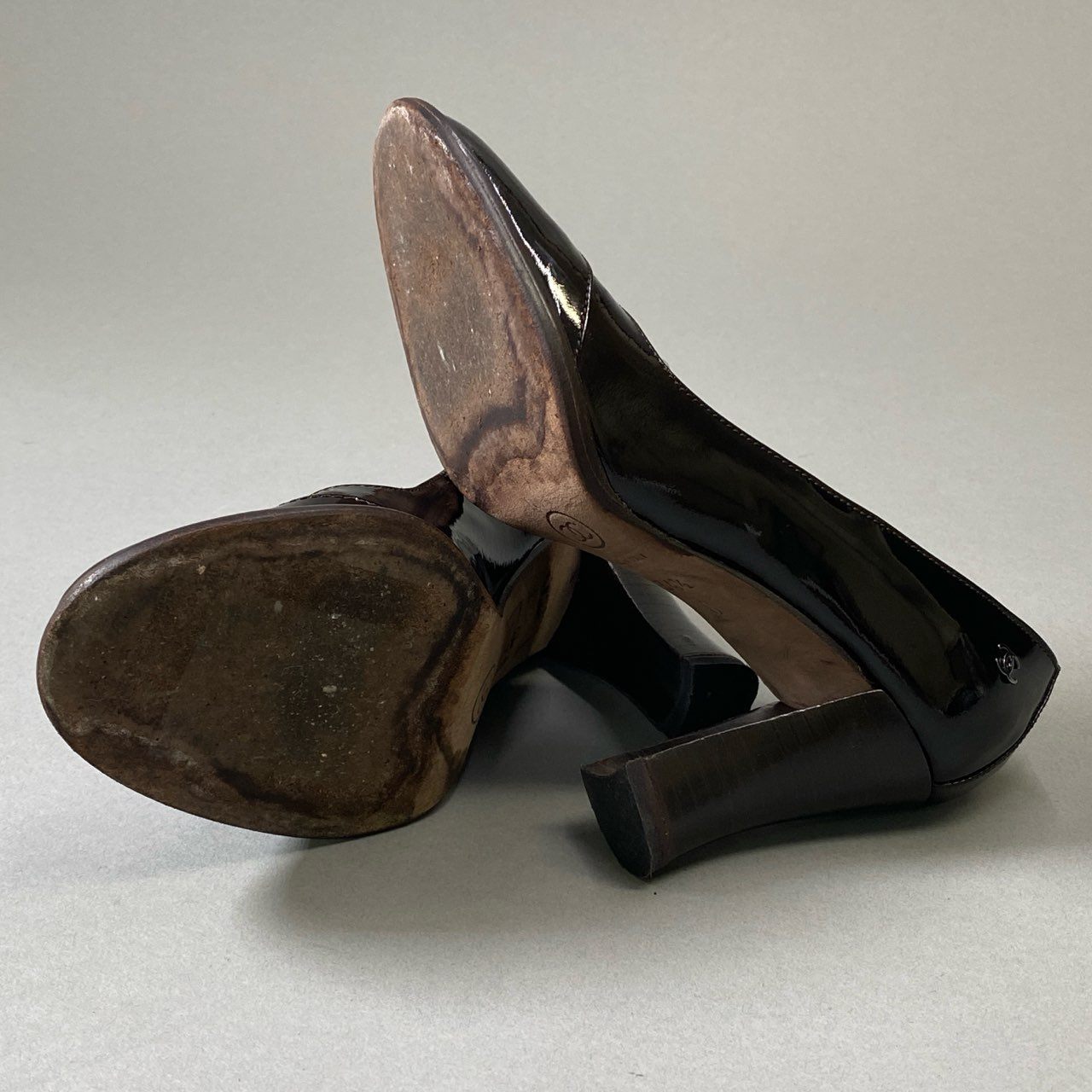 3i30 CHANEL シャネル ココマーク 金具ロゴ パテントレザー ヒール シューズ 34 1/2サイズ ブラック レザー レディース シューズt18r