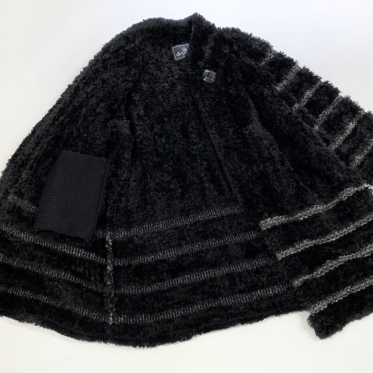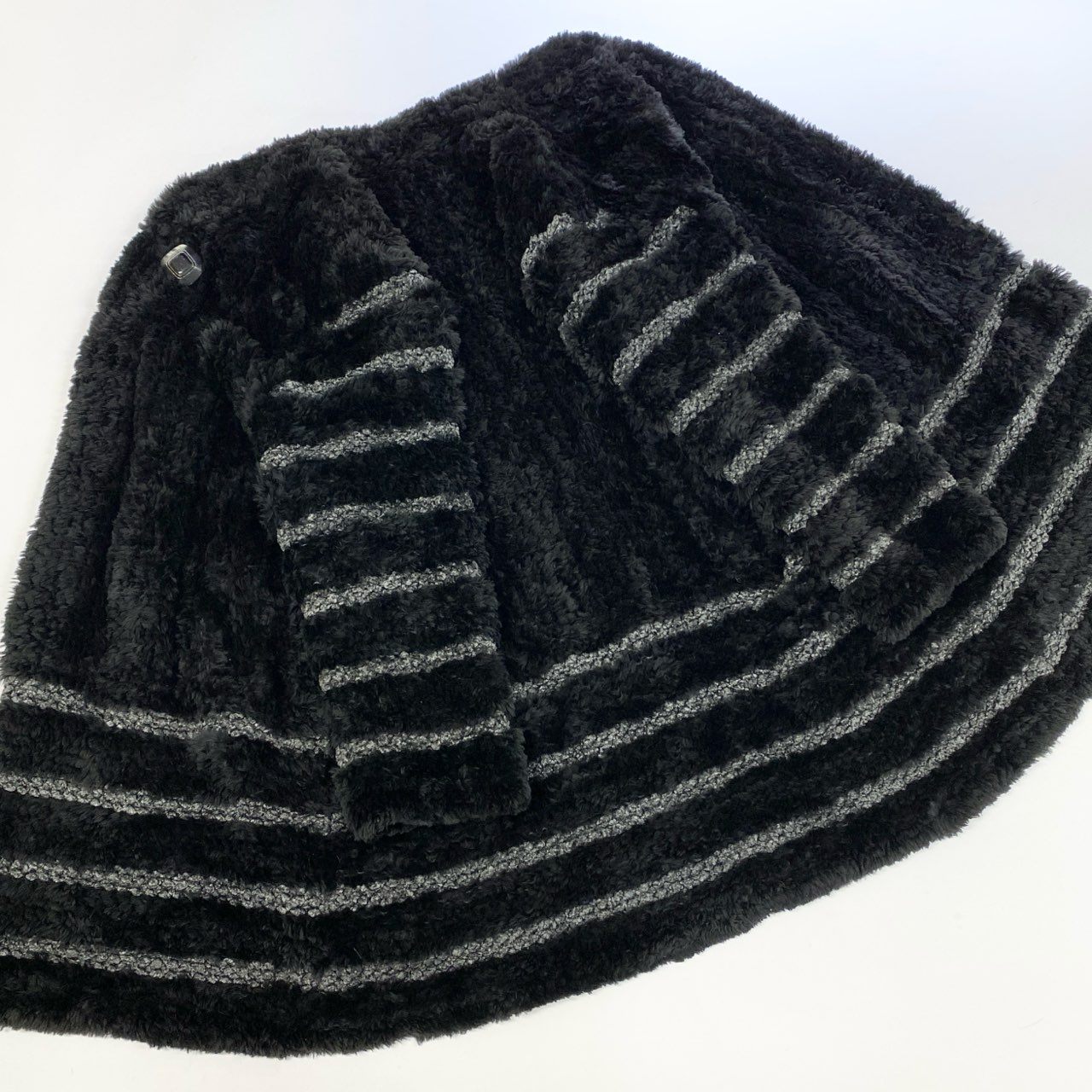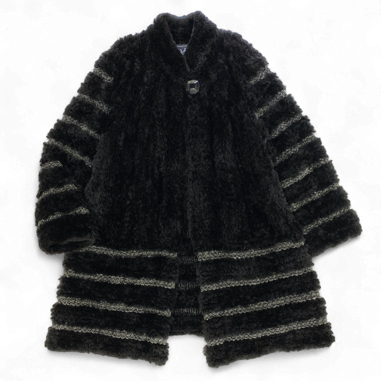 44k14 Erom Roche エロムロシェ ヌートリア ファーコート 毛皮コート 装飾ボタン ボーダー 11号 ブラック グレー レディースu02t