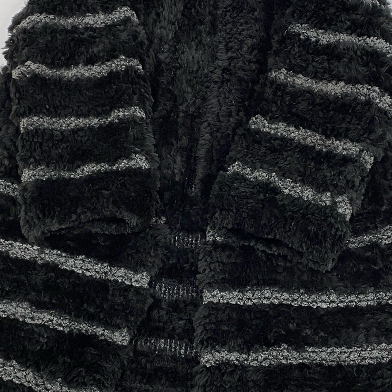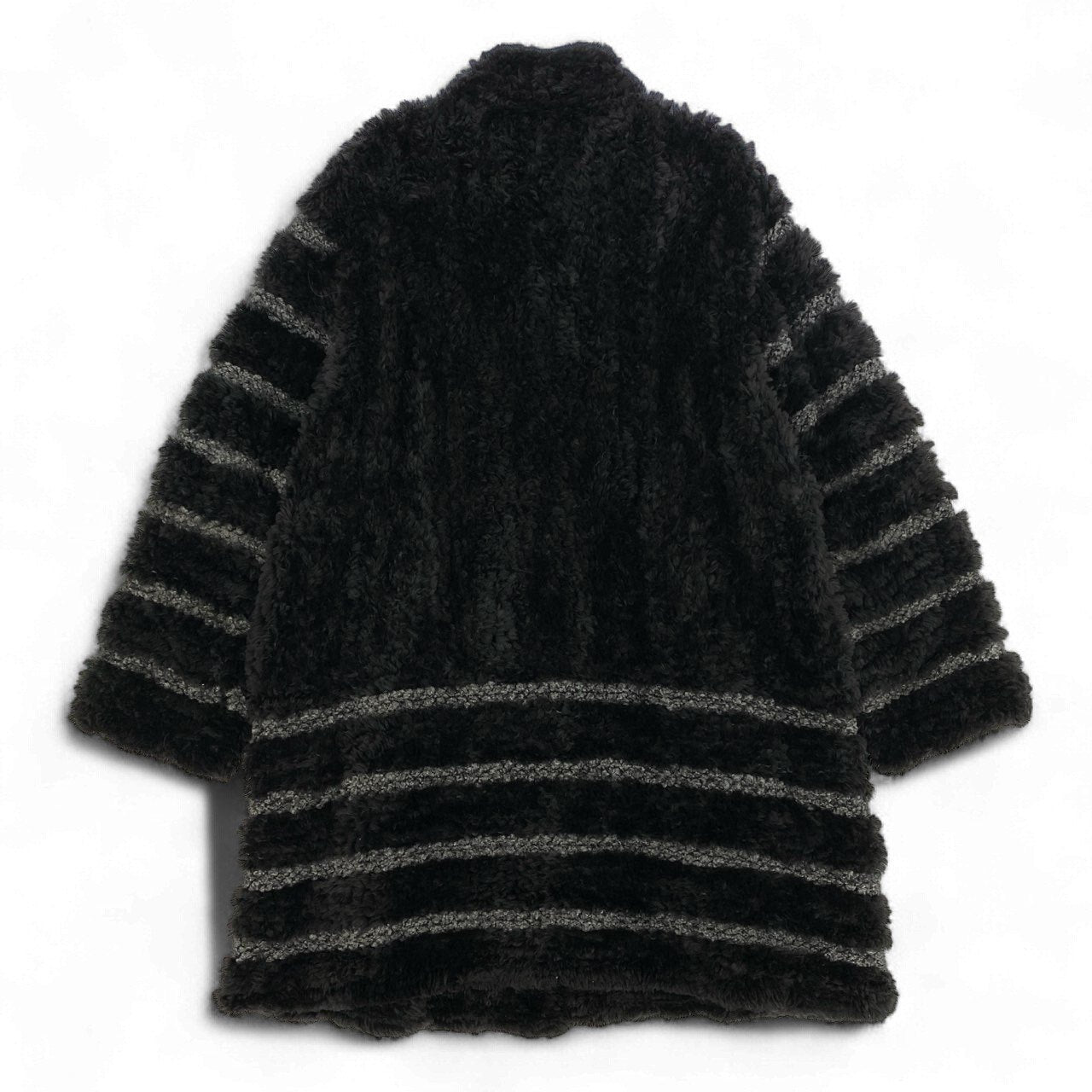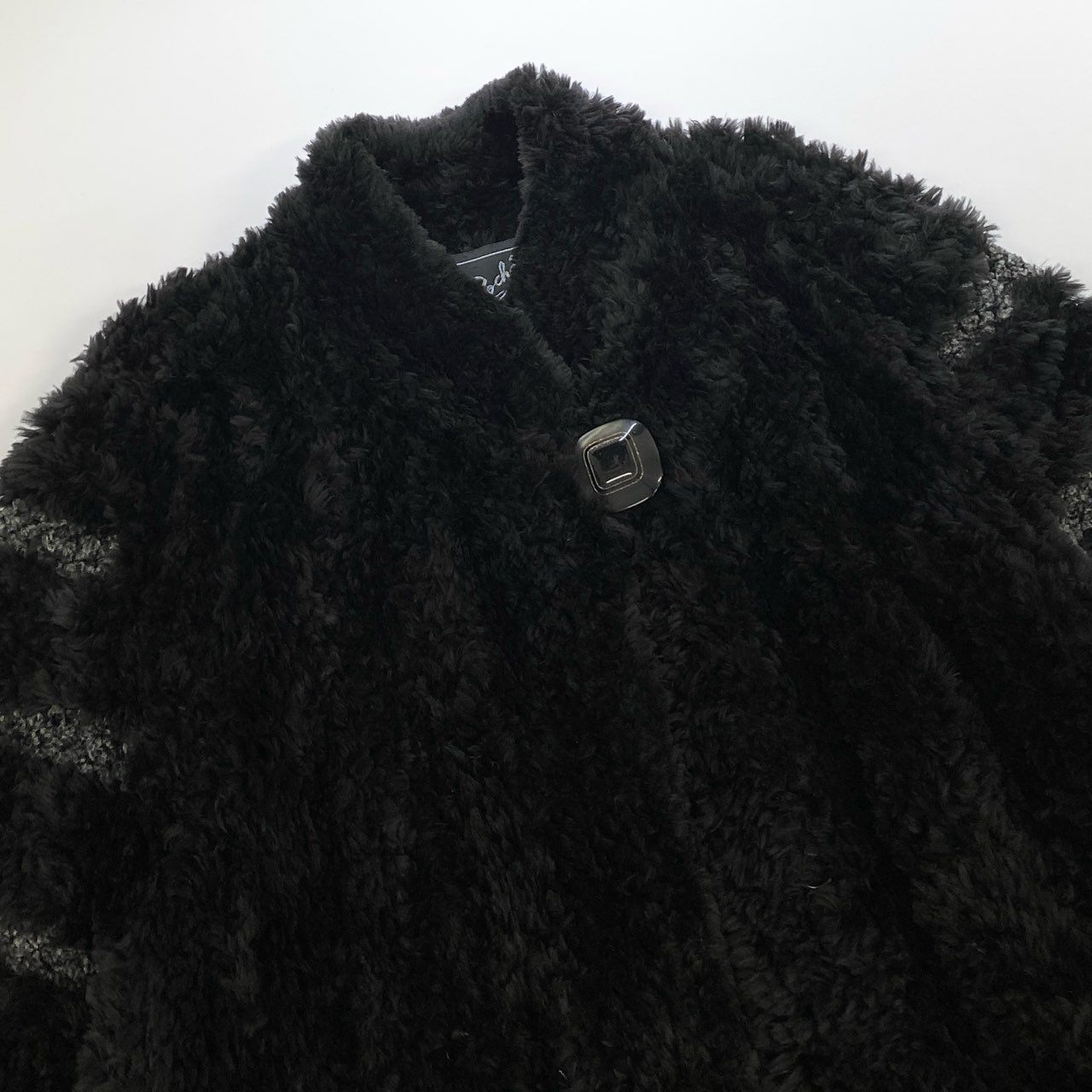 44k14 Erom Roche エロムロシェ ヌートリア ファーコート 毛皮コート 装飾ボタン ボーダー 11号 ブラック グレー レディースu02t