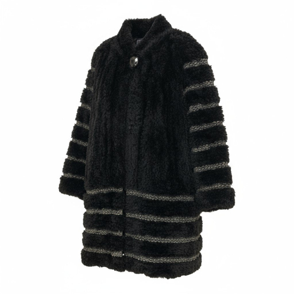 深みのあるブラックにグレーのボーダーを組み合わせた、高級感と個性を併せ持つヌートリアファーコートです。毛足がふっくらとした柔らかい質感で、見た目以上に暖かく包み込むような着用感が魅力。袖と裾に施されたグレーボーダーがアクセントになり、重たくなりがちな冬コーデにも華やかさをプラスします。フロントの大きめ装飾ボタンが上品さを引き立て、セミロング丈はドレスにもデイリーにも着回しやすい万能バランス。冬のお出かけや特別なシーンにぴったりの一着です。