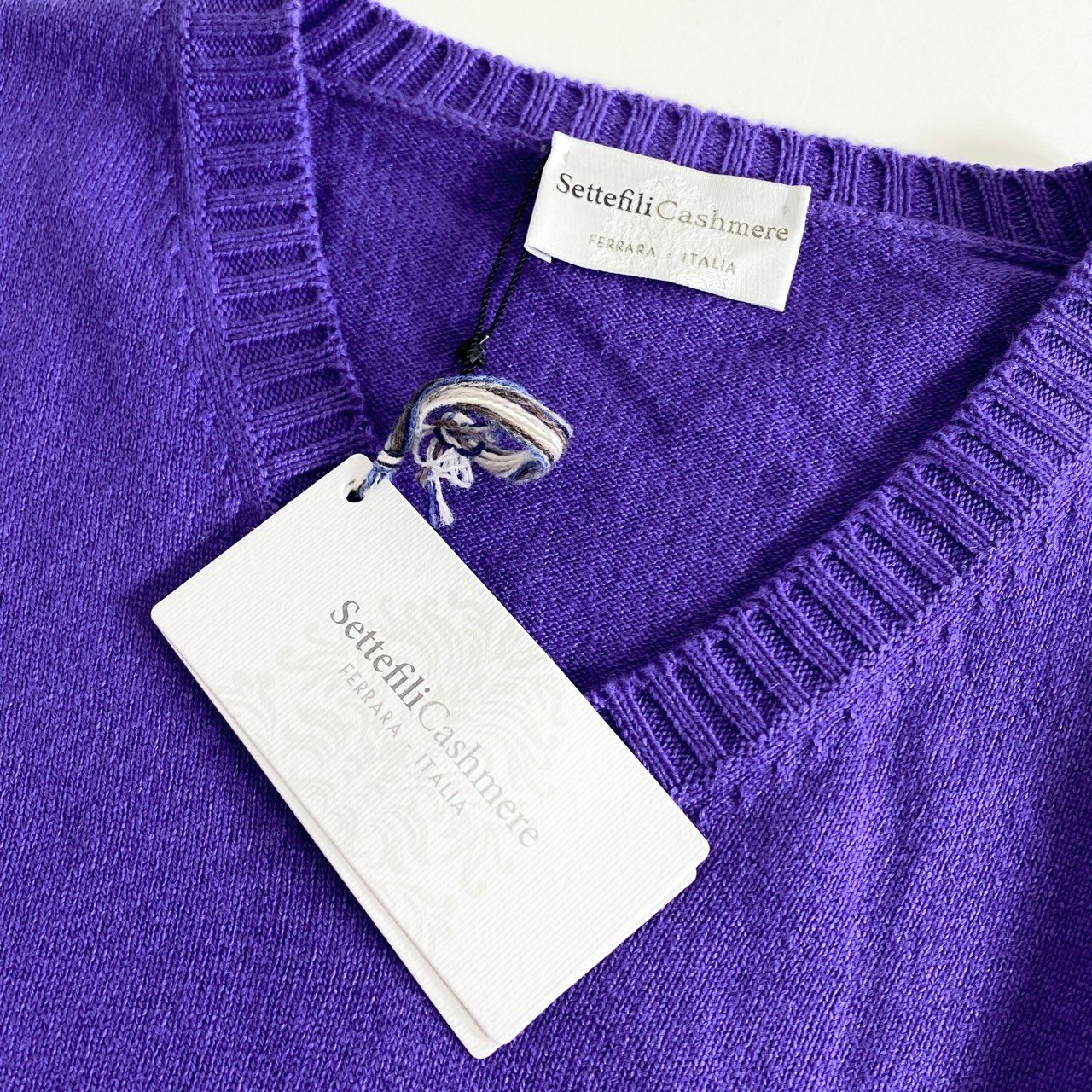 84h27①《未使用保管品》 イタリア製 Settefili Cashmere セッテフィーリカシミア Vネックニット セーターサイズ48 パープル カシミヤシルク メンズ 紳士服