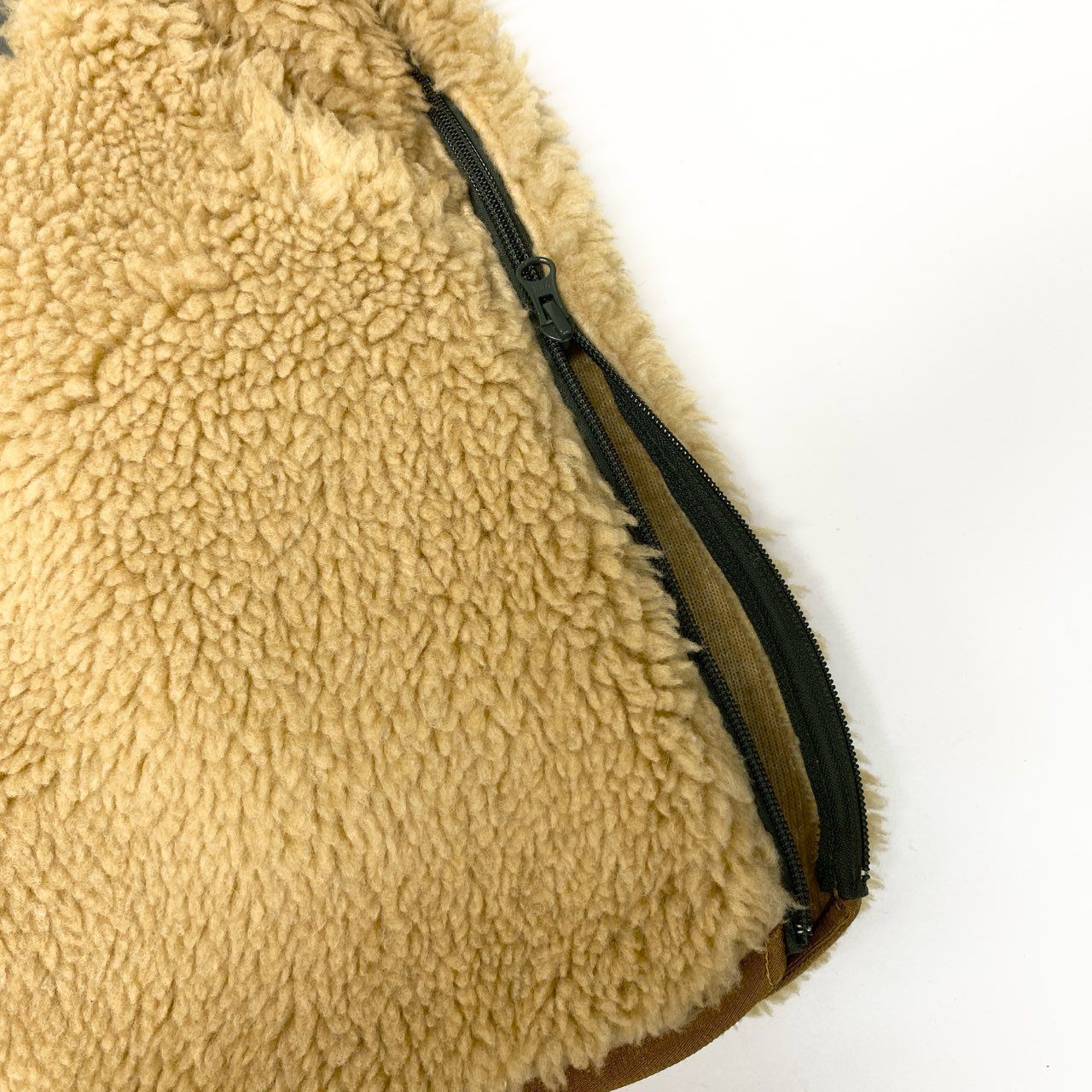 ベージュのボアフリースにカーキのナイロン切替を組み合わせた、NATAL DESIGNのホワイトバッファローボアジャケットです。毛足の長いボアフリース素材で保温性が高く、アウトドアシーンにも適した一着。胸元のナイロンポケットやフード部分の配色デザインがアクセントになっています。フロントジップ仕様で着脱もしやすく、ゆったりとしたシルエットでリラックスした着心地。キャンプやアウトドア、タウンユースにも活躍する機能性とデザイン性を兼ね備えたジャケットです。