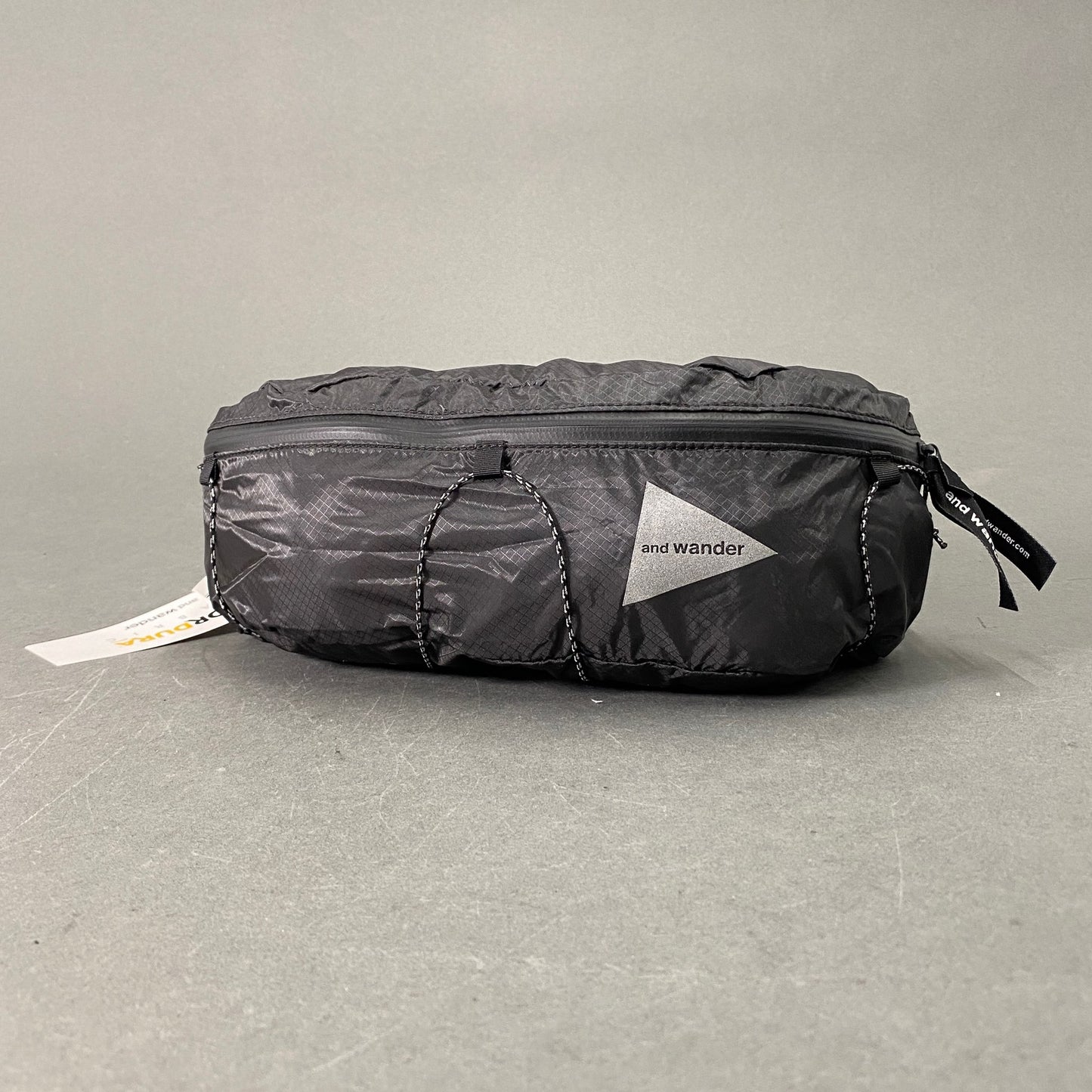 《未使用品》 and wander アンドワンダー タグ付き ウエストバッグ チャコール コーデュラナイロン シリコンコーティング