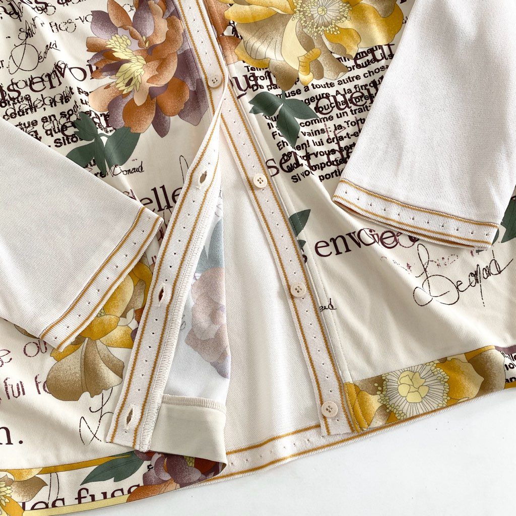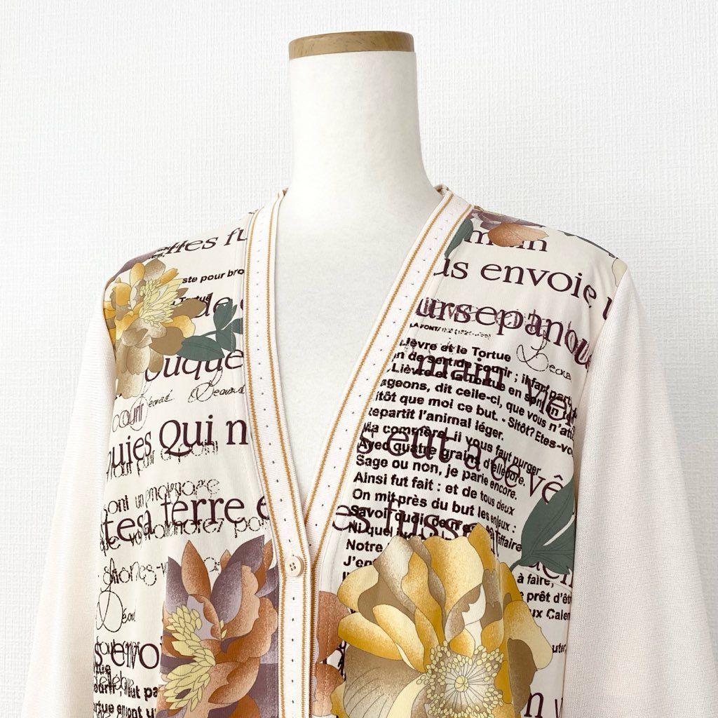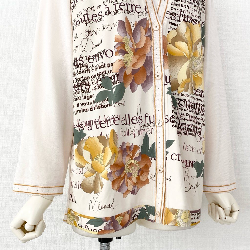 27f20-4 《美品》 大きいサイズ LEONARD SPORT レオナール カンカン素材切替 カーディガン ニットカーディガン 美しい花柄プリント 着丈ゆったり 0568648 サイズ42 マルチカラー レディース 日本製