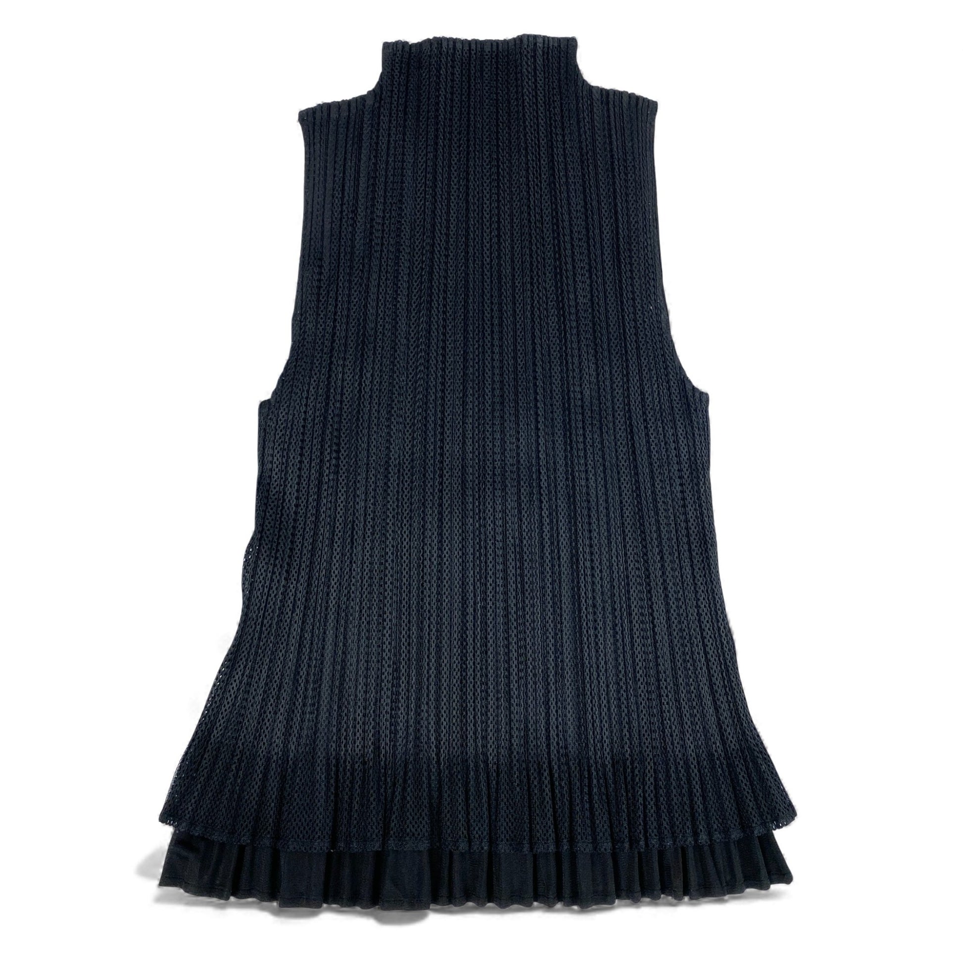 29k6《美品》 PLEATS PLEASE プリーツプリーズ 二重構造 メッシュ ノースリーブトップ PP14-JK672 3 ブラック ISSEY MIYAKE イッセイミヤケ タンクトップt18r