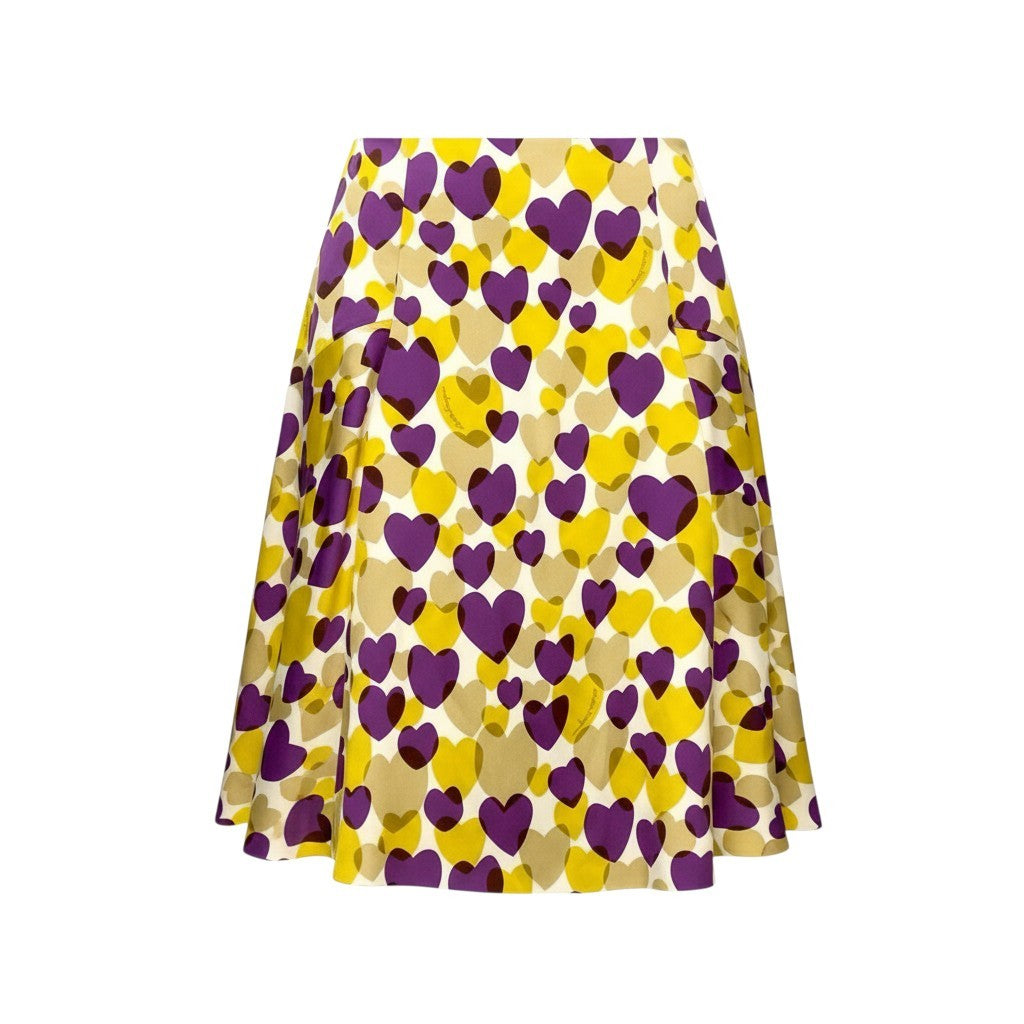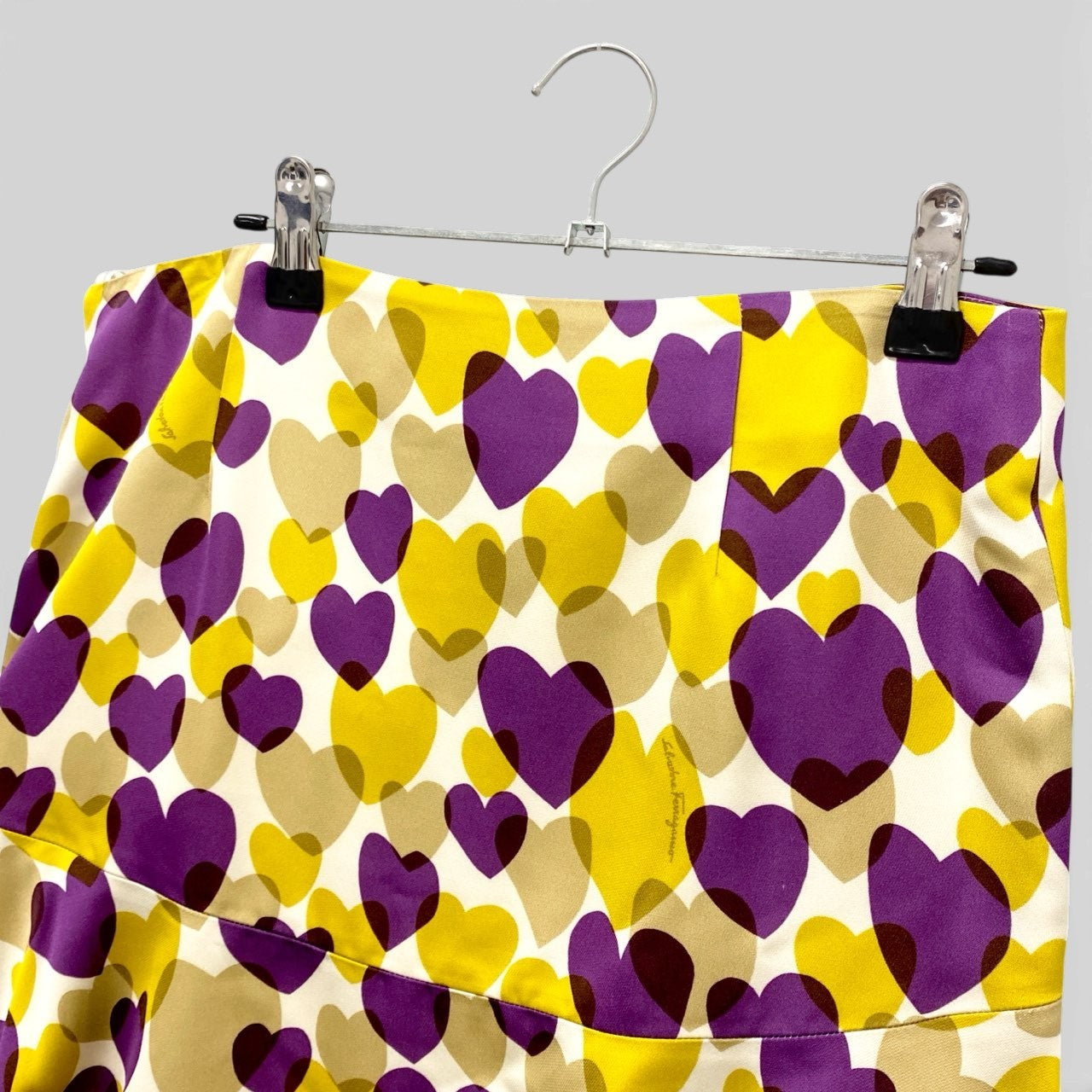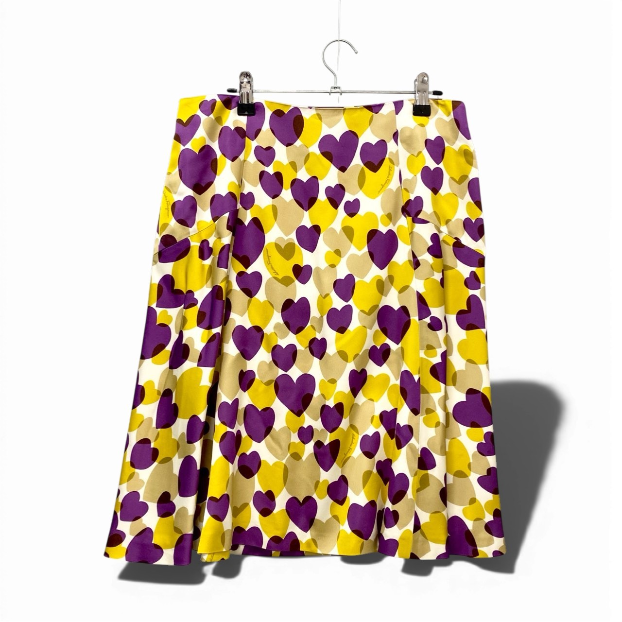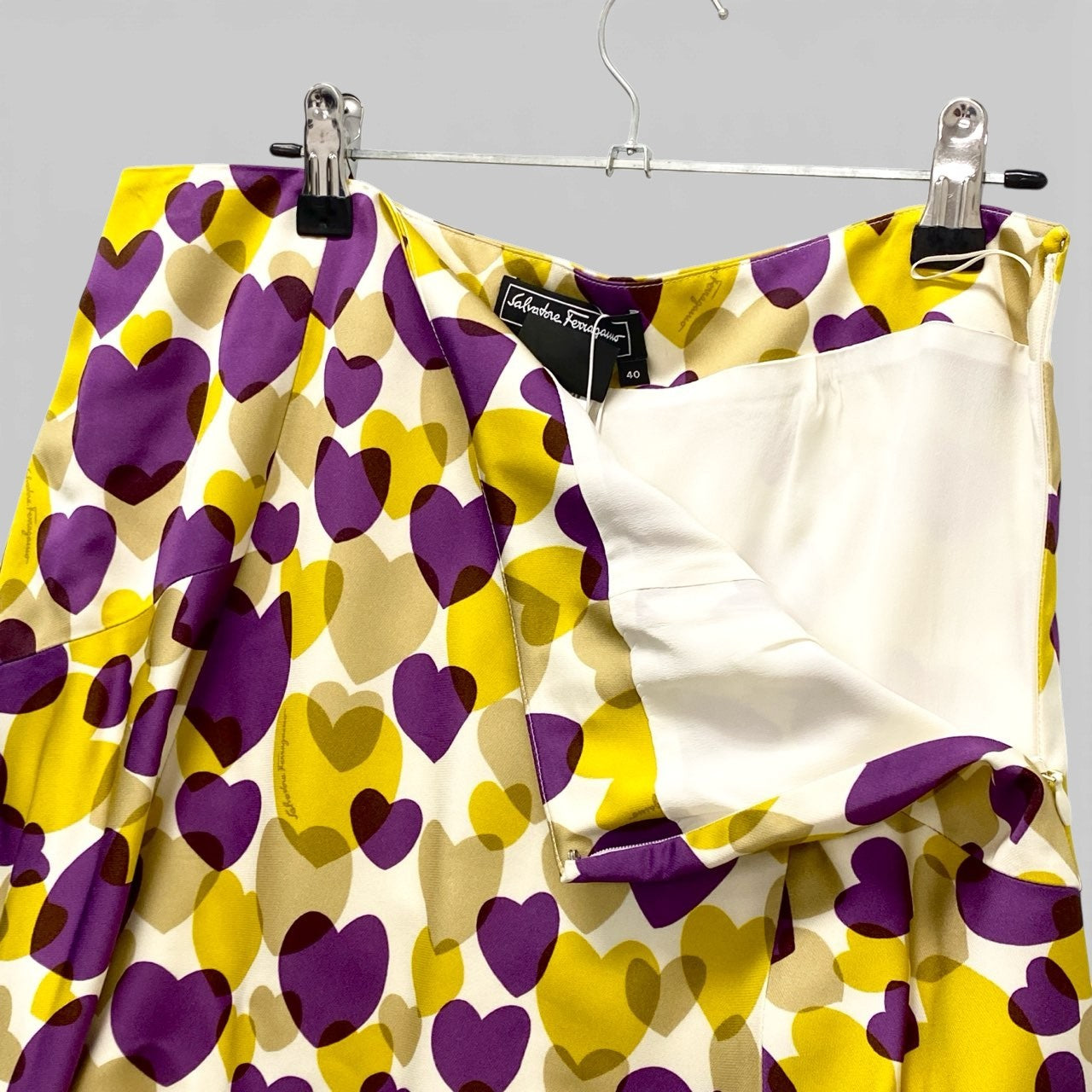 70b16 【未使用タグ付】 Salvatore Ferragamo サルヴァトーレフェラガモ ハート柄 フレアスカート 膝丈スカート 総柄プリント シルク混 レディース 女性用 サイズ40 マルチカラーu02t