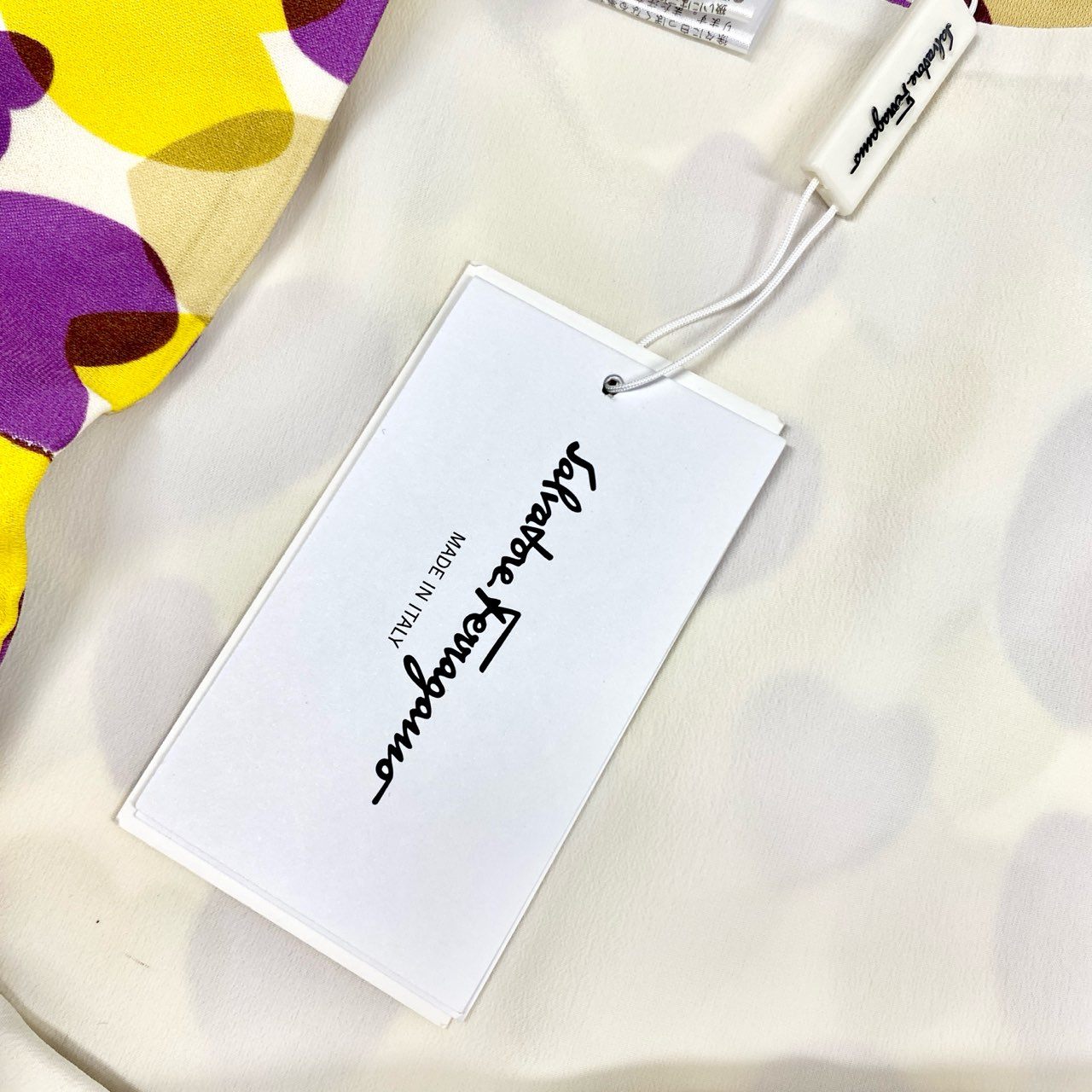 アイボリーベースにパープルとマスタードイエローのハート柄が映える華やかなフレアスカートです。上質なシルク素材ならではのなめらかな光沢感と軽やかなドレープが上品な印象を演出します。ウエスト周りはすっきり、裾にかけて広がるシルエットで女性らしいラインを美しく表現。シンプルなニットやブラウスと合わせるだけでコーディネートの主役になる、サルヴァトーレフェラガモらしいエレガントな一着です。