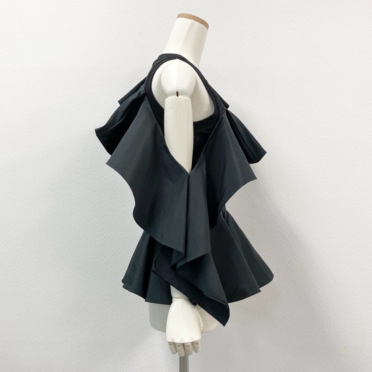 Ah29 Alexander McQUEEN アレキサンダーマックイーン 変形トップス フリルトップス ペプラム ラッフル装飾 ラウンドネック Fサイズ ブラック レディース 女性用k02i