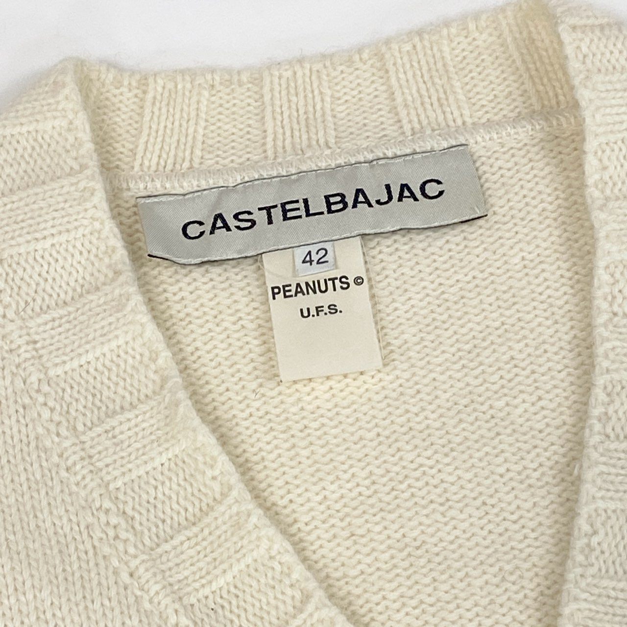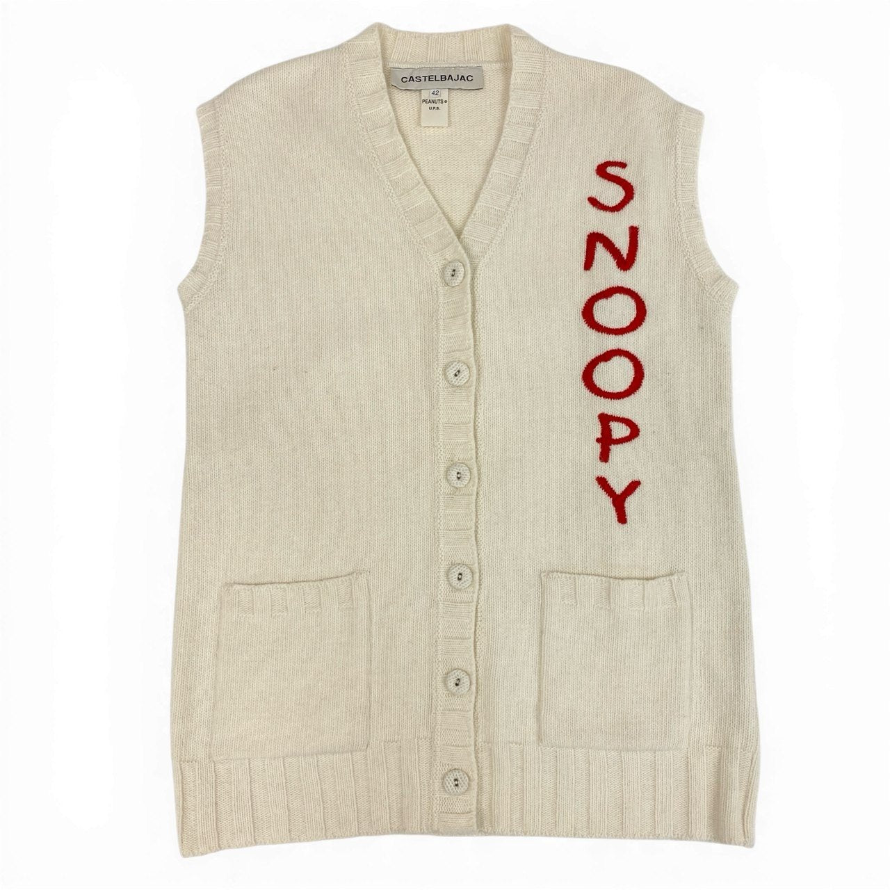 27a23 CASTELBAJAC カステルバジャック × PEANUTS Snoopy スヌーピー ニットベスト サイズ42 アイボリー Vintage ヴィンテージt18r
