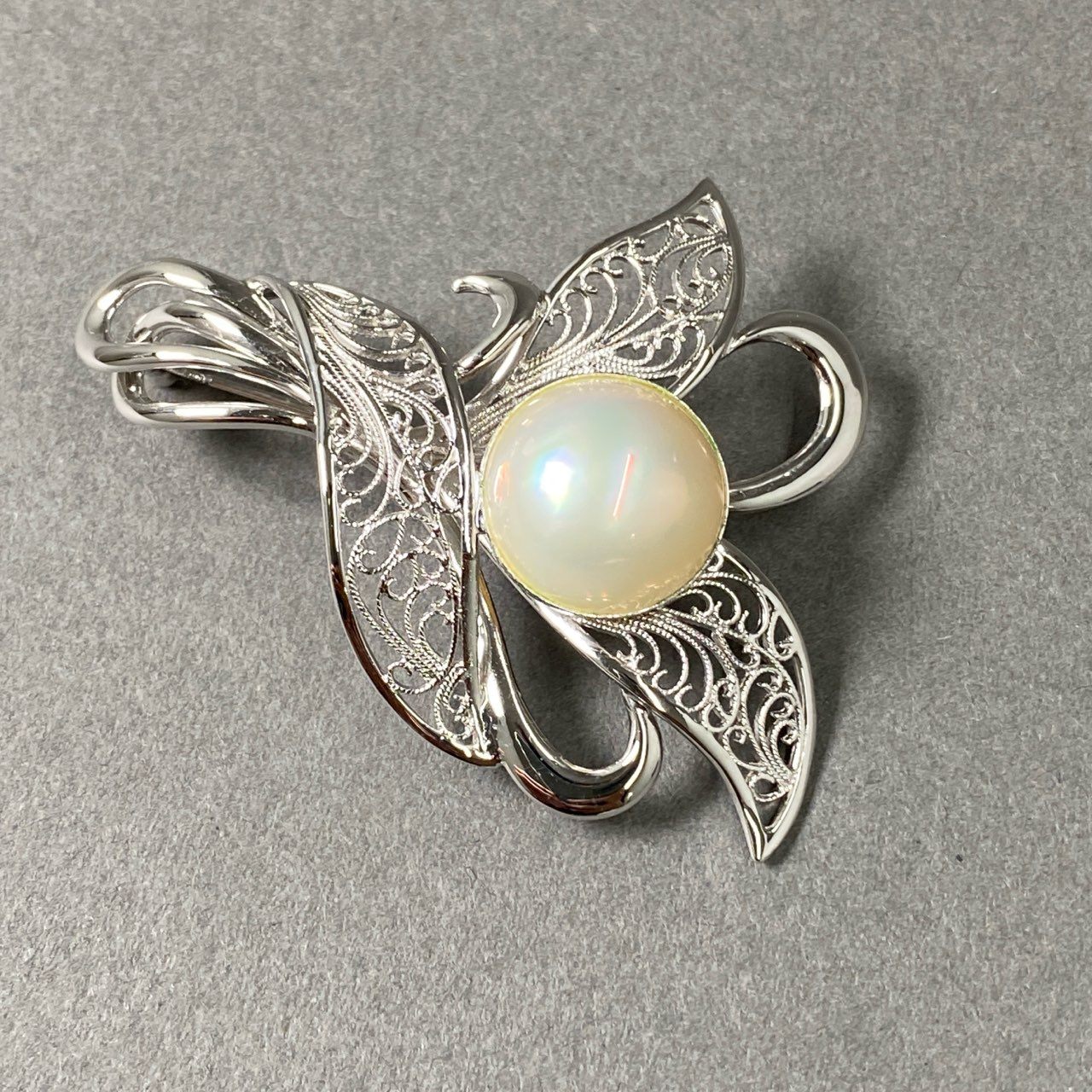 Pf16 《美品》 田崎真珠 タサキ マベパール ブローチ シルバー 真珠 パール アクセサリー 装飾 ピンブローチ シルバー ホワイト SILVER